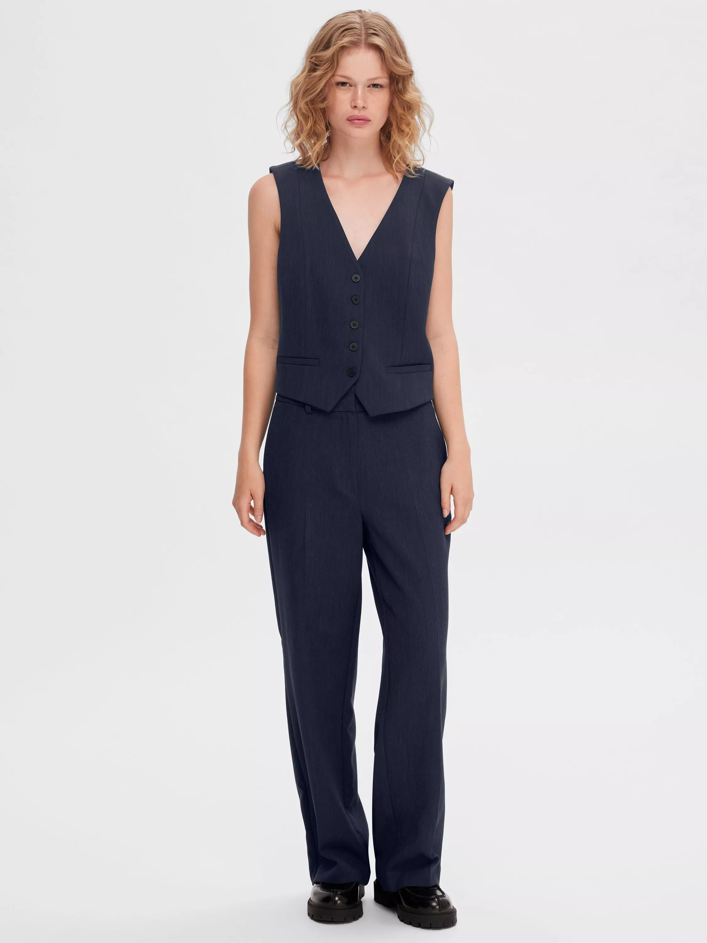 SelectedRita Mid Waist Wide Leg Trousers, Navy