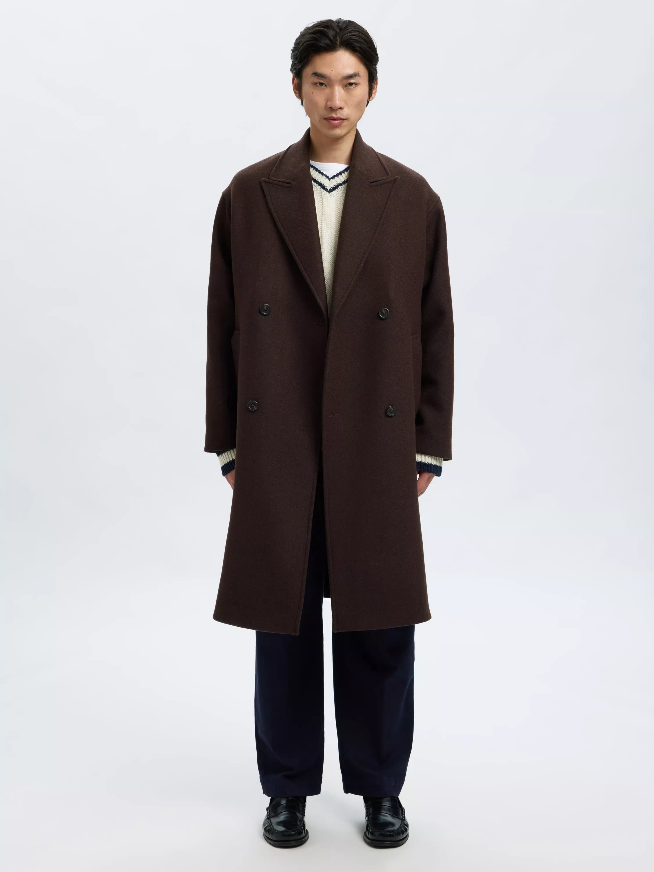This overcoat keeps you comfortable and sharp, blending classic design with practical details. Long sleeves and a regular cut create a refined silhouette, while thoughtful button fastening makes it simple for you to layer up for any daytime outing.