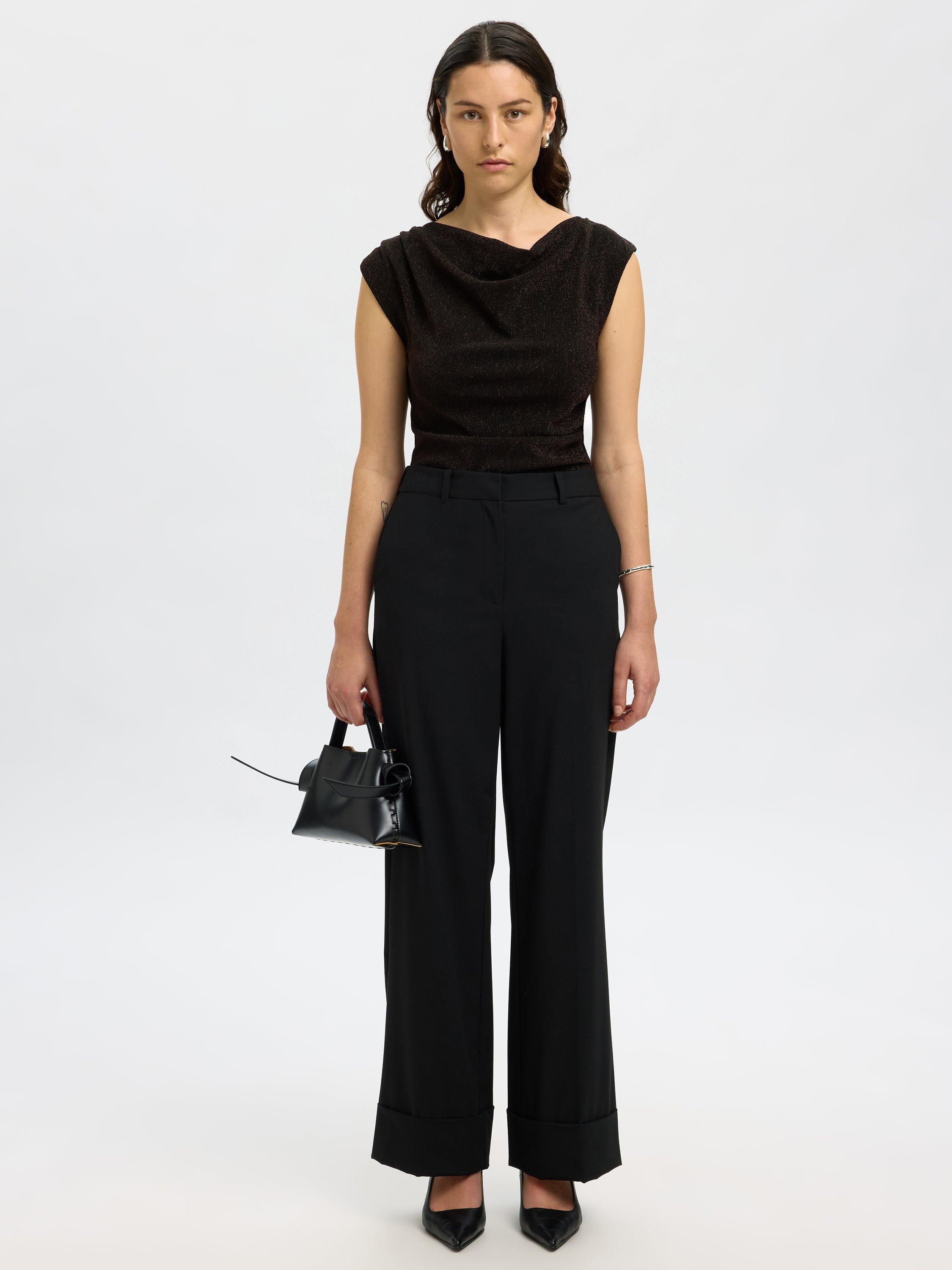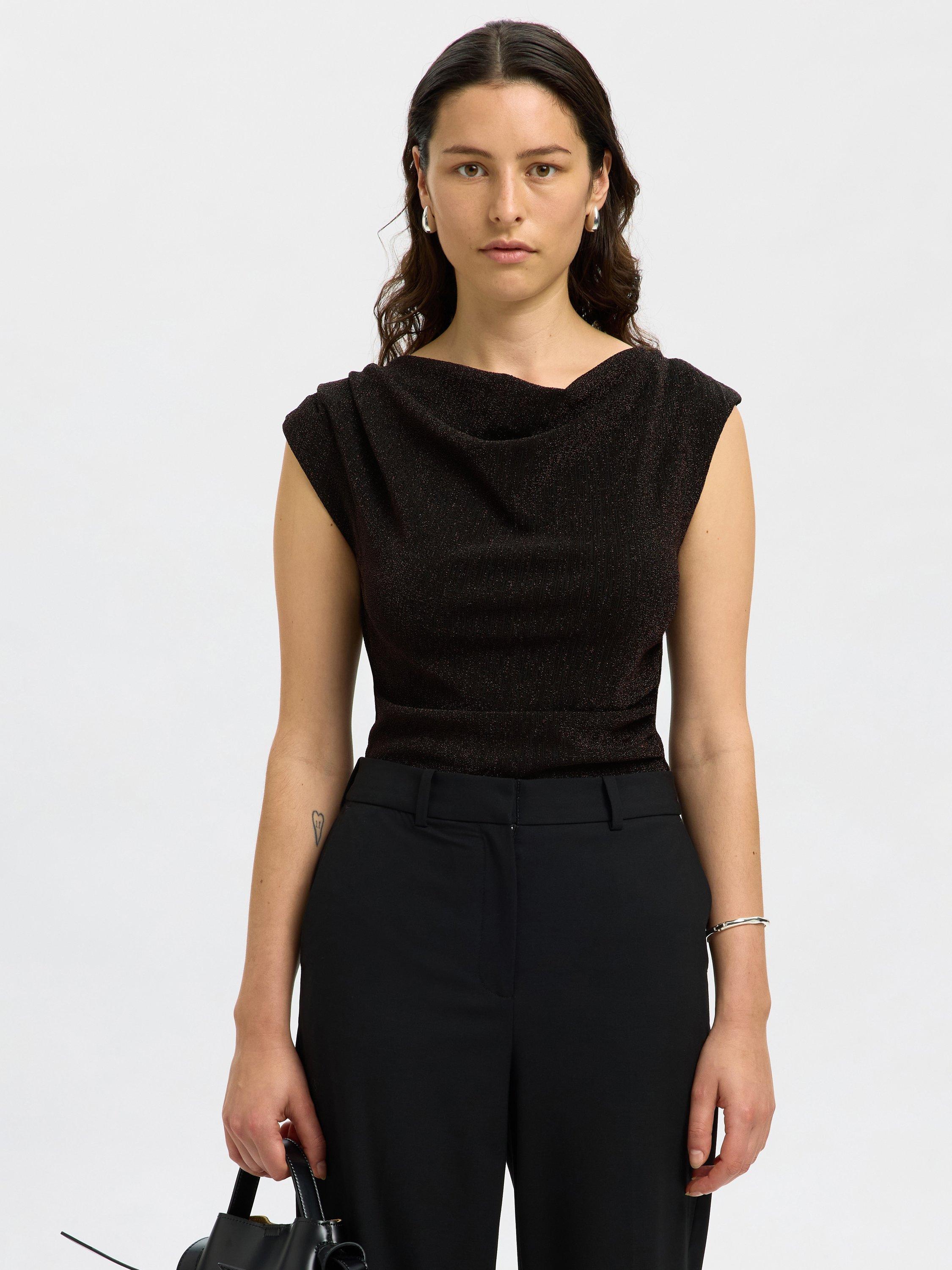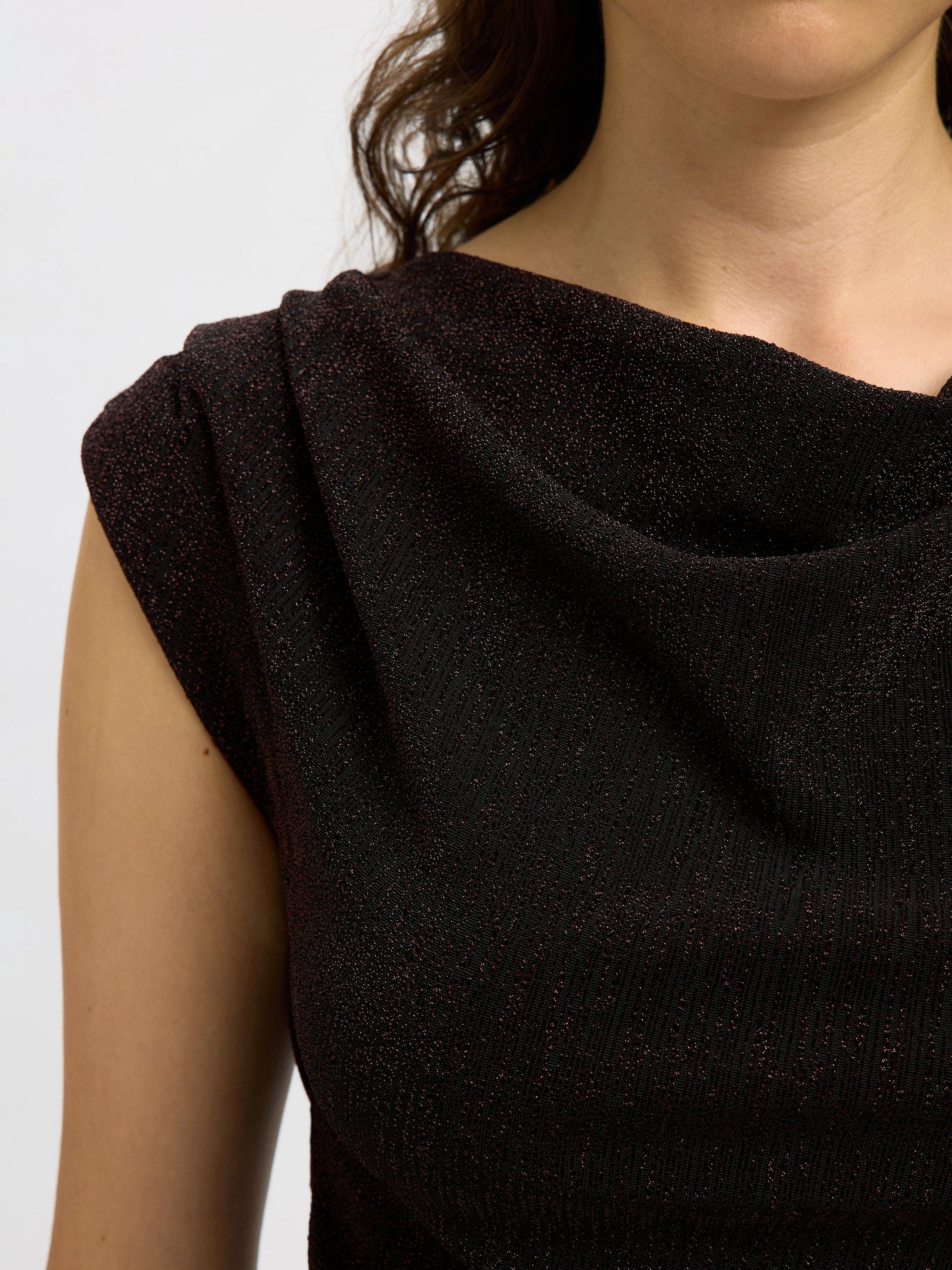 The cowl neck and glittery finish of this top add flair, while the slim cut ensures a flattering fit for your everyday or standout moments. Perfect for tucking into trousers, or worn with jeans.