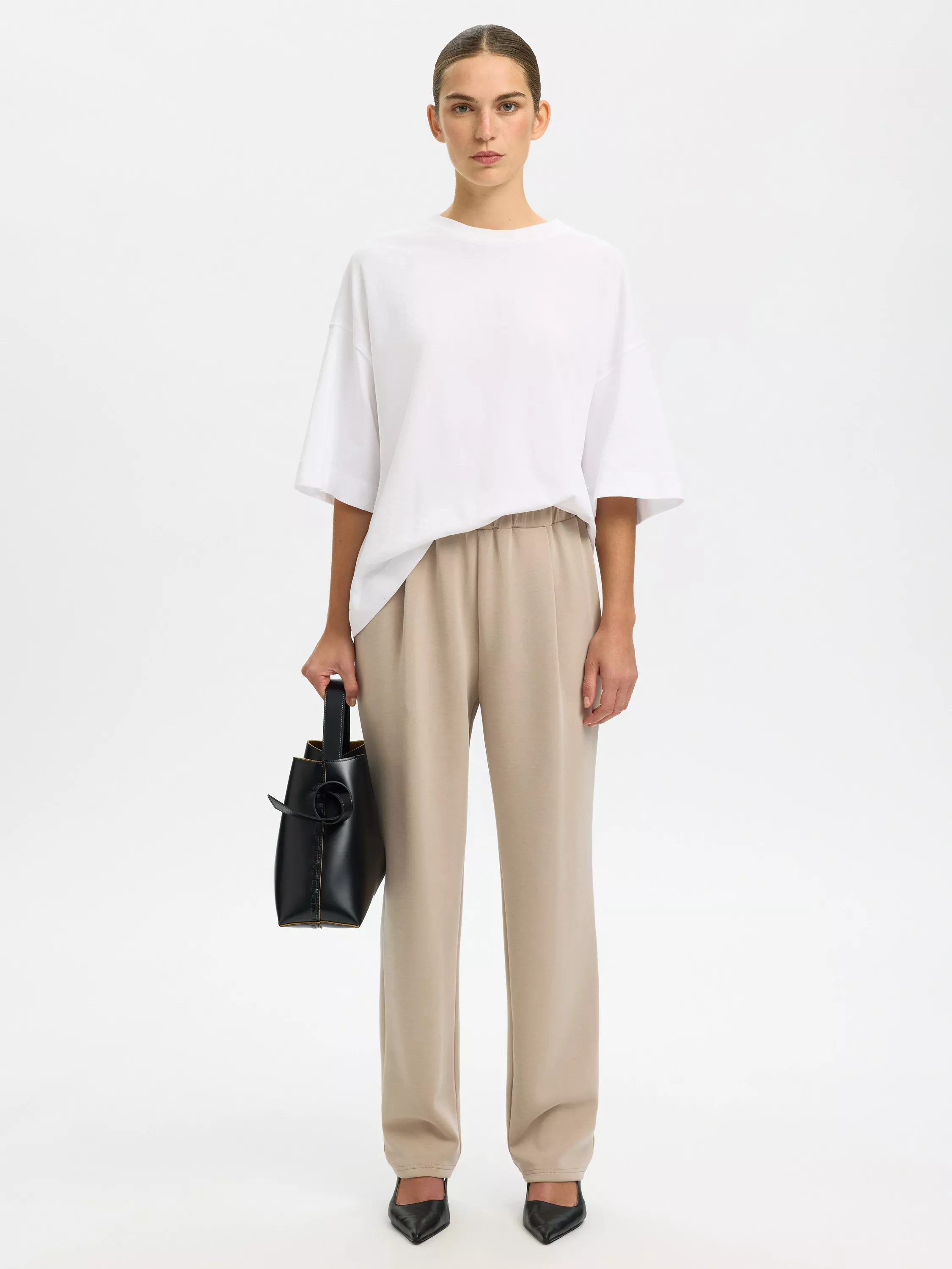 Modern tailoring meets classic form in these trousers by Selected. They are designed to sit high on the hips with a longer length hem to elongate your profile.