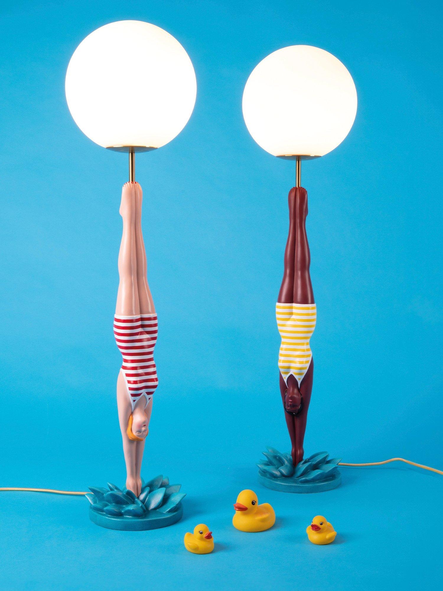 Inspired by the famous tattoo of a 1940s diver, the statement lamp designed by Simone Falcetti seamlessly blends nostalgia with contemporary design.