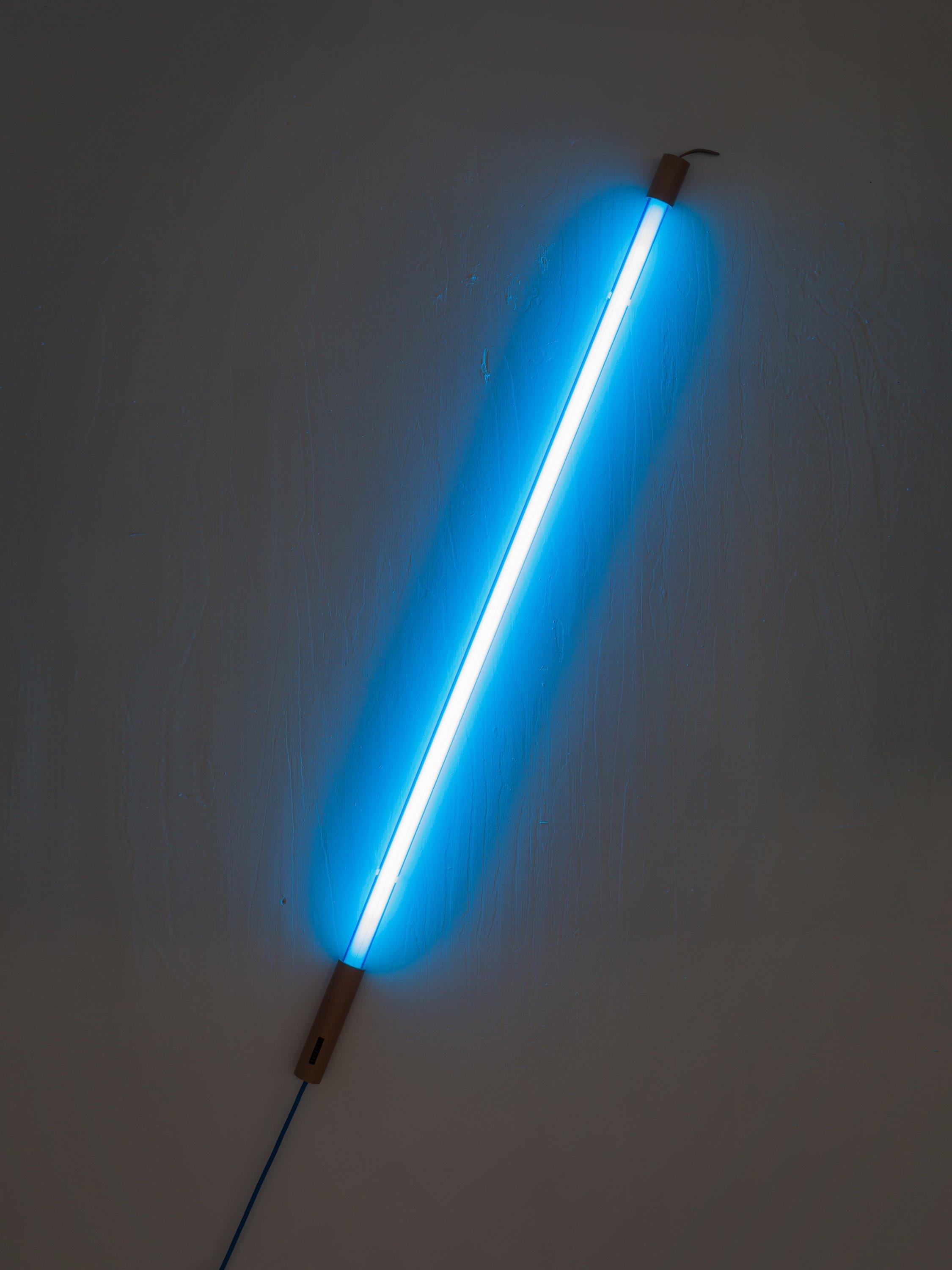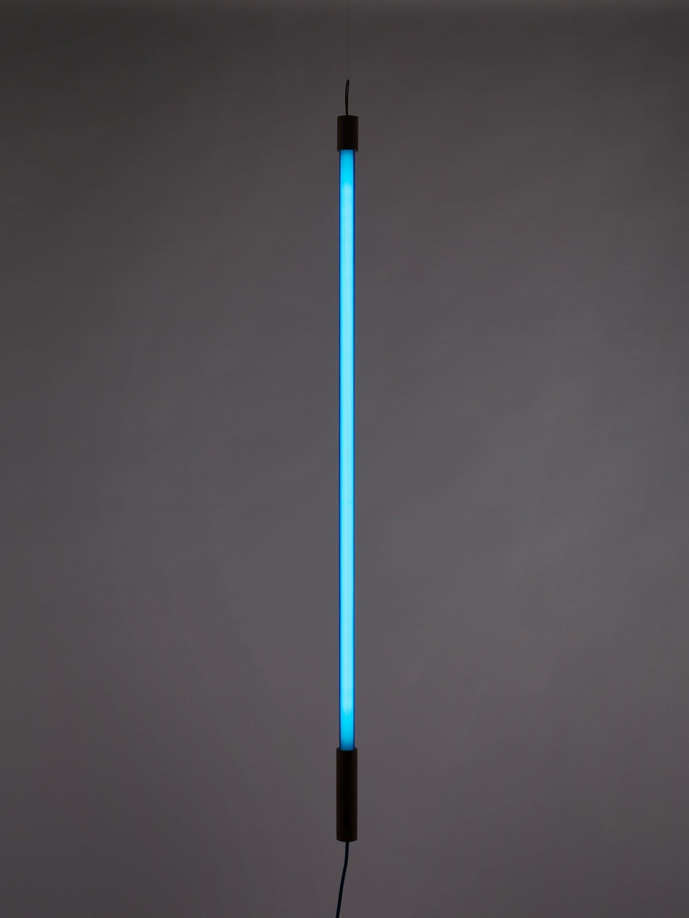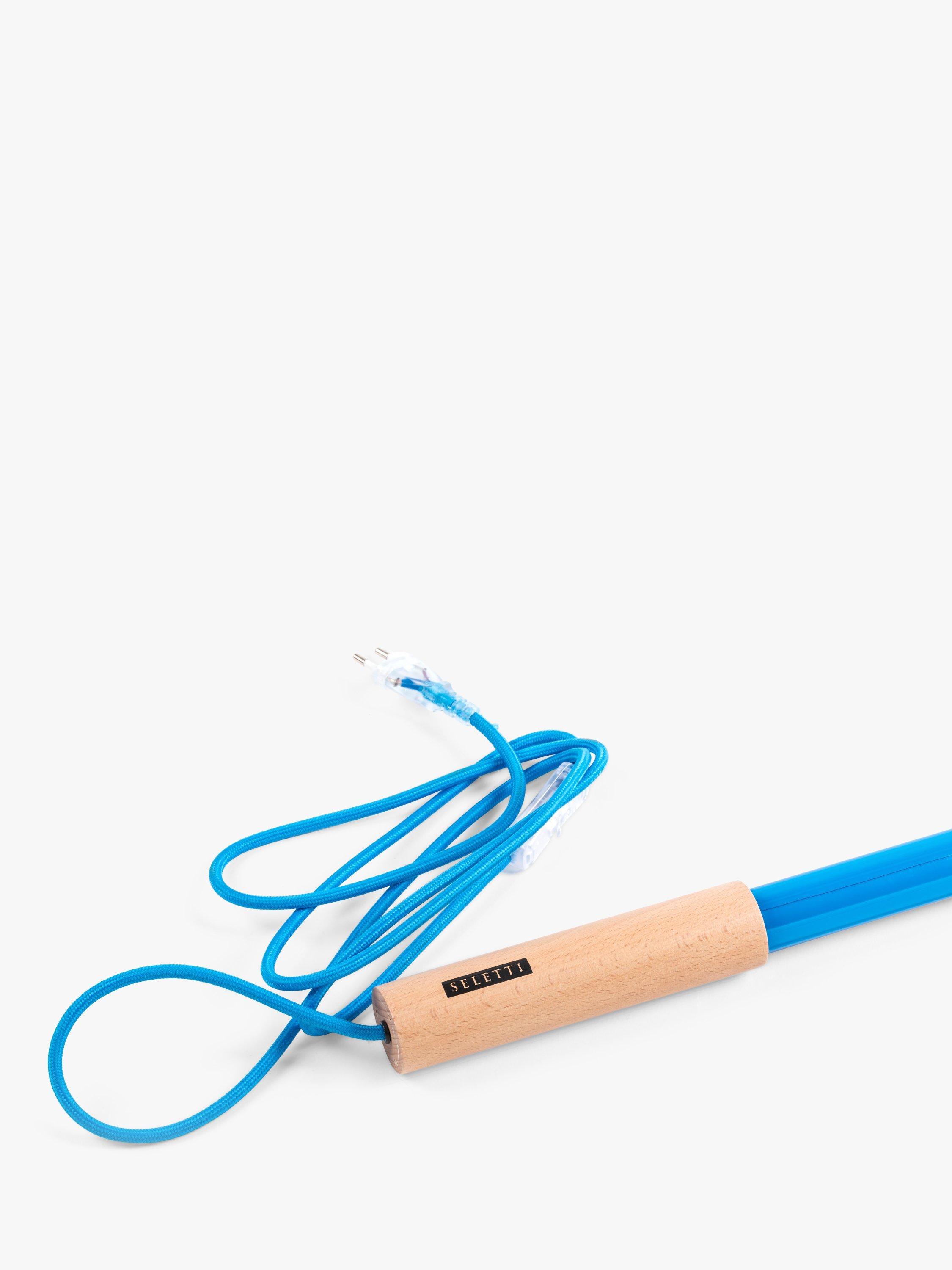 This LED tube light comes with a wooden top and bottom. There's a leather loop to hang the light from and extra plastic wire is provided, so the light can be suspended. Two clear plastic brackets are included, so the light can be attached to the wall. The three meter woven flex is the same colour as the LED tube, designed with a rocker switch.