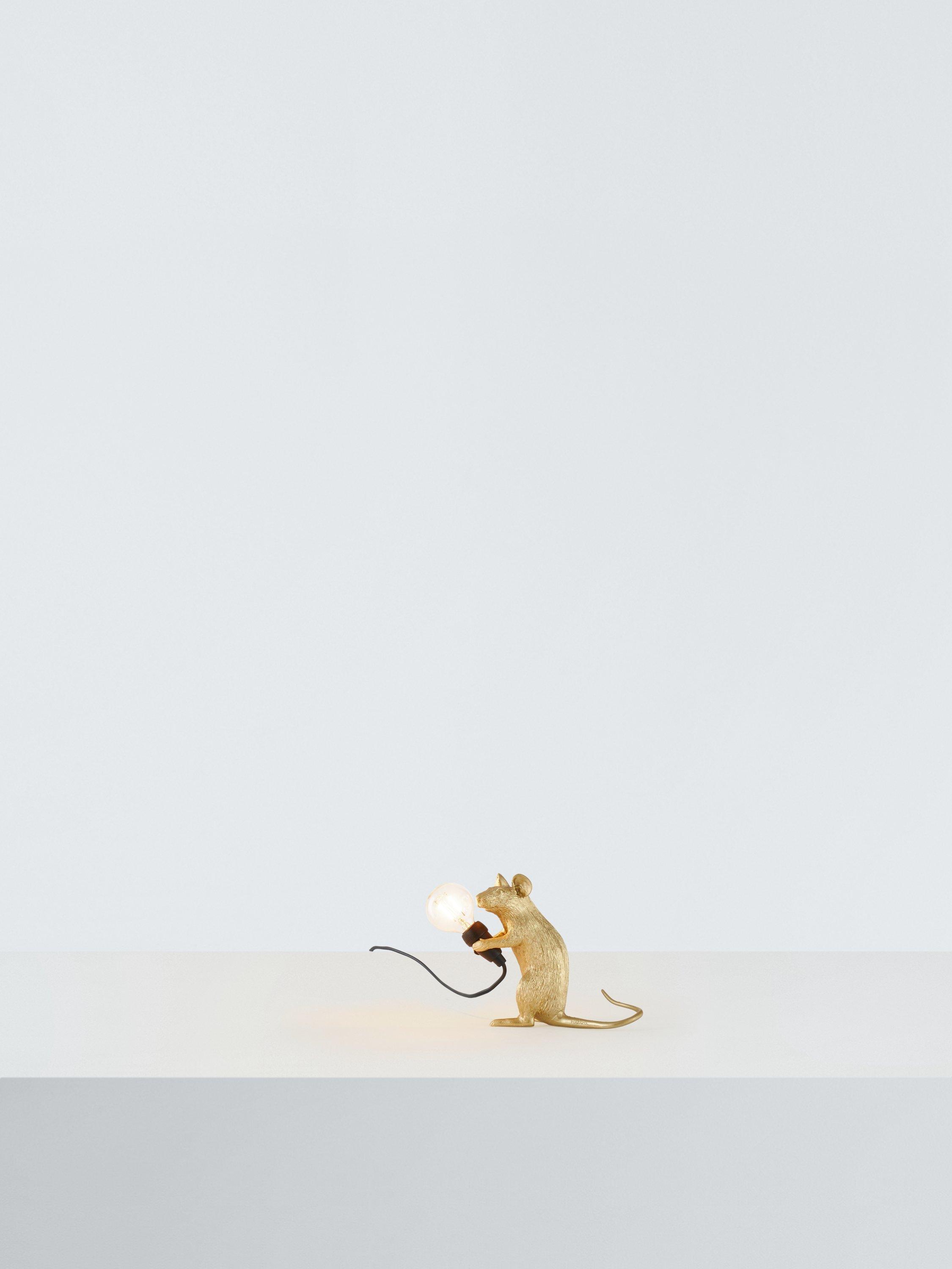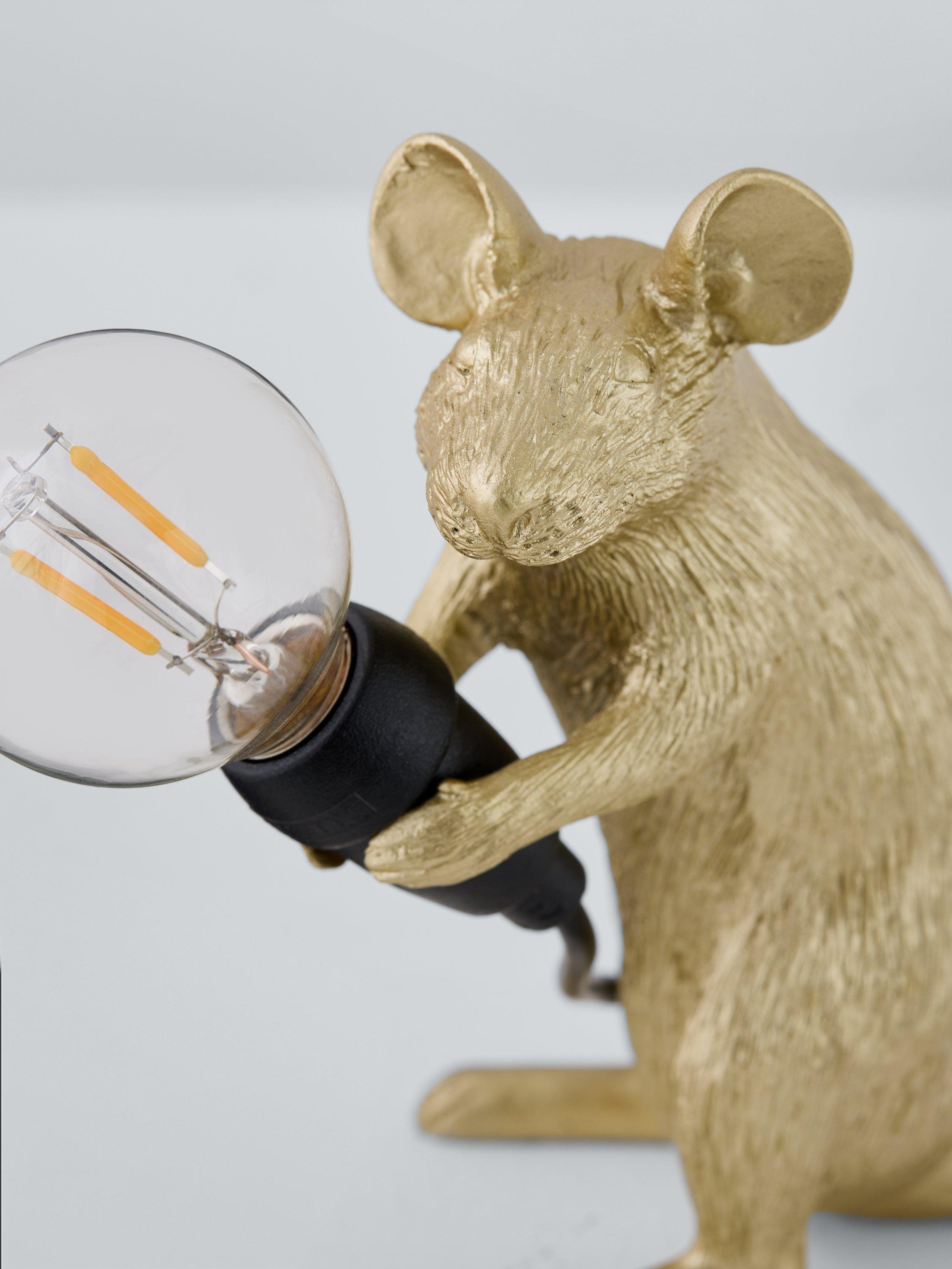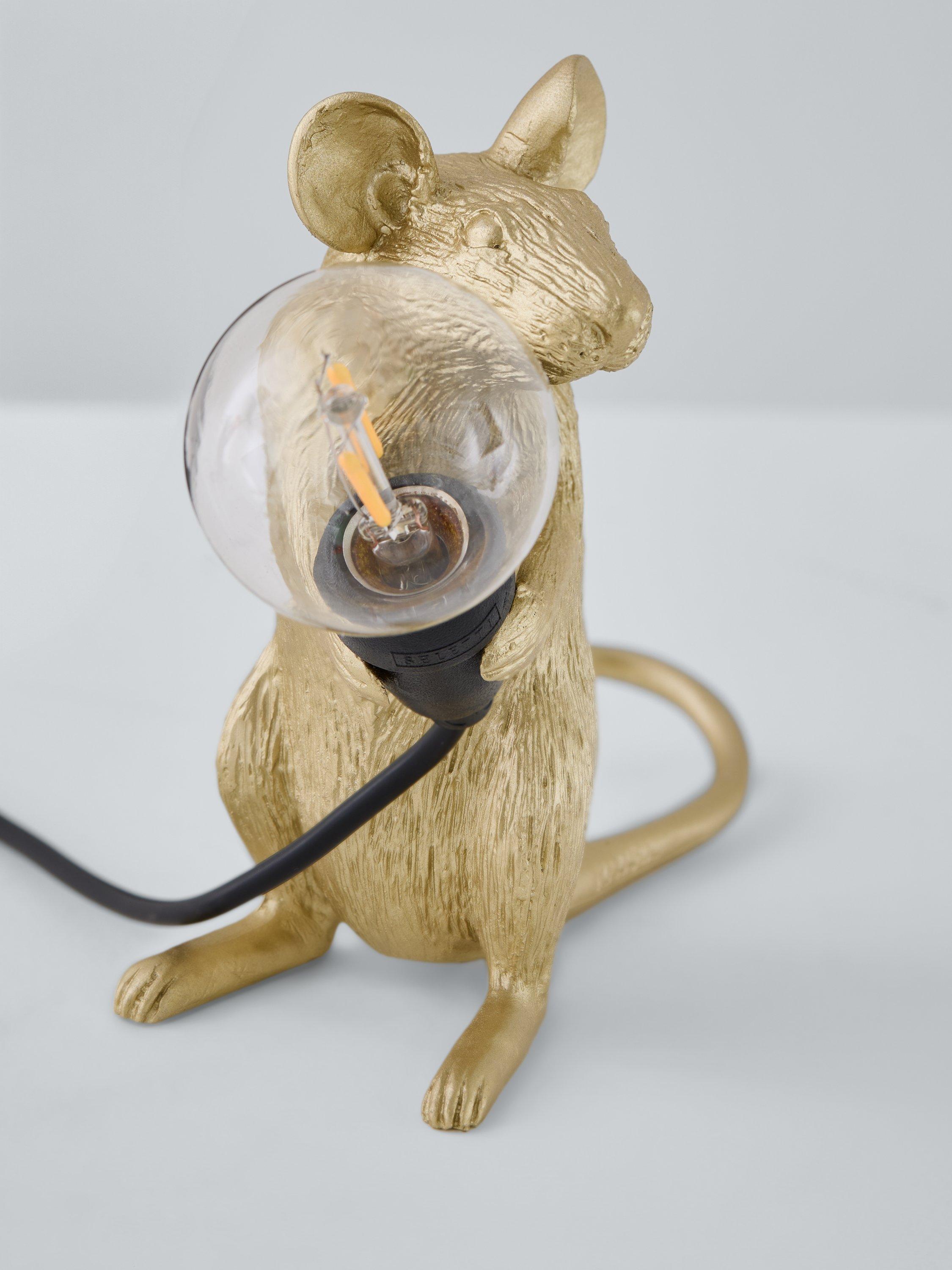 Cute and curious, this Sitting Mouse table lamp showcases Marcantonio's signature design for Seletti. A quirky addition to your home decor, it's made from resin and painted in a gloss finish that makes it really eye-catching on your shelf or table. Supplied with a replaceable LED cool to touch lamp, it's ideal for giving your space a subtle accent of light. For indoor use only.