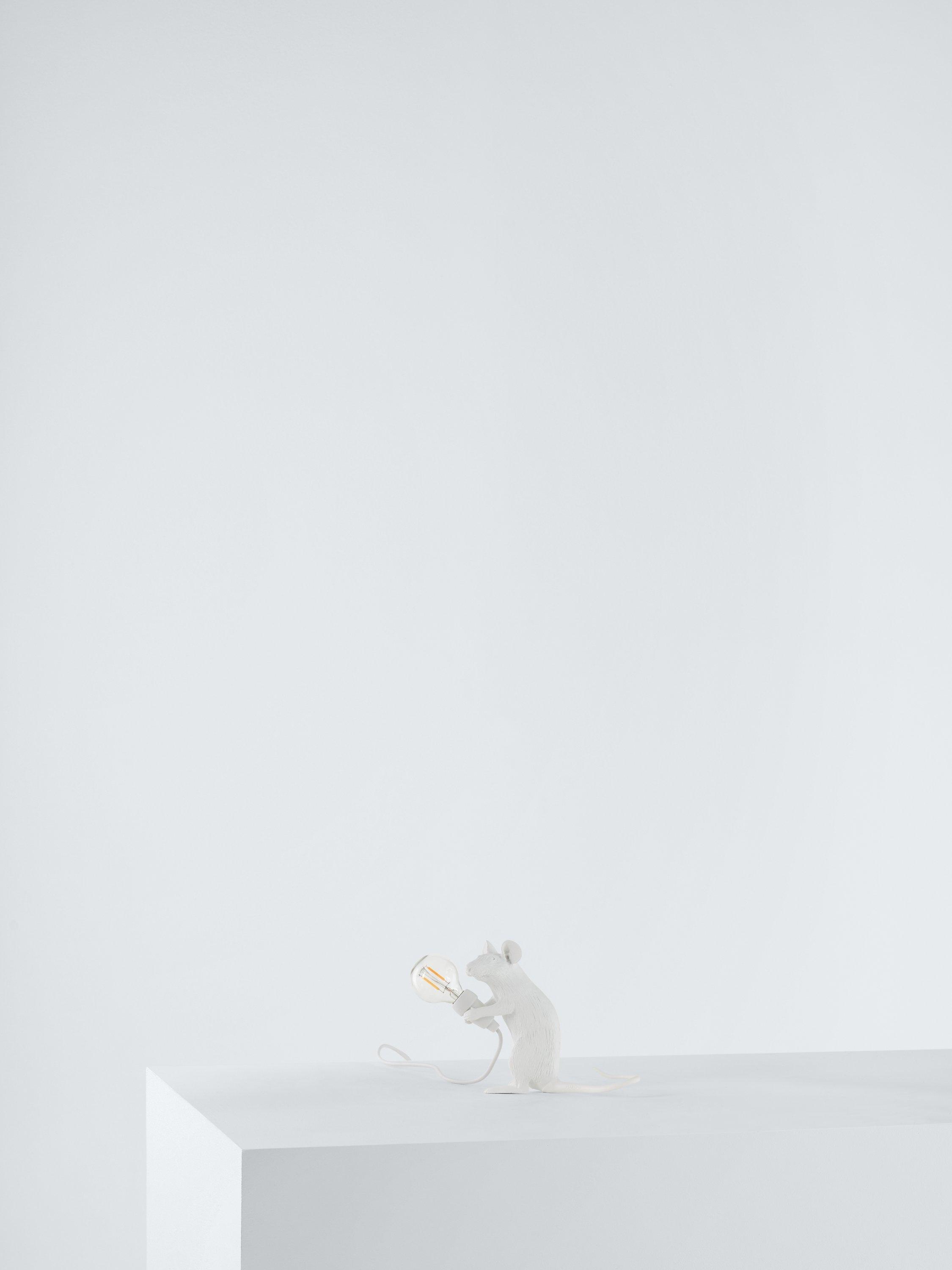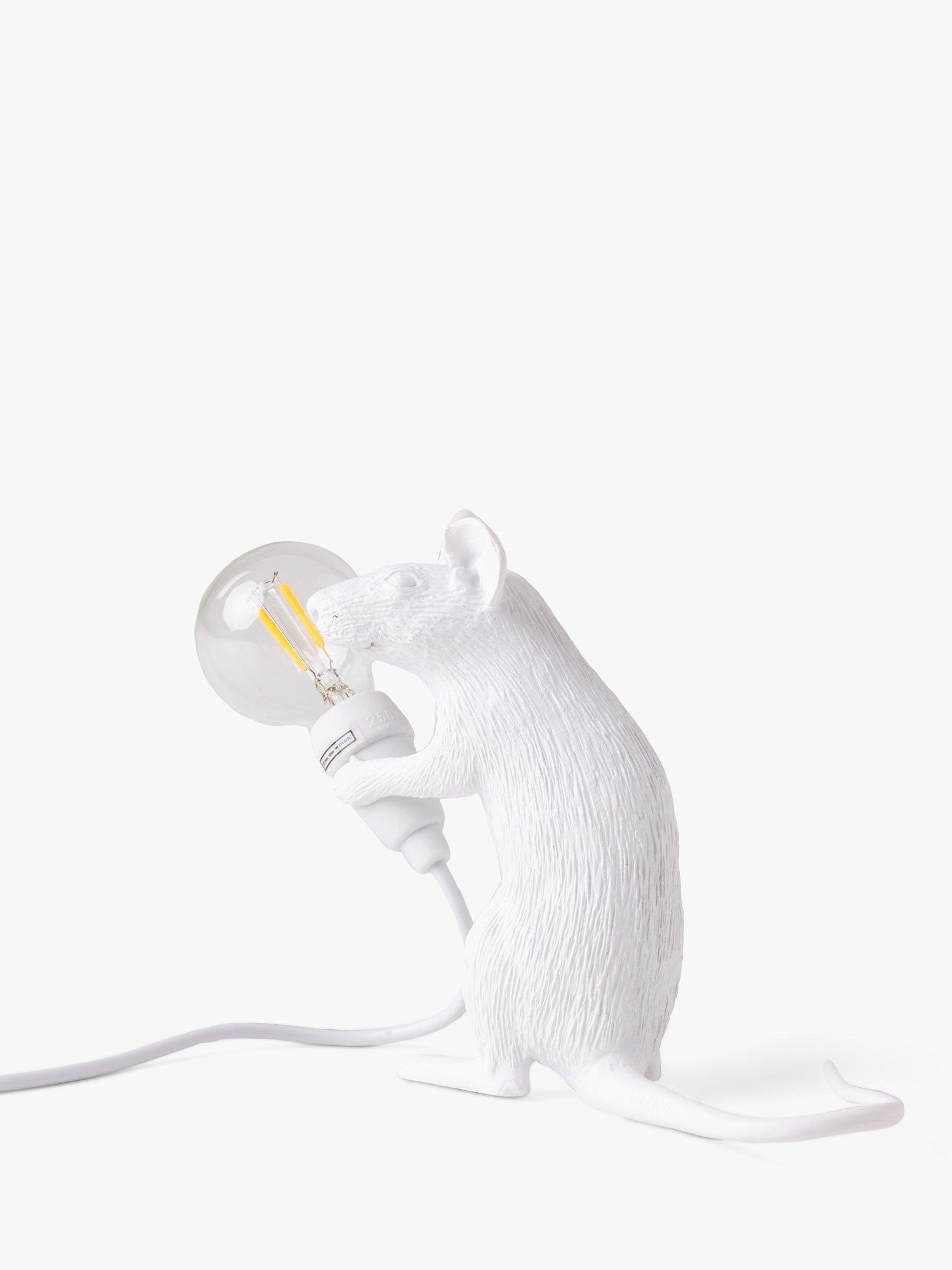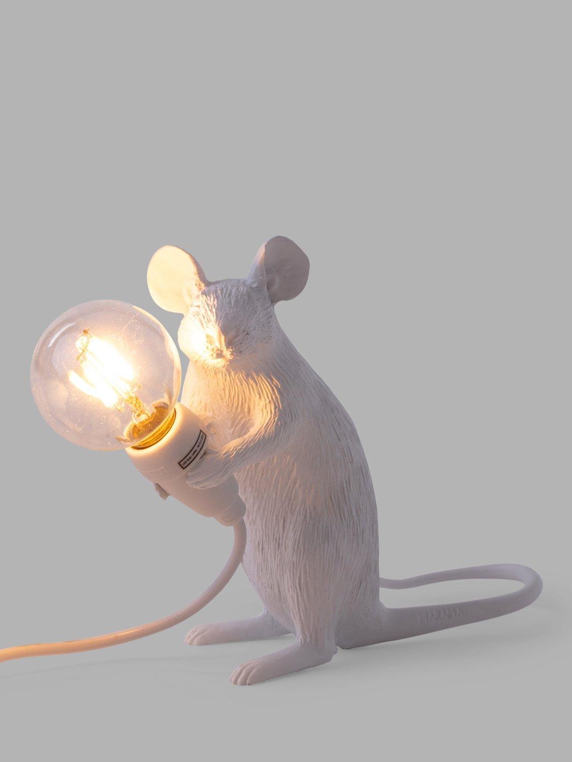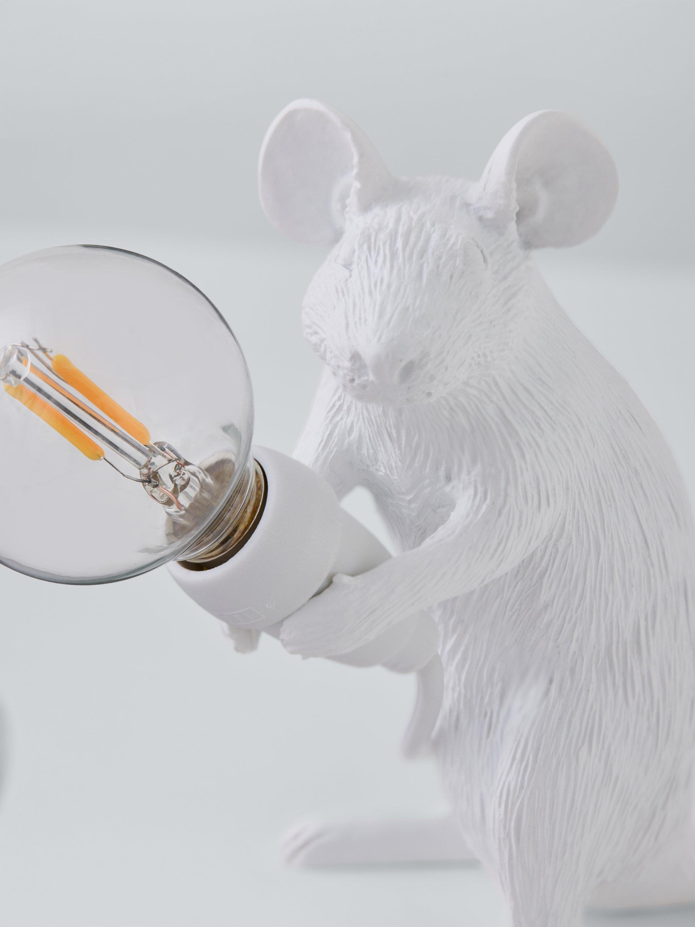 Cute and curious, this Sitting Mouse table lamp showcases Marcantonio's signature design for Seletti. A quirky addition to your home decor, it's made from resin and painted in a gloss finish that makes it really eye-catching on your shelf or table. Supplied with a replaceable LED cool to touch lamp, it's ideal for giving your space a subtle accent of light. For indoor use only.