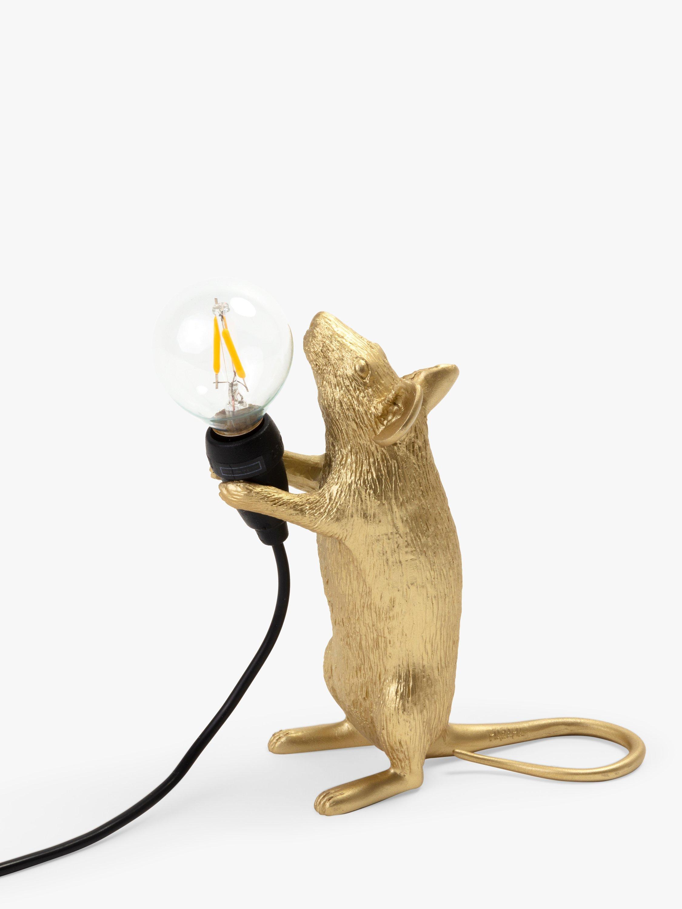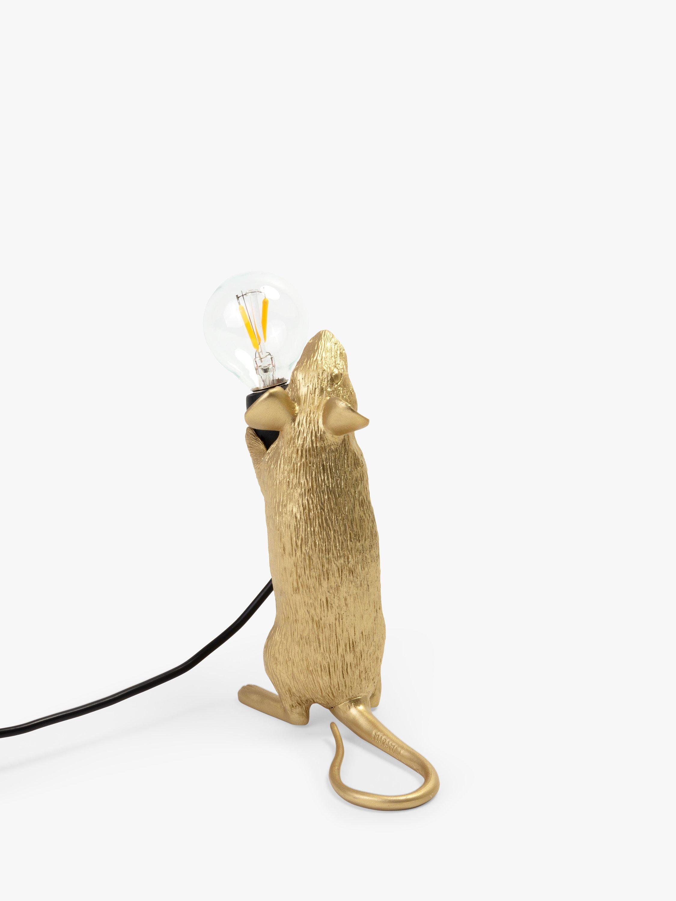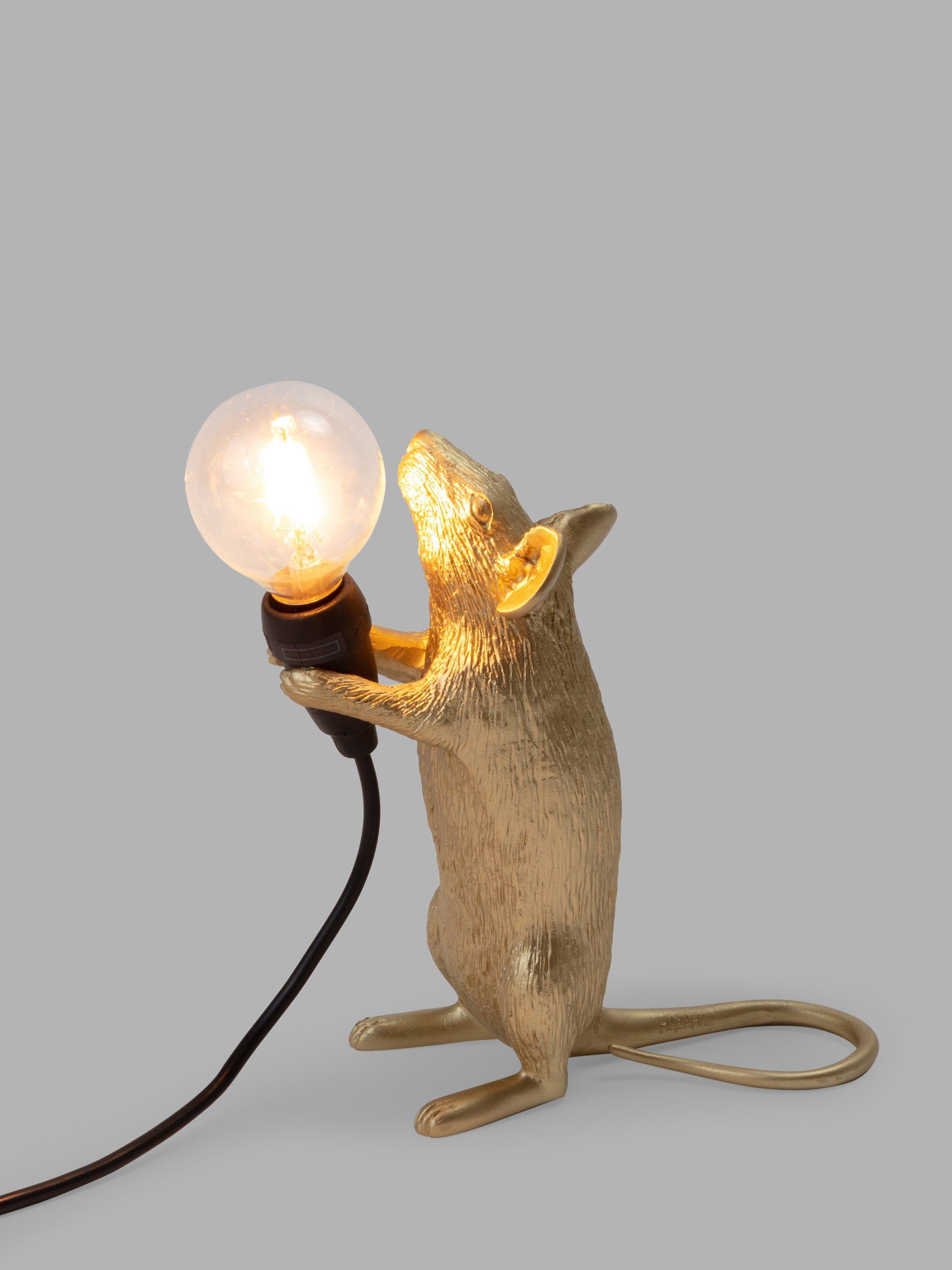 This cute Standing Mouse Table Lamp designed by Marcantonio for Seletti will lend a quirky, novelty feel to your living room space. Petite, and ideal for placing in small areas or shelves, its intricate design demonstrates Seletti's signature style, with a small bulb that creates a soft lighting solution. It's made from resin and painted in a gloss finish. This lamp is supplied with safe, cold-to-touch LED bulbs. For indoor use only.