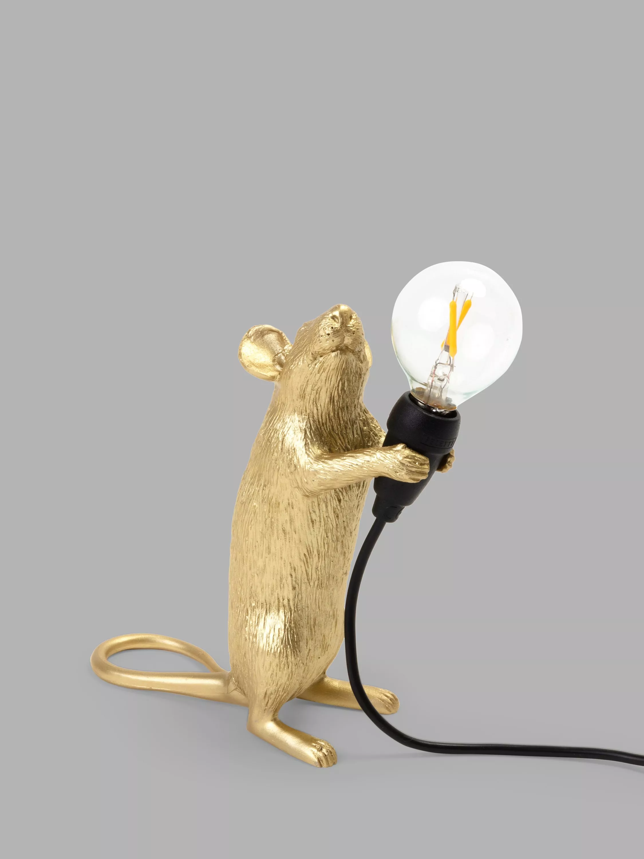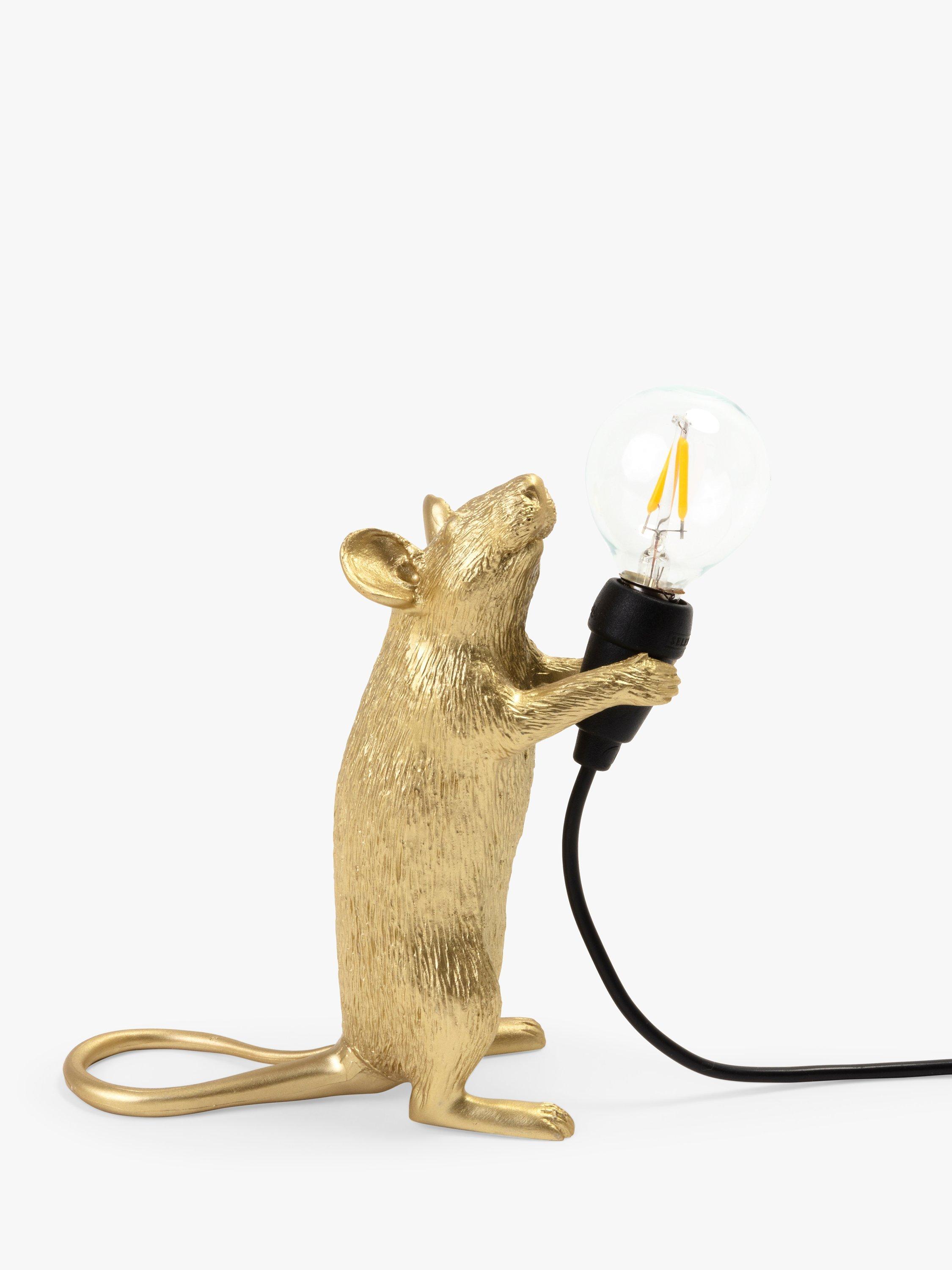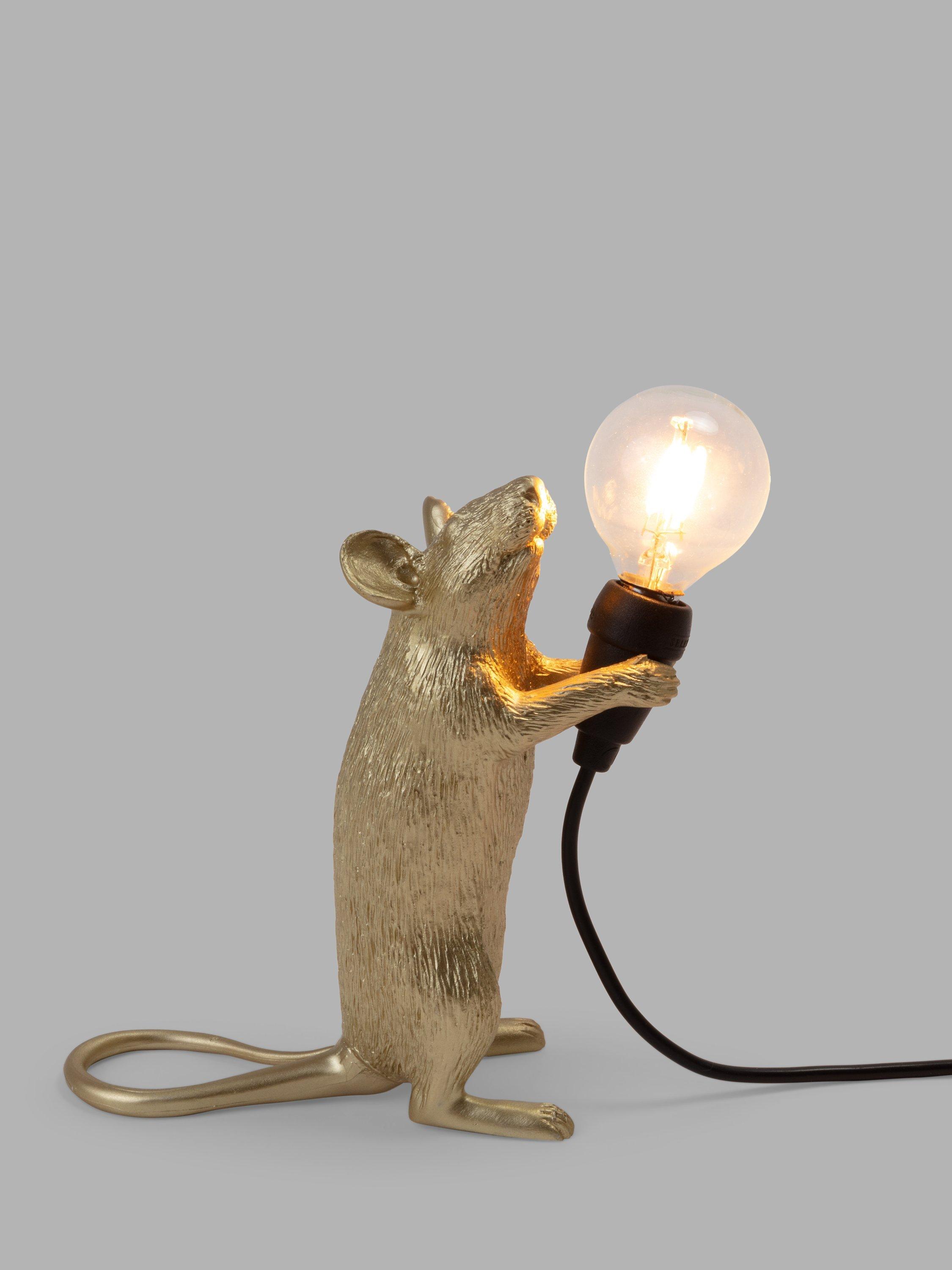 This cute Standing Mouse Table Lamp designed by Marcantonio for Seletti will lend a quirky, novelty feel to your living room space. Petite, and ideal for placing in small areas or shelves, its intricate design demonstrates Seletti's signature style, with a small bulb that creates a soft lighting solution. It's made from resin and painted in a gloss finish. This lamp is supplied with safe, cold-to-touch LED bulbs. For indoor use only.