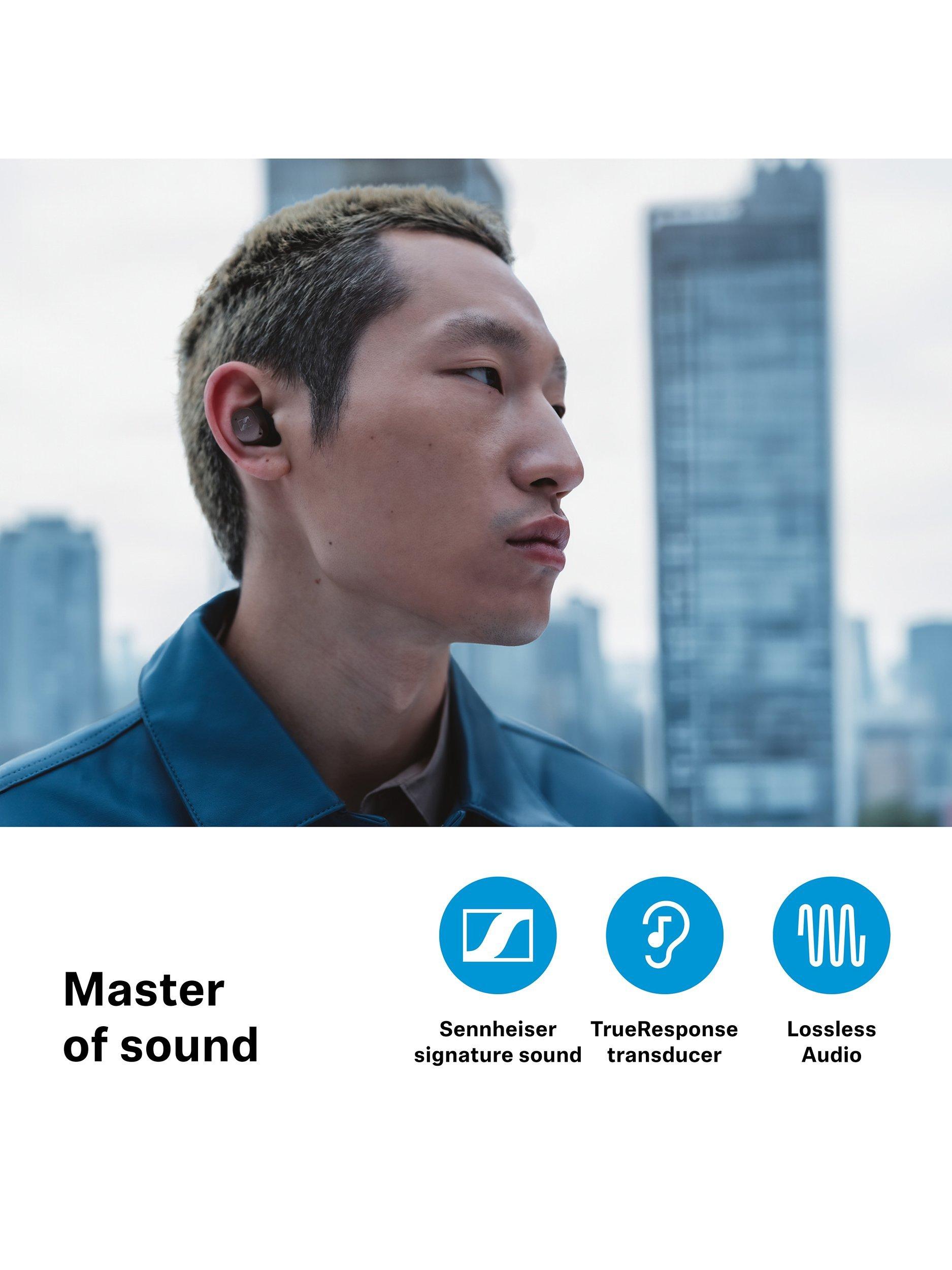 Step into the future of listening with MOMENTUM True Wireless 4 by Sennheiser. Discover personalised, crystal-clear sound through the TrueResponse system. Enjoy lossless audio, Sound Personalization, Bluetooth 5.4, and Auracast support. The ergonomic design offers all-day comfort. Benefit from adaptive ANC, Transparency Mode, and a 6-mic system for calls. Revel in 30 hours of listening and timeless Sennheiser quality in stylish finishes.