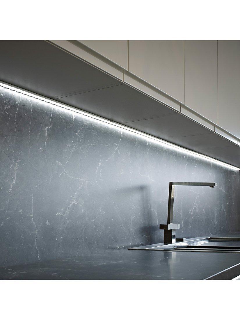 The Fino surface-mounted aluminium profile has been specially redesigned with an increased width and depth to house all the flexible strip lights from the Sensio range. For use in the kitchen, bathroom or inside bedroom cupboards.
