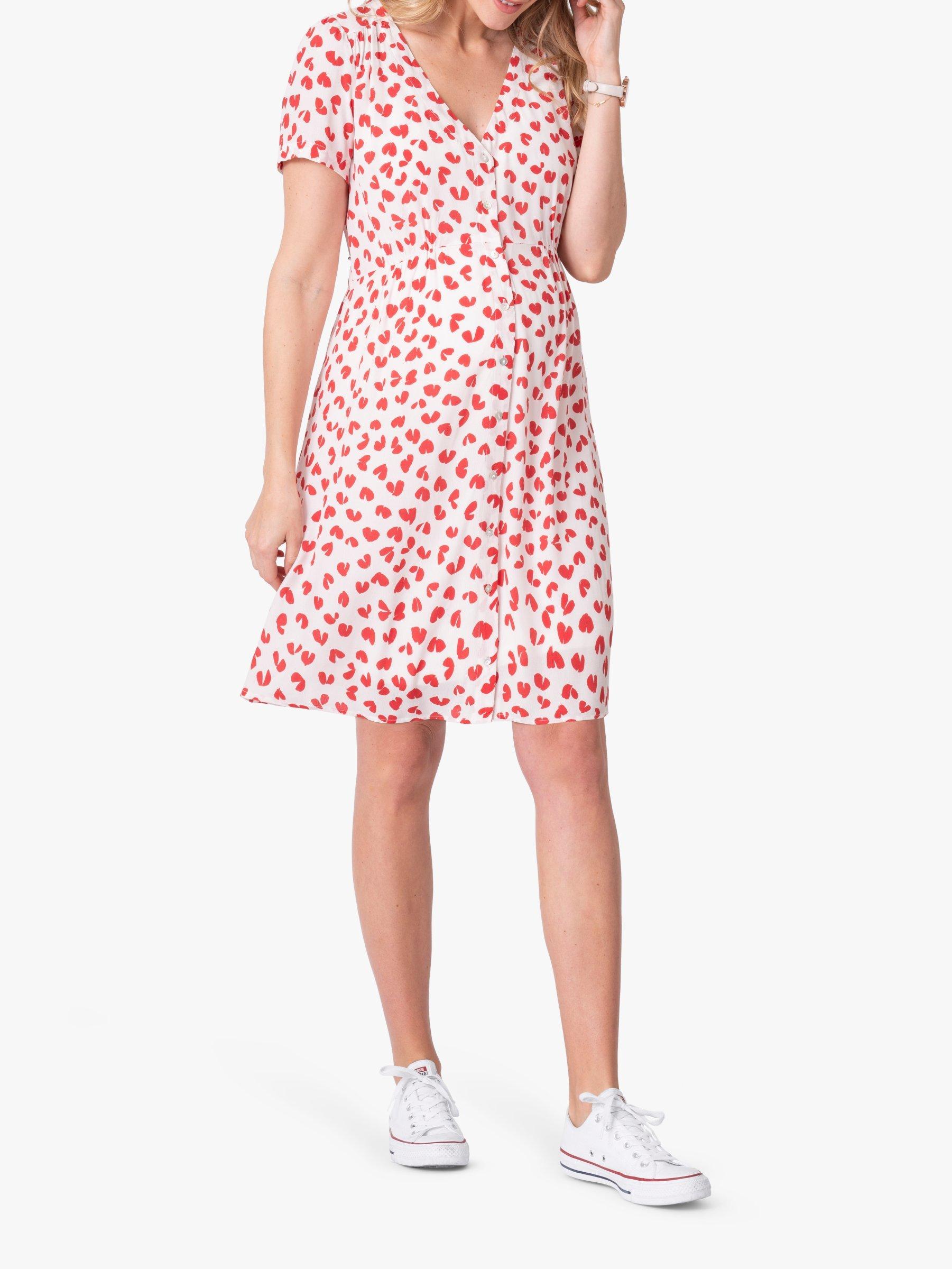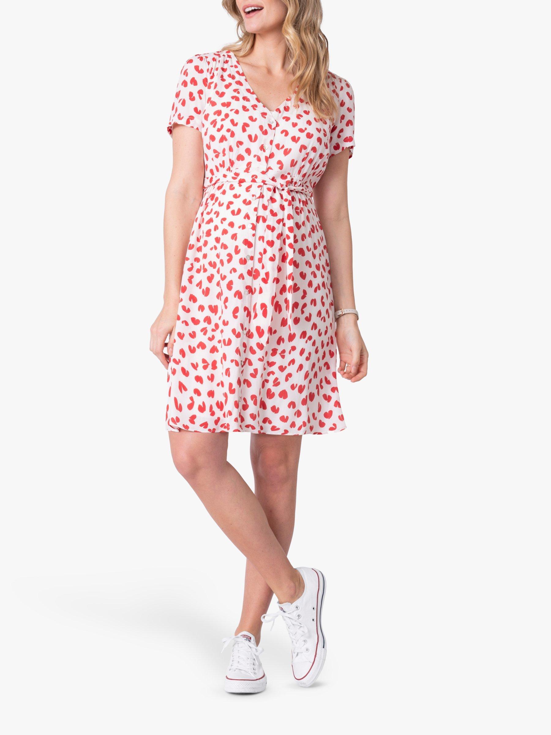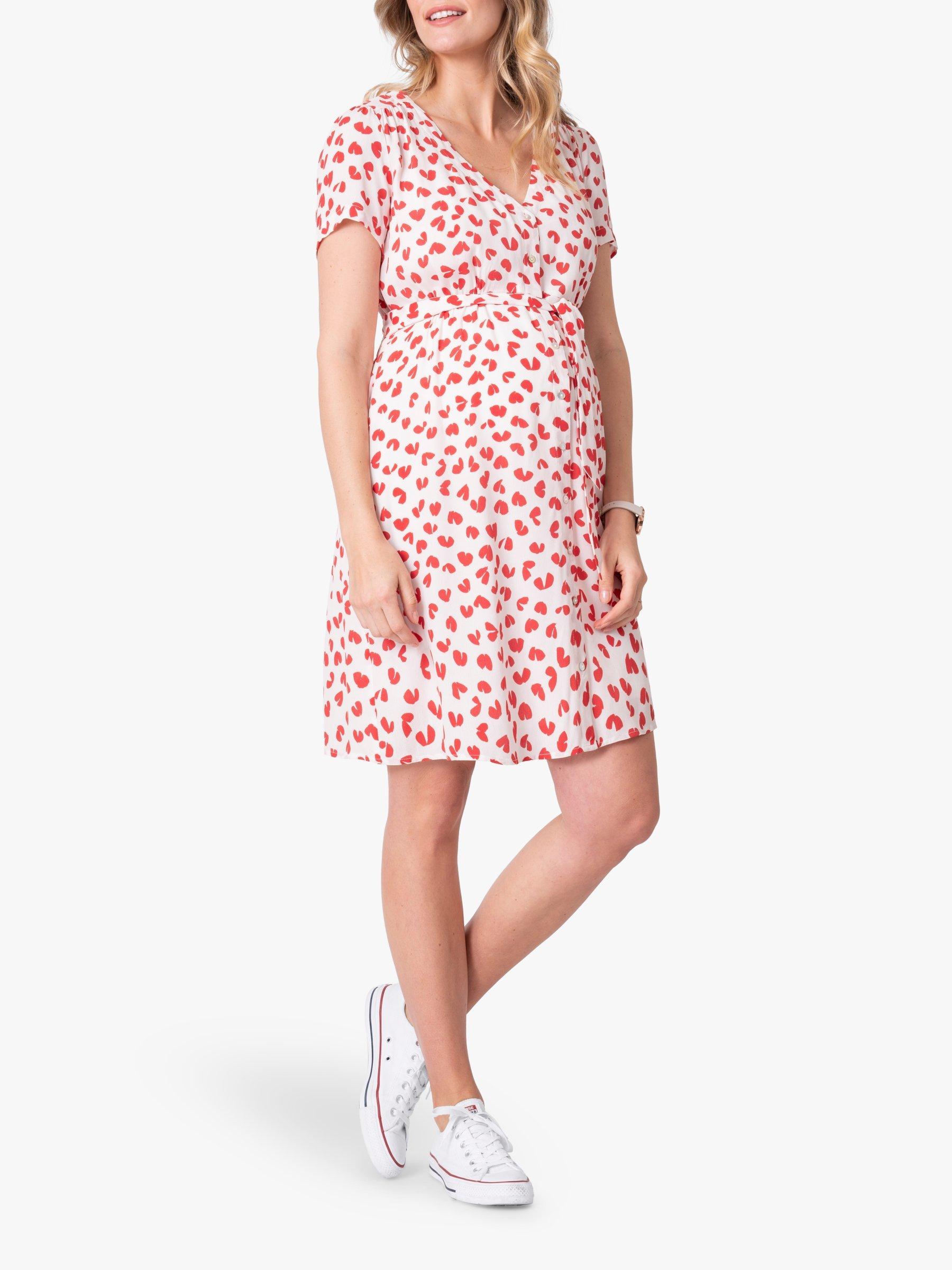 SeraphineButton Through Maternity Dress, Red/White