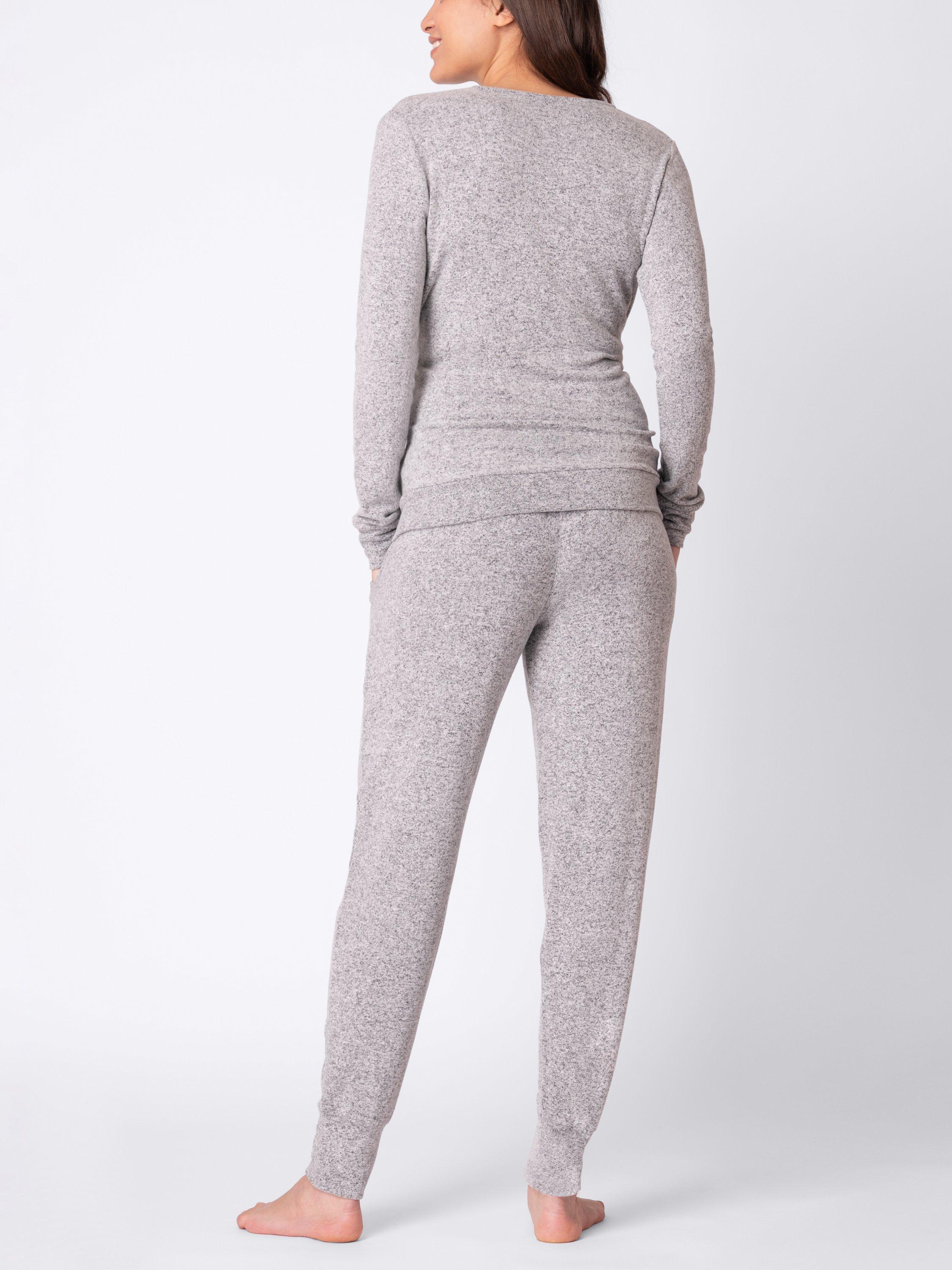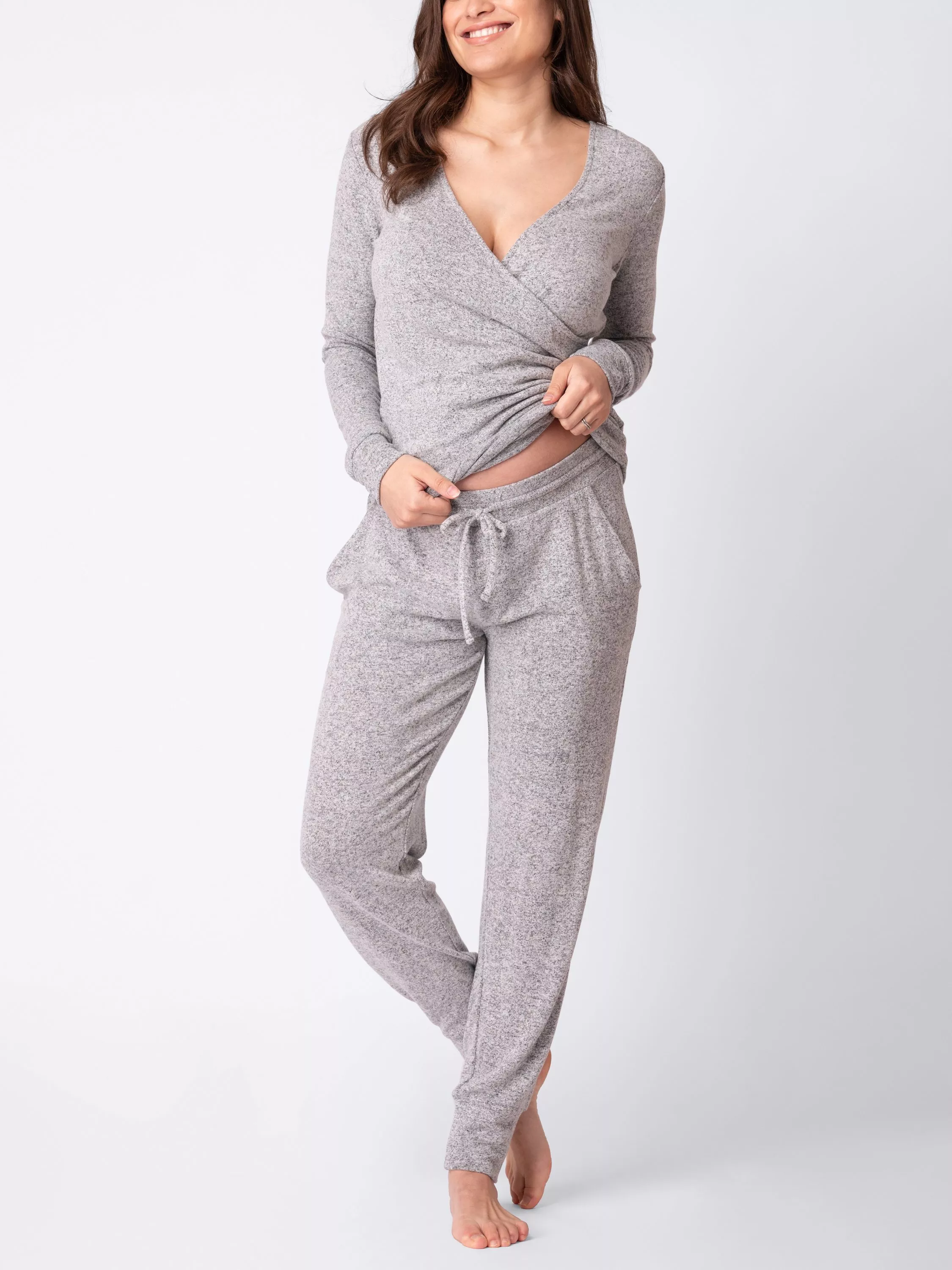 The softest, snuggliest style, the Maternity Loungewear Set is perfect for sleeping & relaxing at home. Made in ultra-soft fabric with plenty of stretch & a decadent fleecy finish, the style feels fantastic against your skin. A gently elasticated waistband sits comfortably under your bump, with drawstring ties to ensure a flexible fit, while the top features a simple crossover V neckline for easy pull-aside nursing access after baby is born.