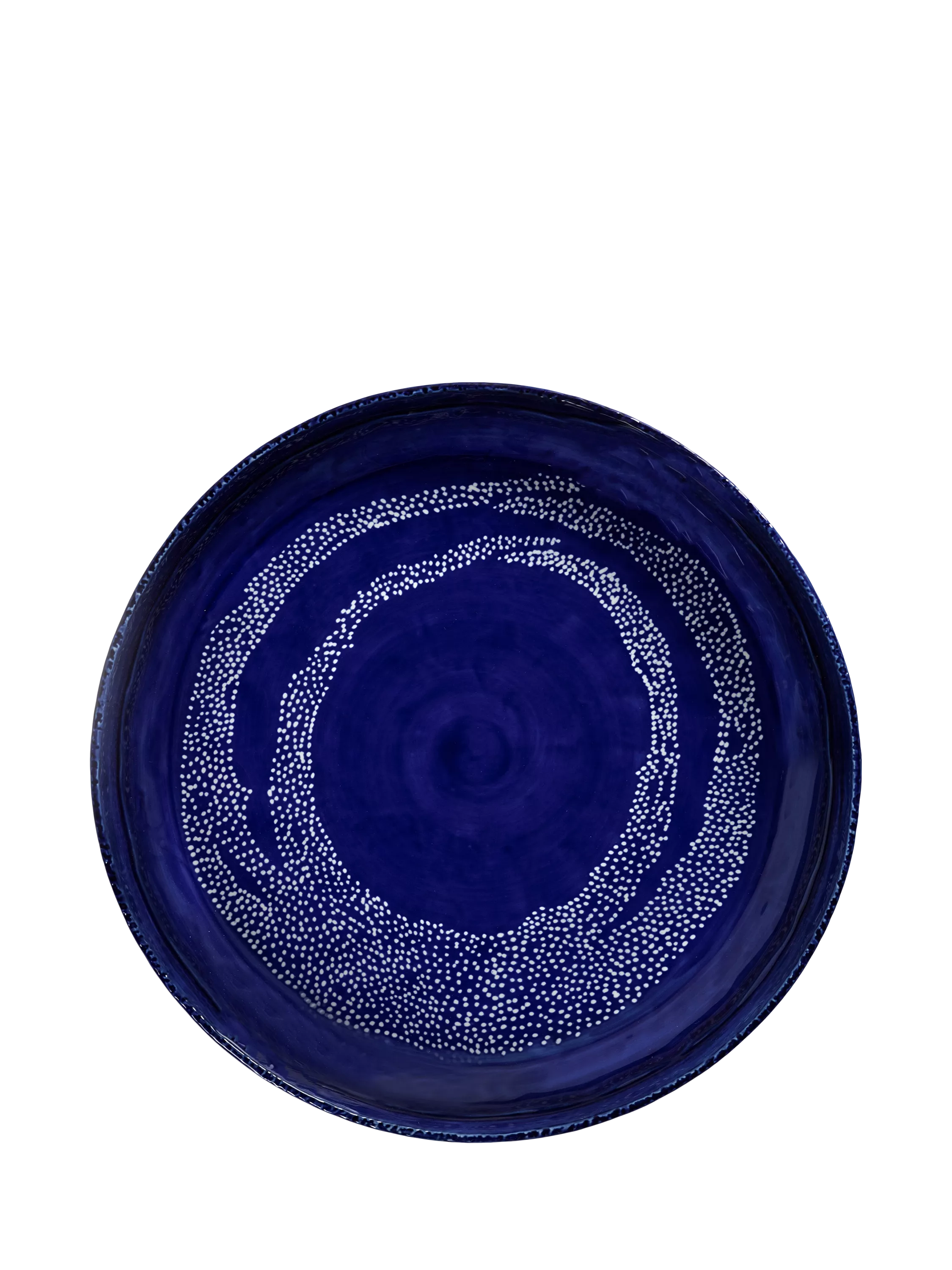 Serving dish in a deep, dark blue colour with a playful O-shaped white dots design from the Ottolenghi Feast tableware collection, a collaboration between chef Yotam Ottolenghi and Italian artist Ivo Bisignano. The Feast tableware line is an expressive collection that reflects rich colours and positive vibes.