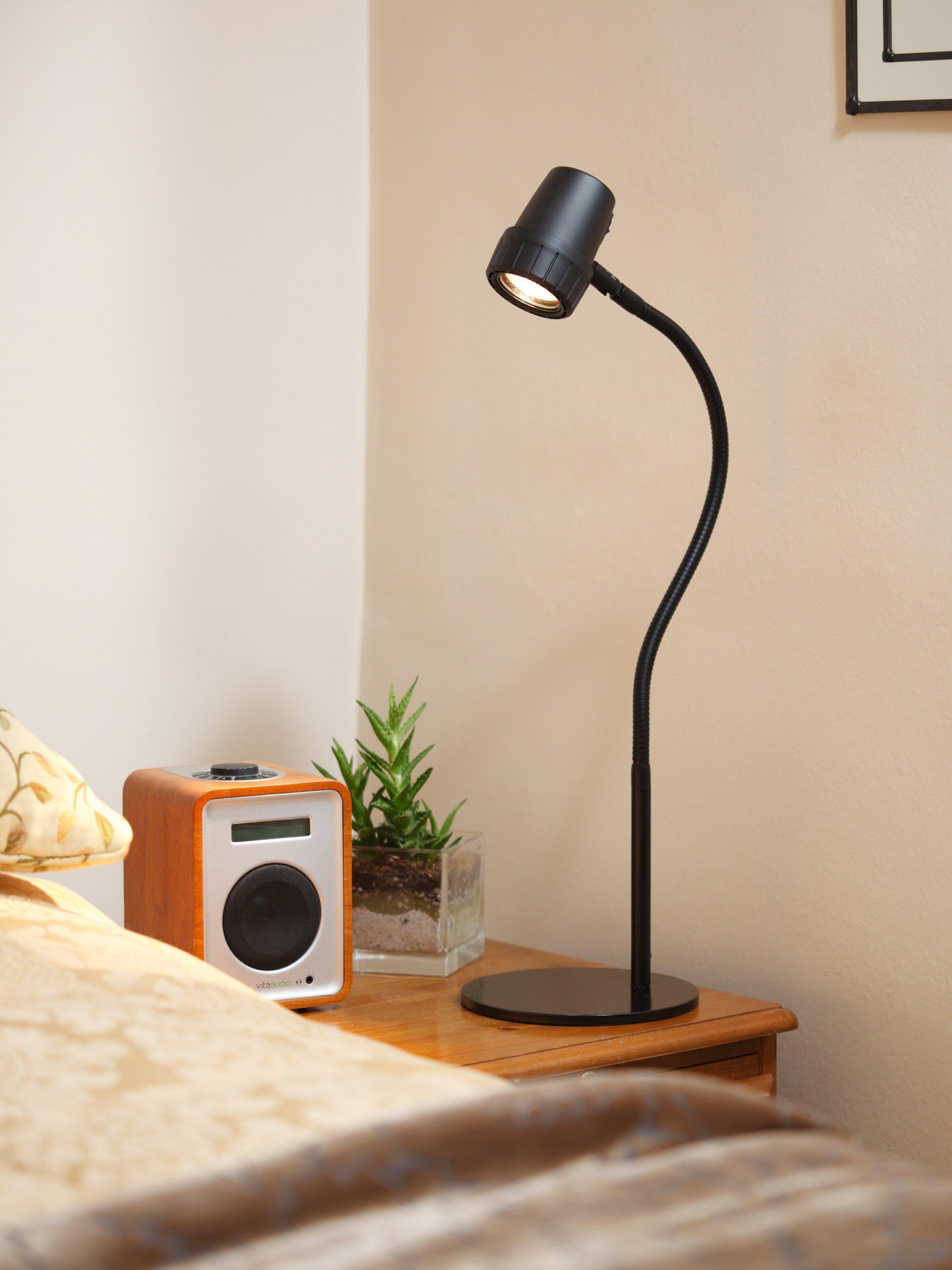 A single intuitive switch located to hand on the lamp head makes it easy to dim and precisely direct the beam. The lightweight base is flat to maximise useable space.