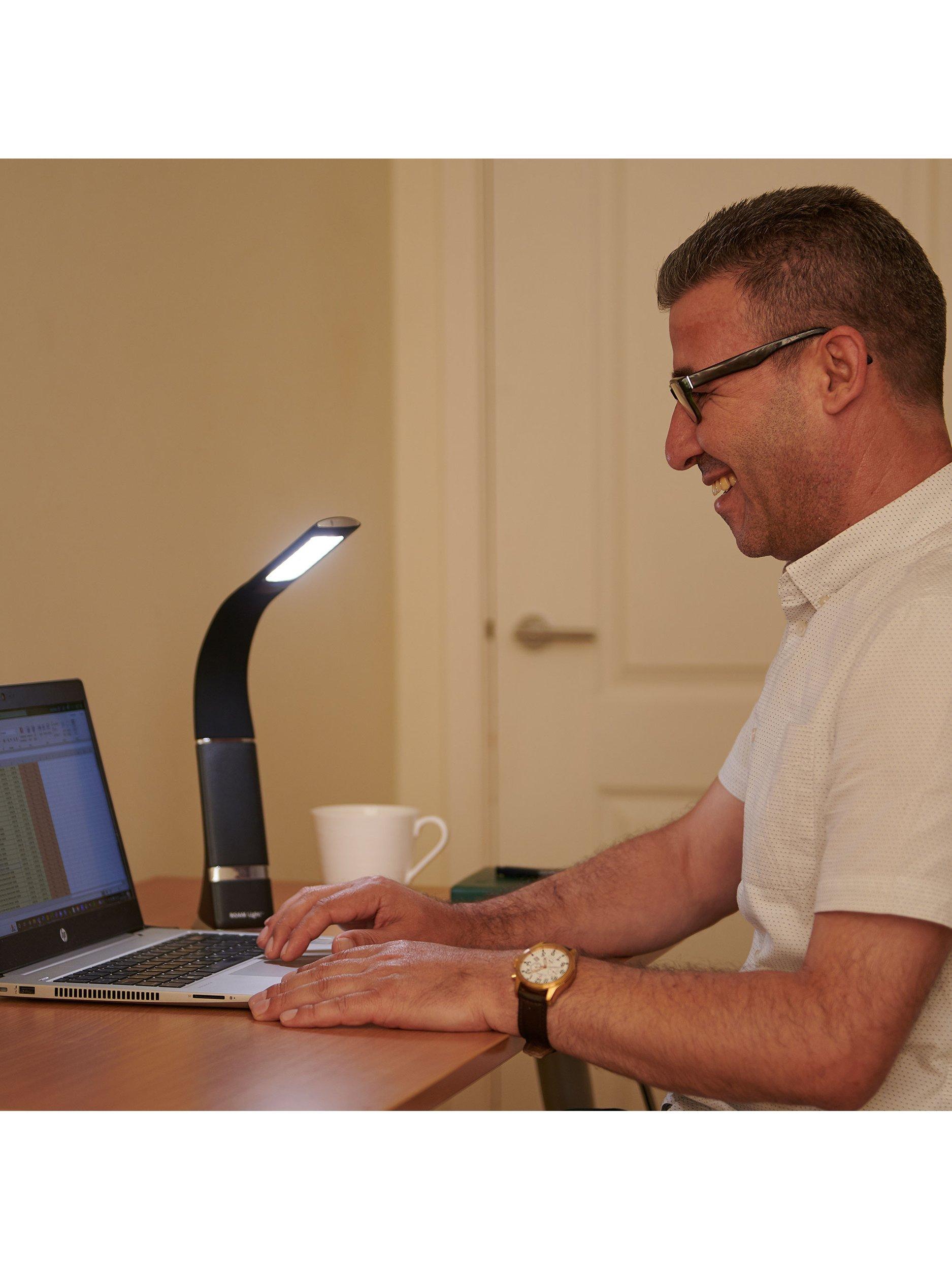 Projecting an intense and balanced white light, the Roam is the next step in flexible home lighting. With its ultra-portable, flexible and adjustable design, it directs light to exactly where it's needed. It can be used as a permanent desk or bedside light or moved around your home or beyond to wherever it's most needed.