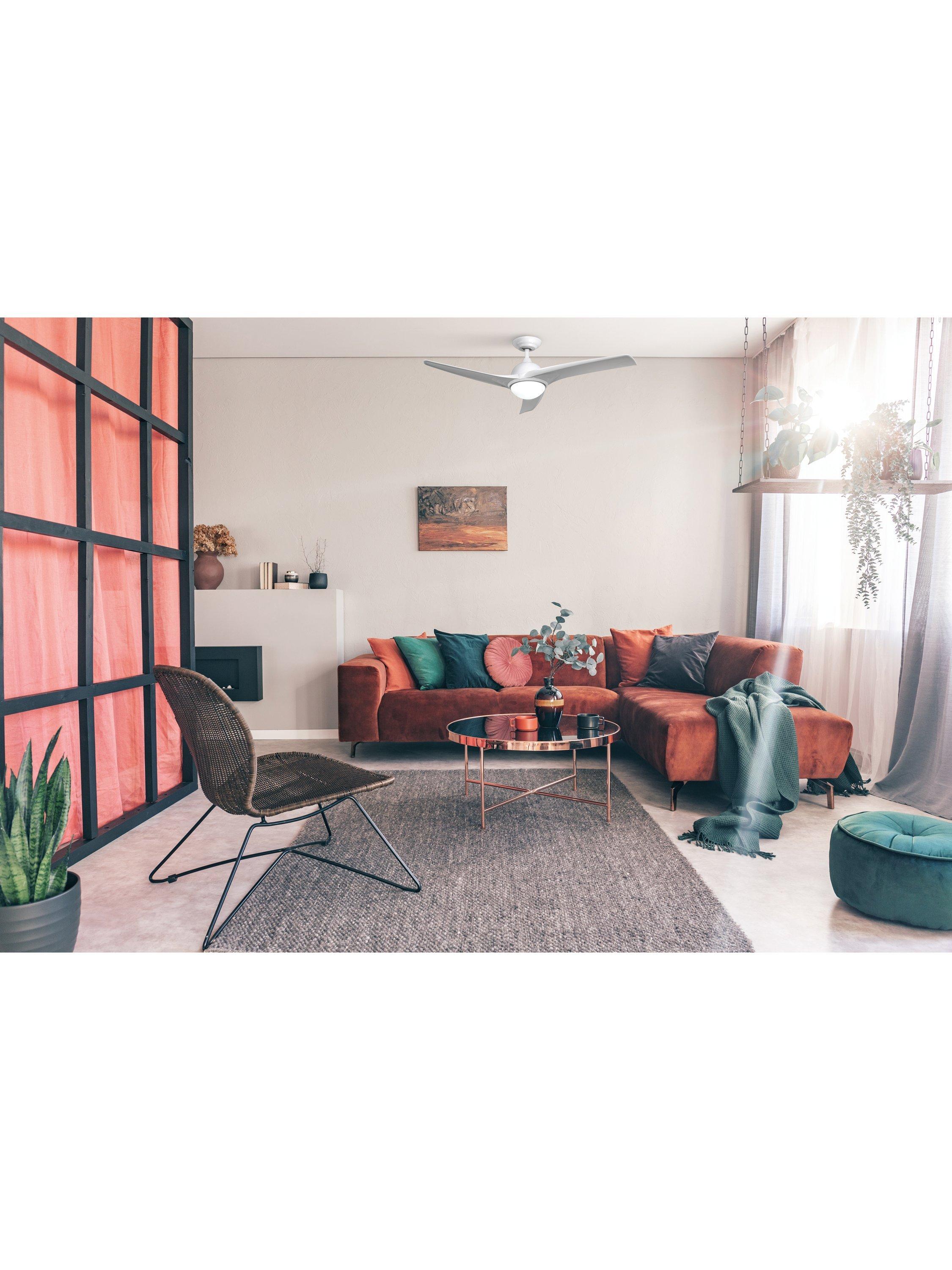 The Costa ceiling fan with its integrated LED light is a modern and elegant design to give a touch of freshness and style to your home. Its minimalist design in pure white blends perfectly with any decor, while its three white wooden blades offer a neutral and sophisticated look, as well as light and quiet operation. Ideal for living rooms, bedrooms and offices, it's operated by remote control. Refresh your space with style and comfort.
