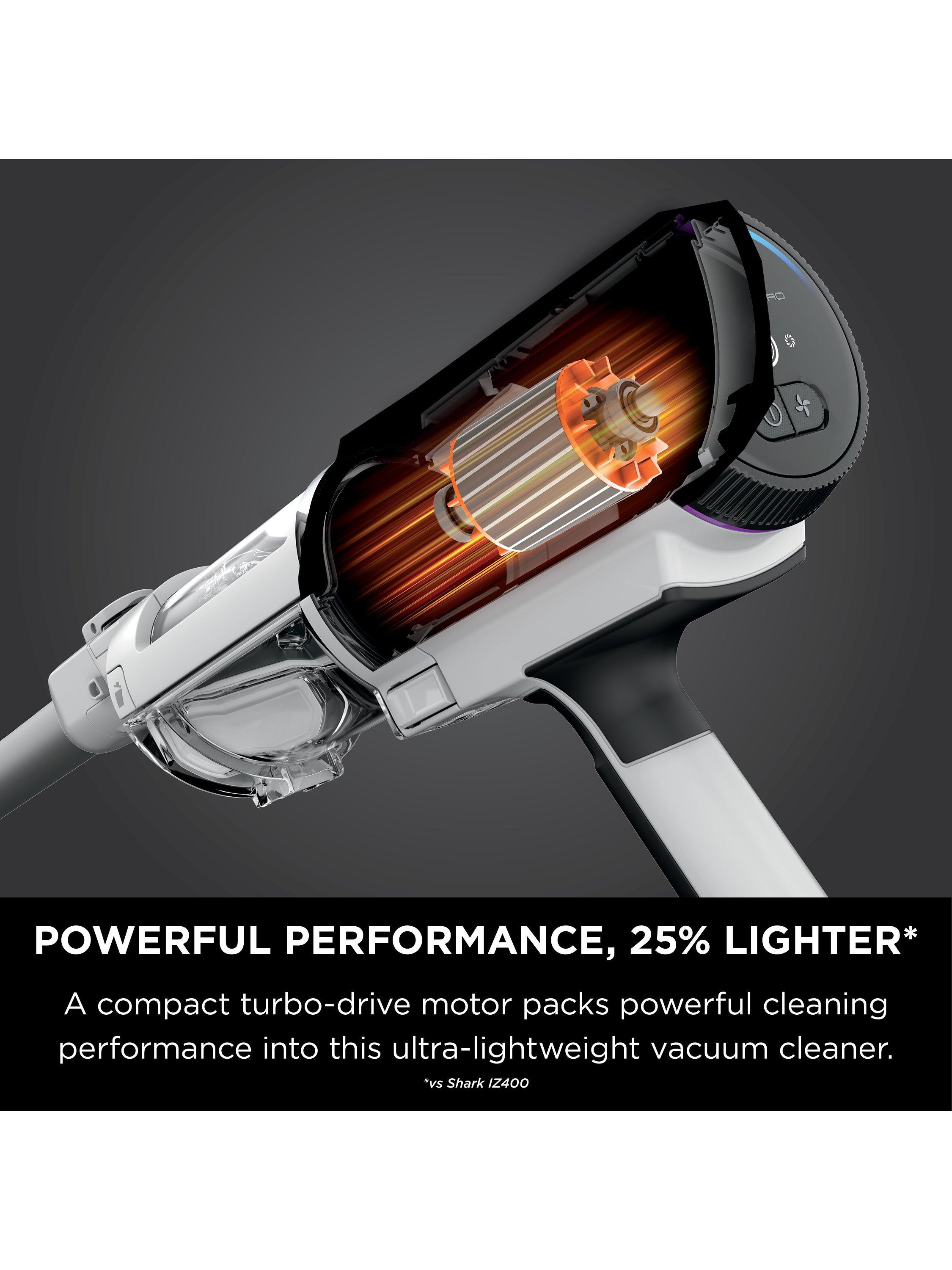25% lighter**** A compact turbo-drive motor packs powerful cleaning performance into this ultra-lightweight cordless vacuum. (****Vs Shark IZ400)