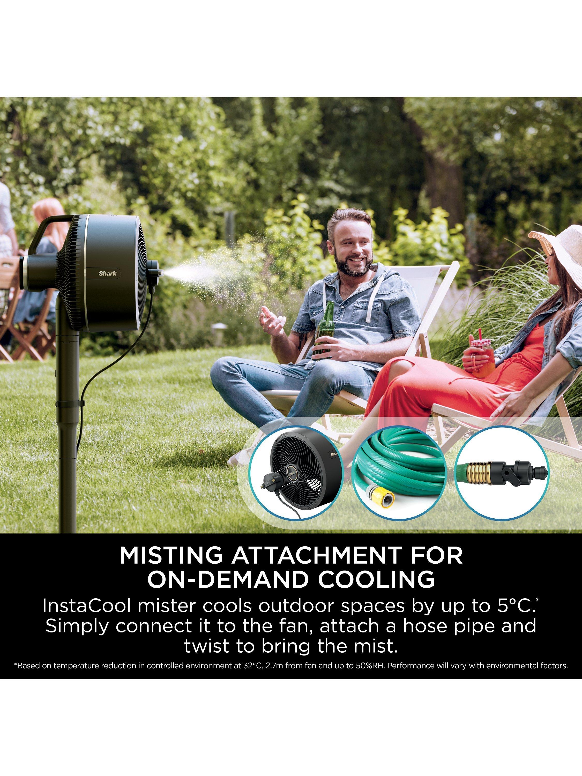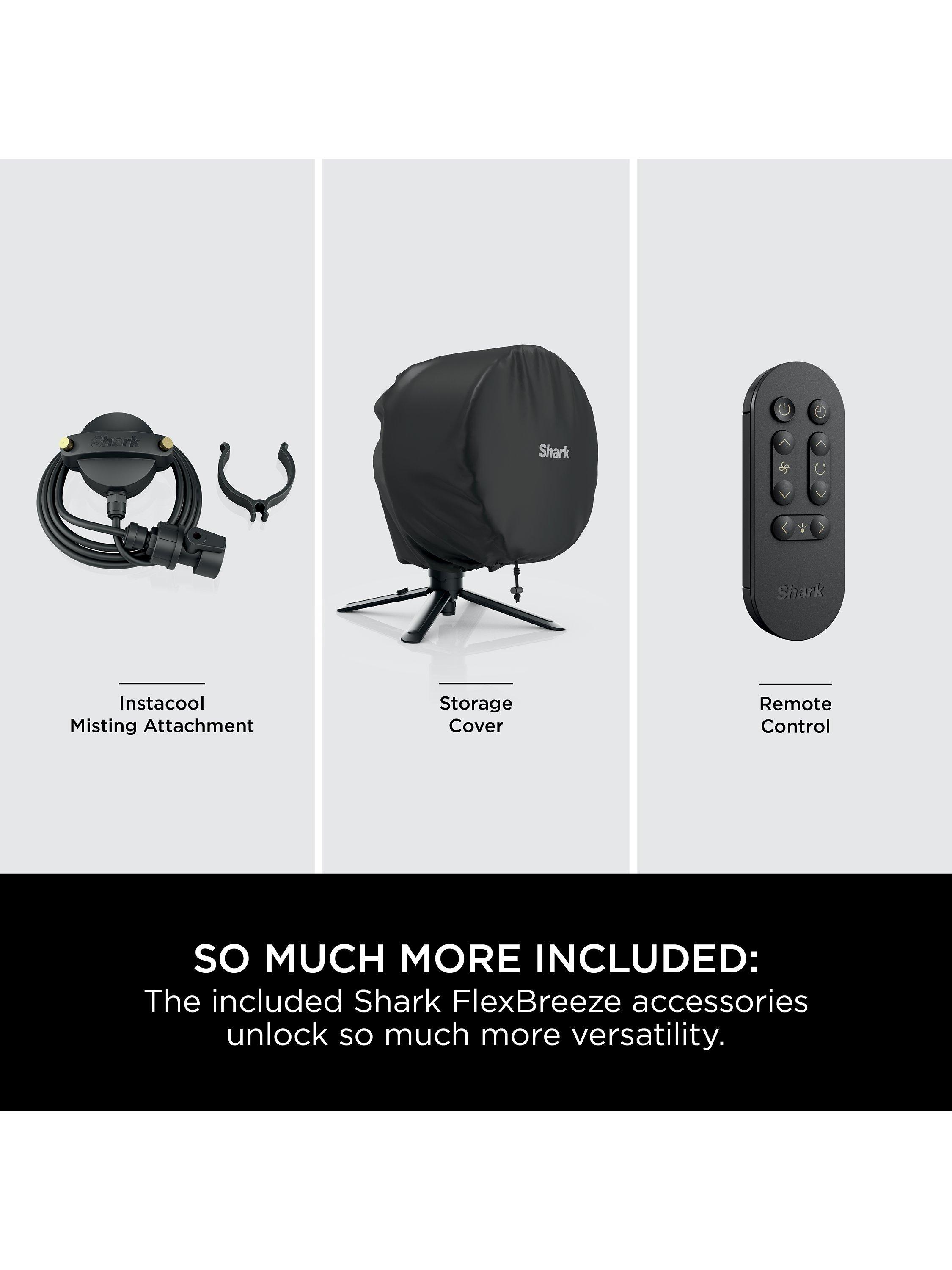 Includes a fan cover, pedestal base, InstaCool Misting Attachment and remote control.