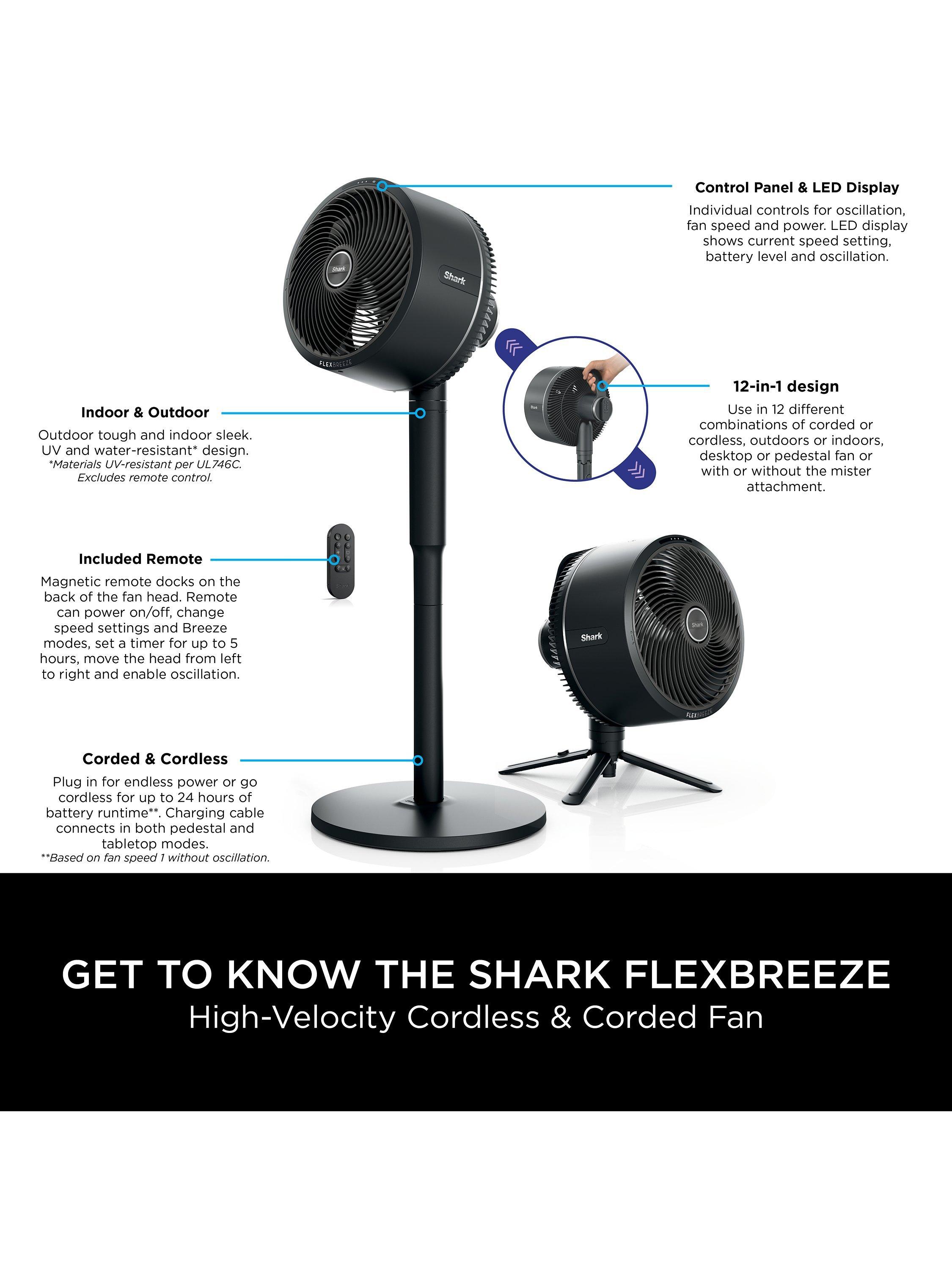 This impressive transforming fan can be used in 12 combinations of corded or cordless, outdoors or indoors, desktop or pedestal fan, with or without the mister.