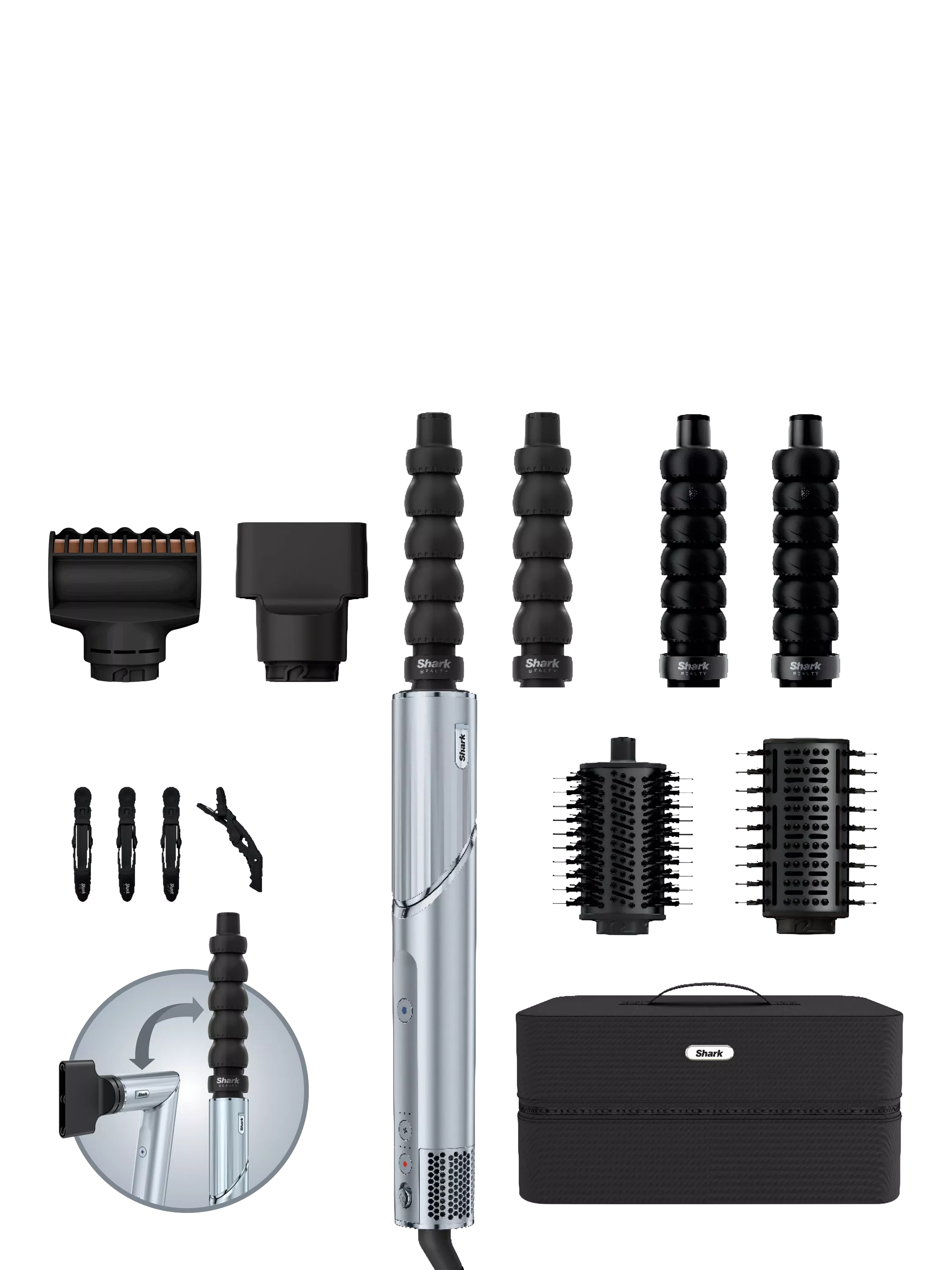 Powerful, fast drying meets versatile multi-styling. With a single twist, Shark FlexStyle rotates between a powerful hair dryer and a 6-in-1 styling wand.