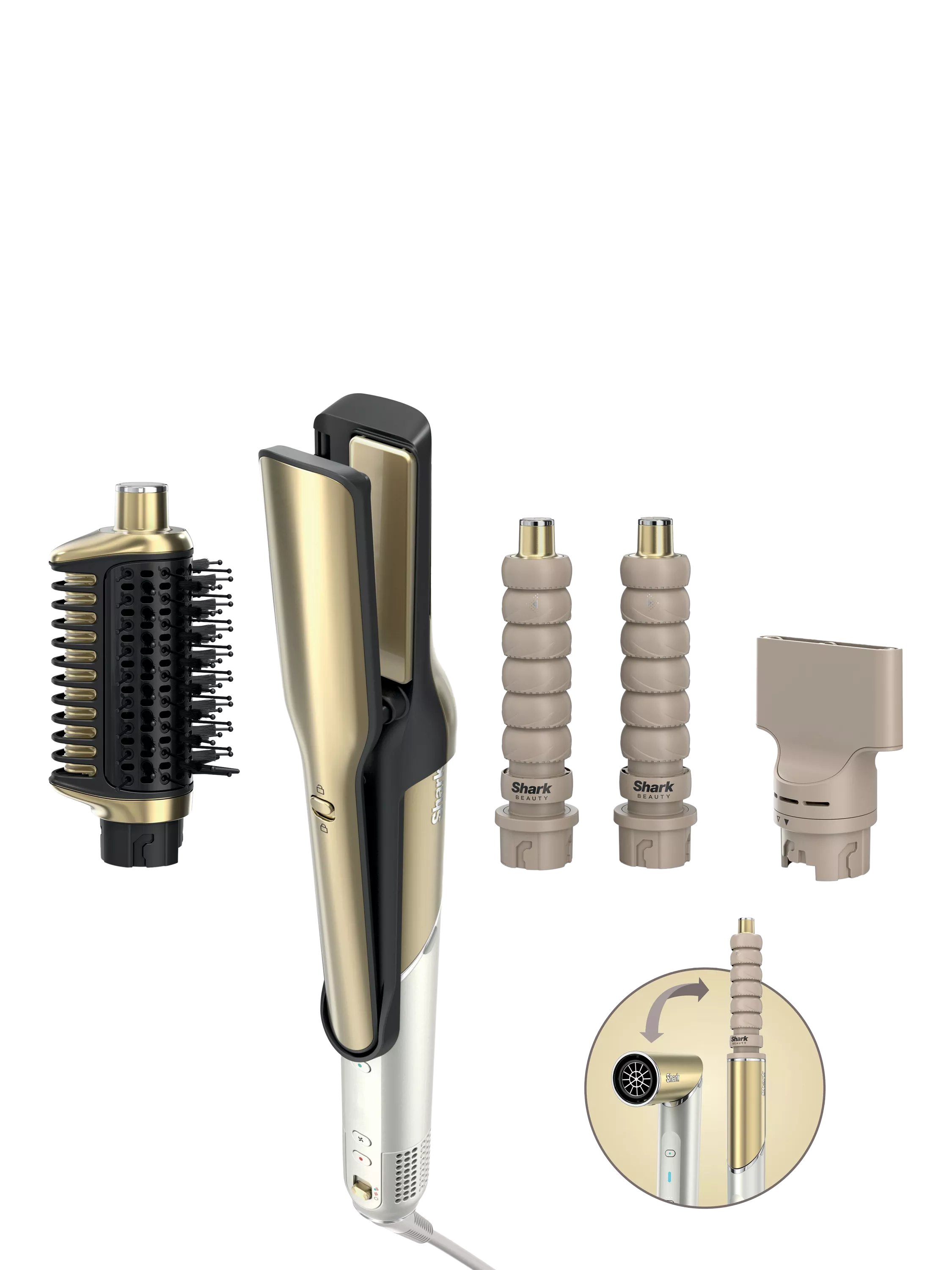 - Main UnitShark Silki Straightener AttachmentShark Glossi Styler Attachment2x Auto-Wrap CurlersStyling Concentrator
