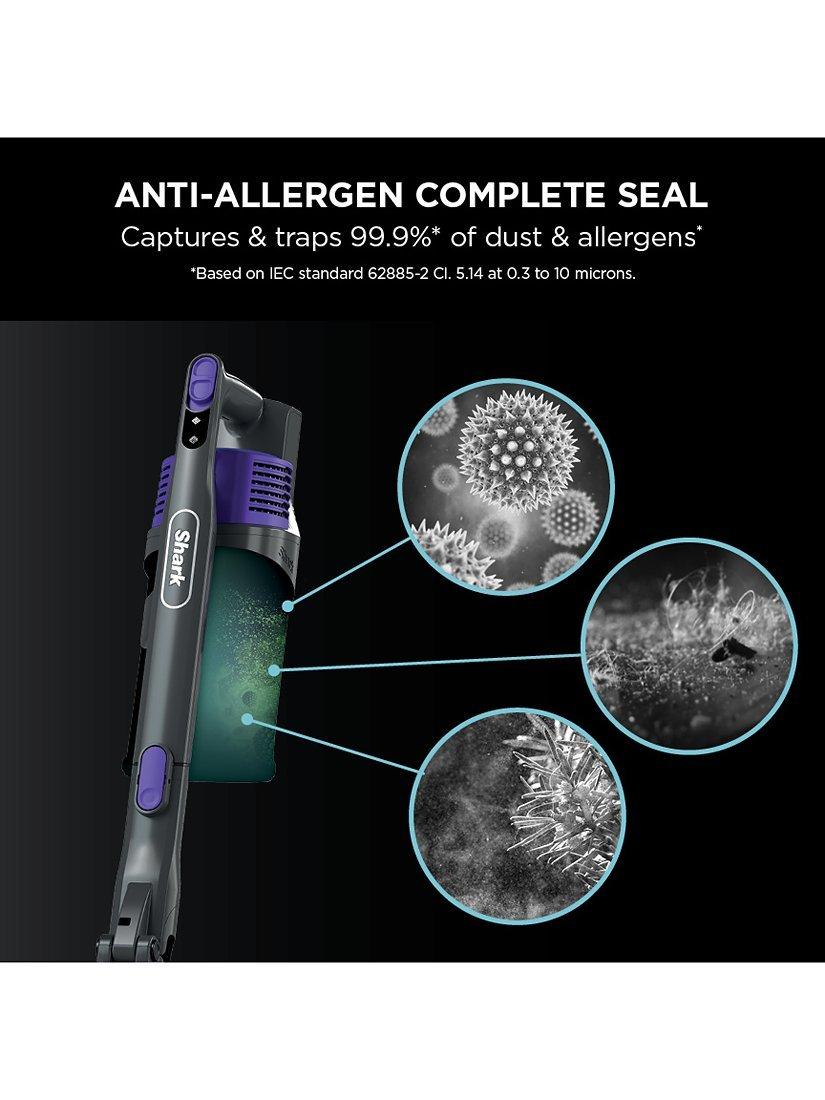 Shark’s high-efficiency filters are completely sealed within the vacuum cleaner unit, capturing and trapping 99.9% of dust and allergens inside the vacuum, not releasing them back into the air you breathe** (**Based on IEC standard 62885-2 Cl. 5.14 at 0.3 to 10 microns).
