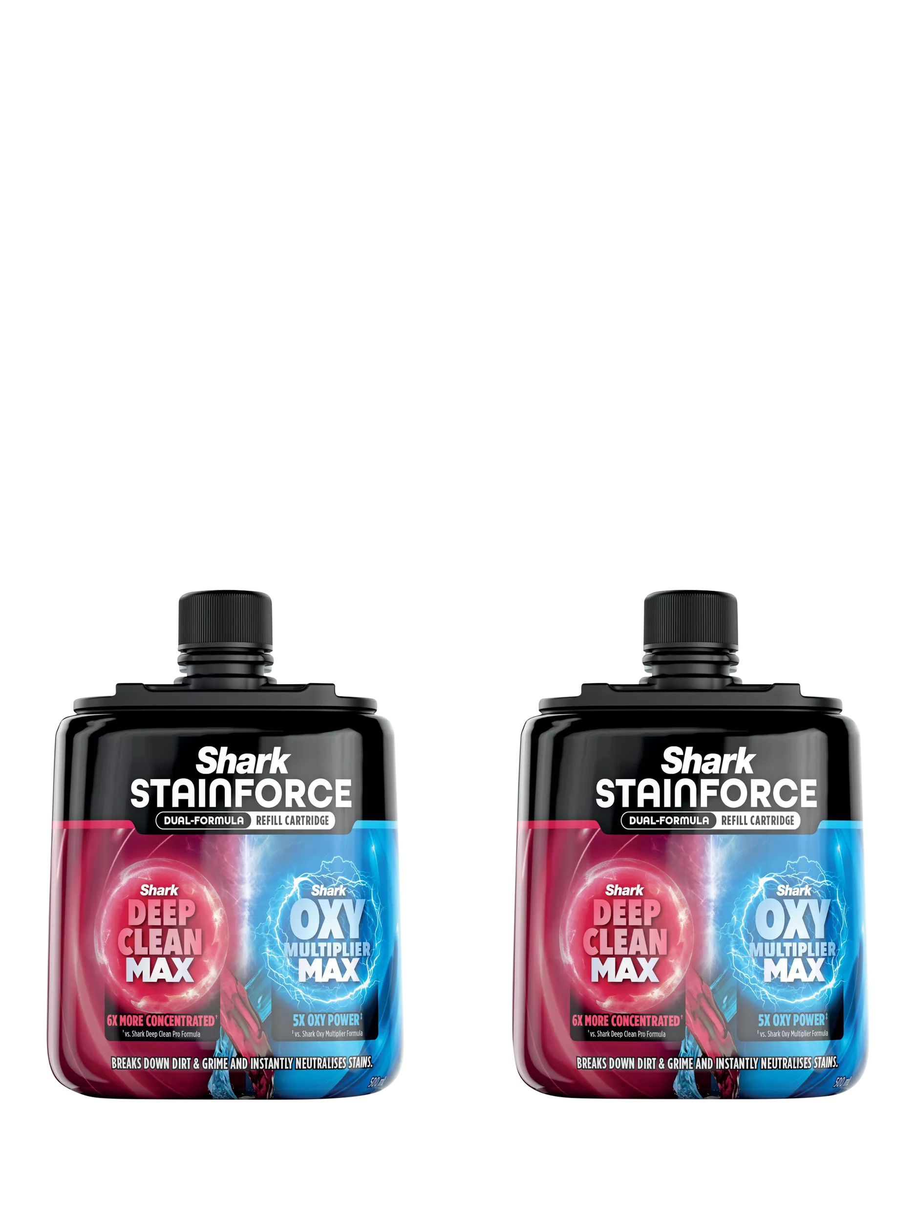 Shark’s most powerful stain-fighting formulas mix inside the spray head to deliver 30x more stain-fighting power*. Formulated to tackle everyday spills & stains** the moment you see them and to instantly eliminate odours - even pet urine and smoke. Designed for use on carpets, area rugs, stairs, upholstery, car interiors and more***. For use with Shark StainForce cordless portable stain cleaner.