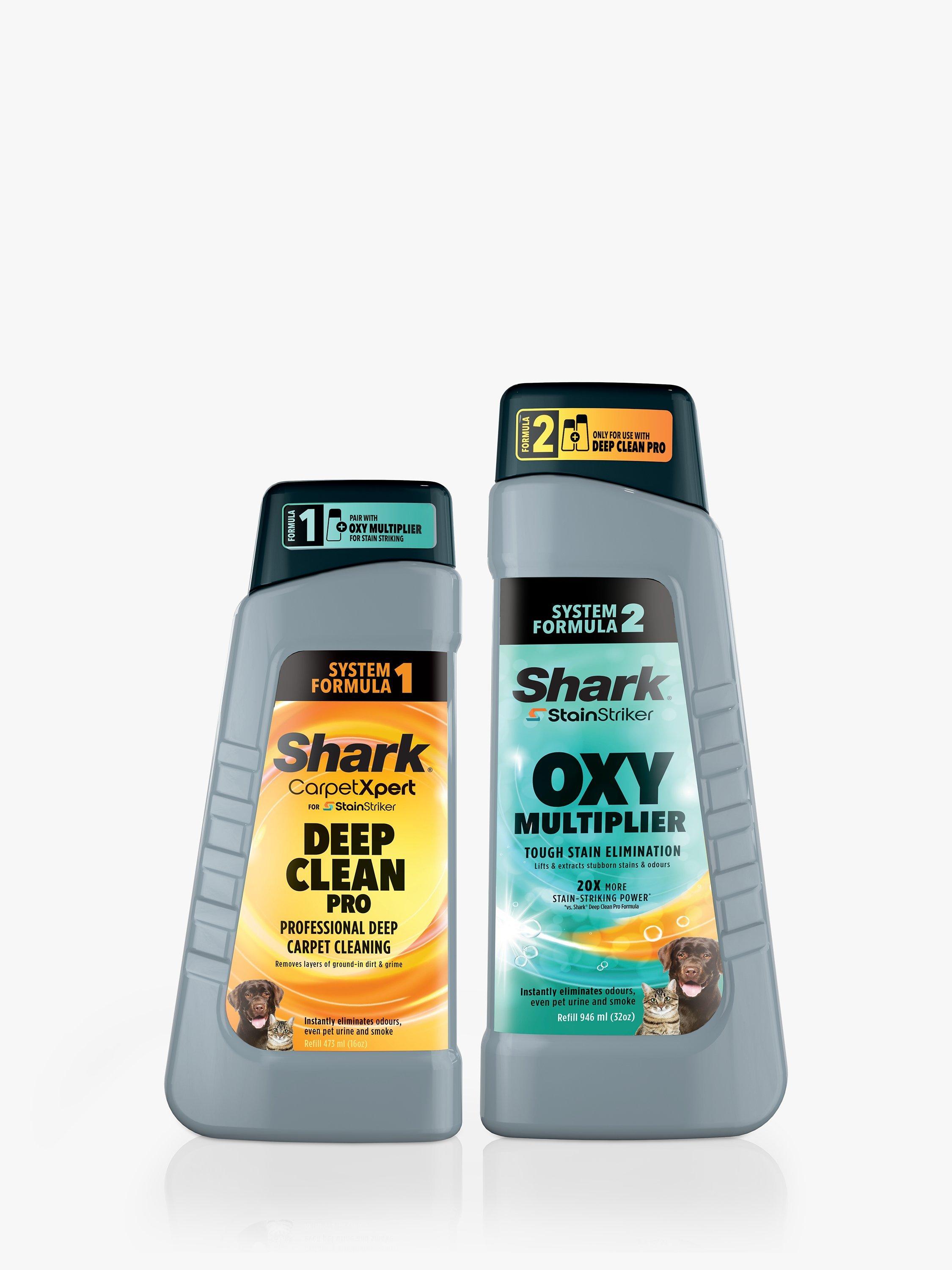 Shark's StainStriker Oxy Multiplier formula and CarpetXpert Deep Clean Pro formula mix together and activate inside your StainStriker Spot Cleaner, targeting and removing even the toughest stains.
