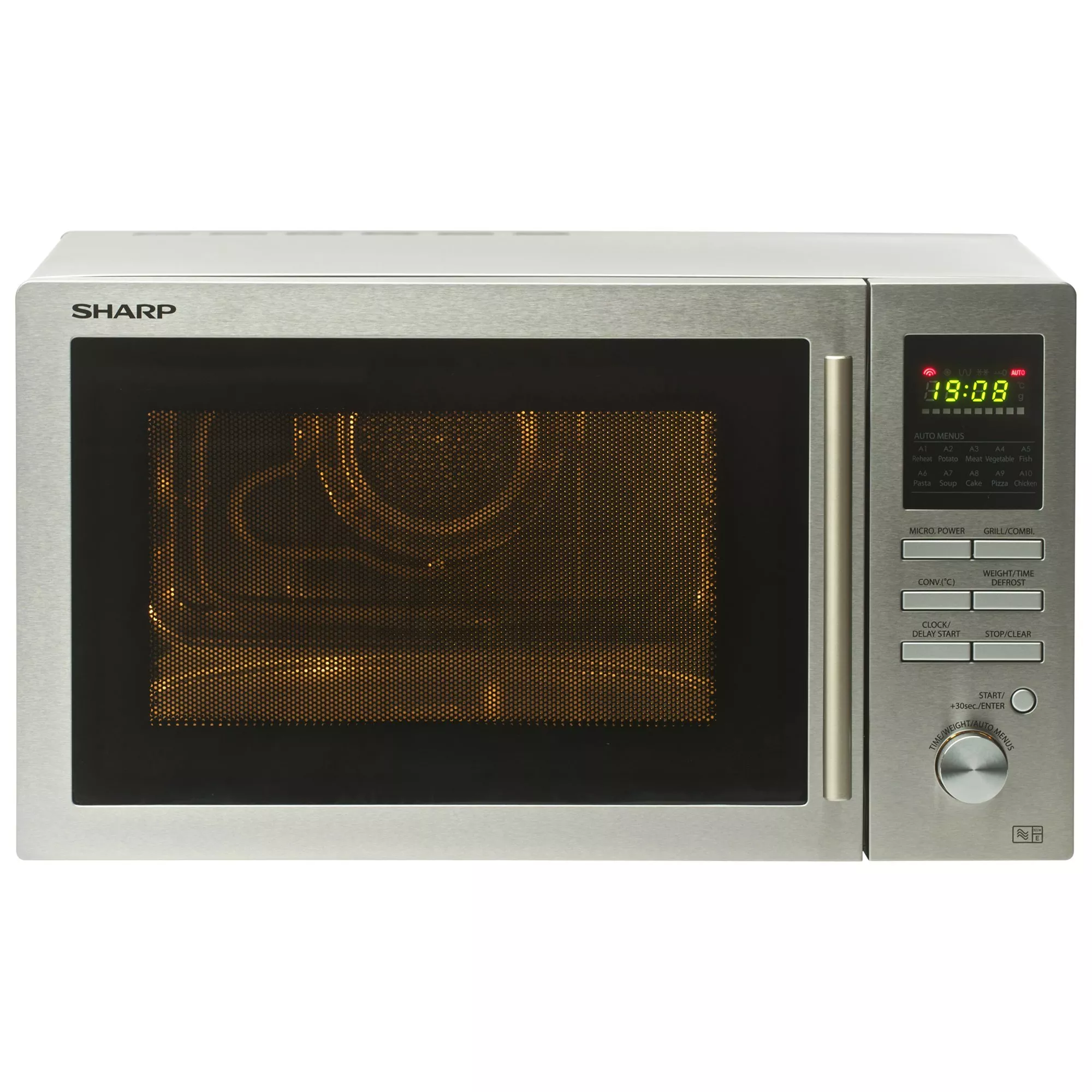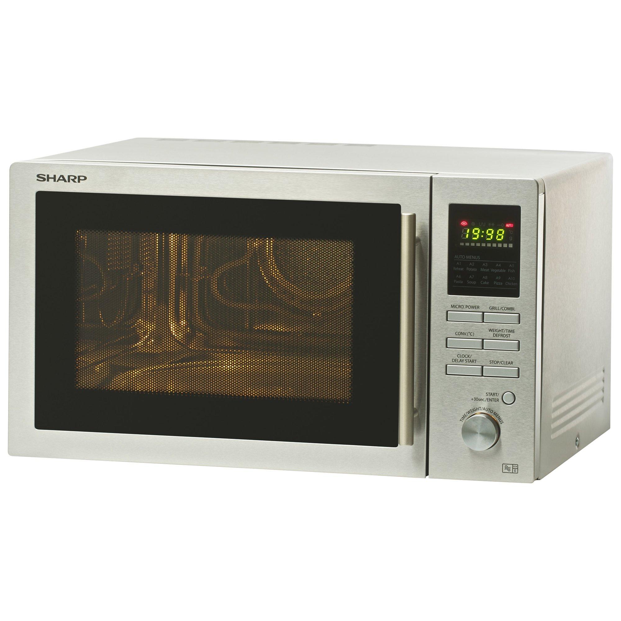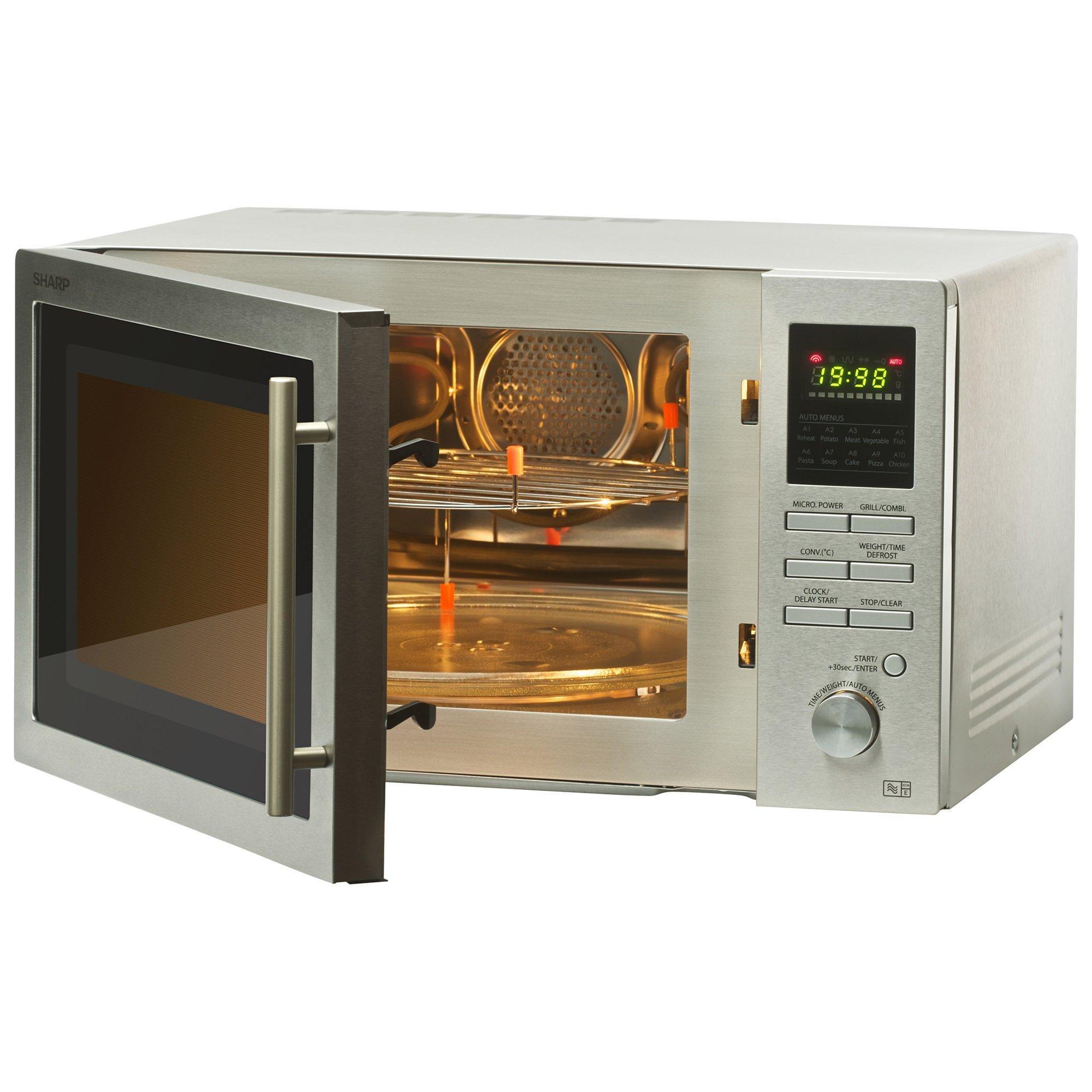 A great addition to any kitchen, this stylish 25L combination microwave oven from Sharp has a rating of 900W for powerful cooking. It has five power levels plus ten automatic cook and defrost settings. Other features include a dedicated pizza option, child safety lock, delay start function and direct start cooking for 30 seconds. It has touch control operation for ease of use and an LCD display and clock.