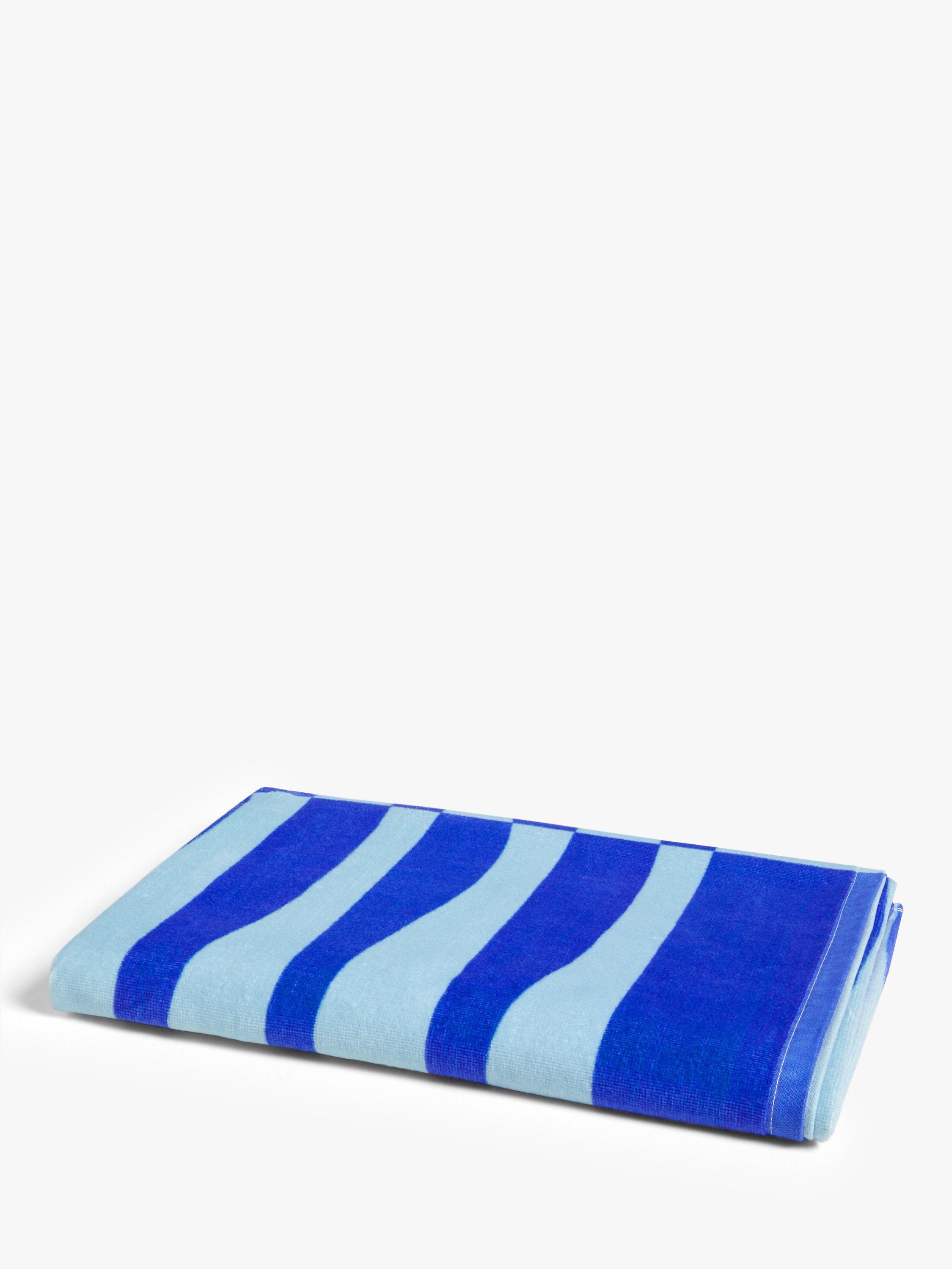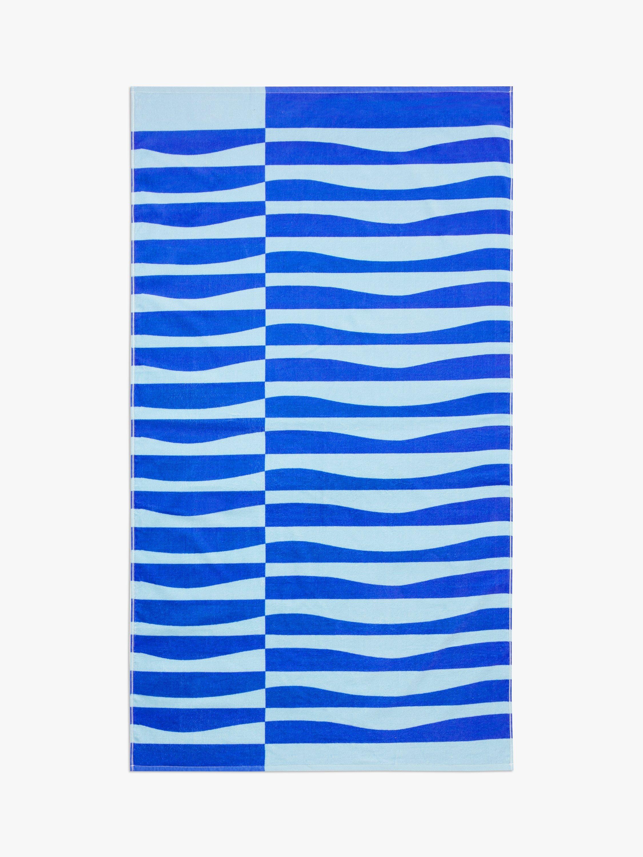 The abstract combination of straight lines and curves creates the look of sand dunes on our Shifting Sands beach towel.