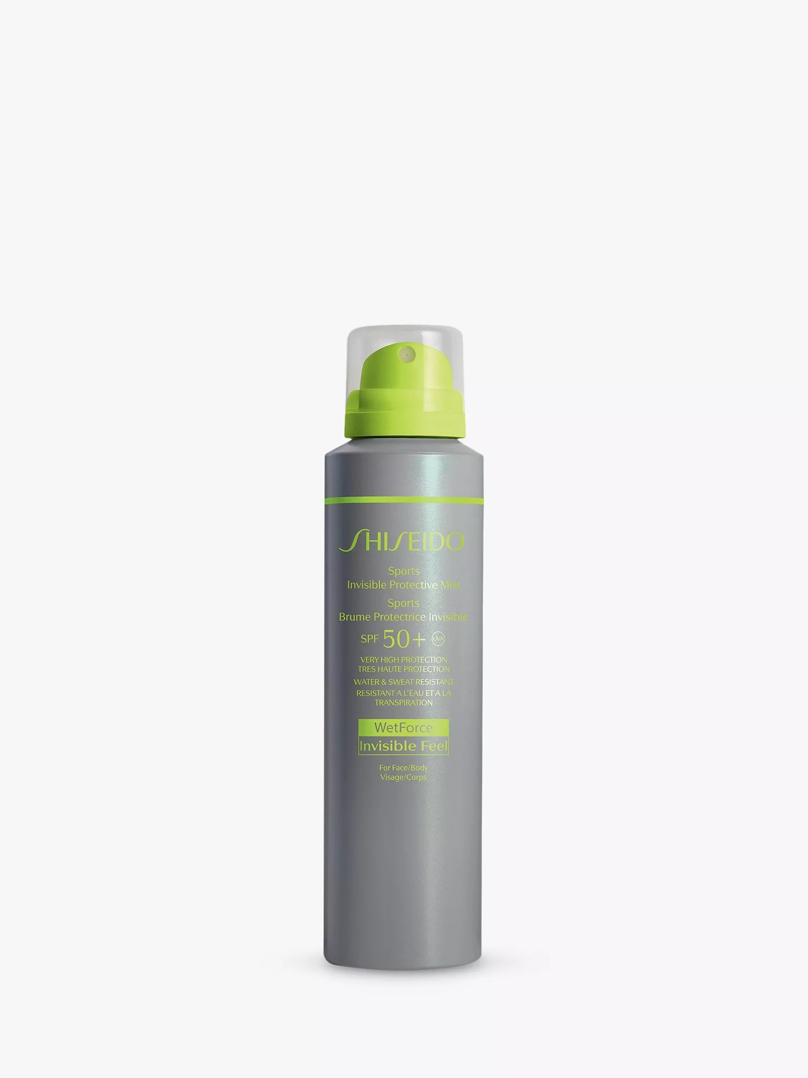 An invisible protective mist for face and body, non-sticky and instantly absorbed, ideal for outdoor activities and sports.