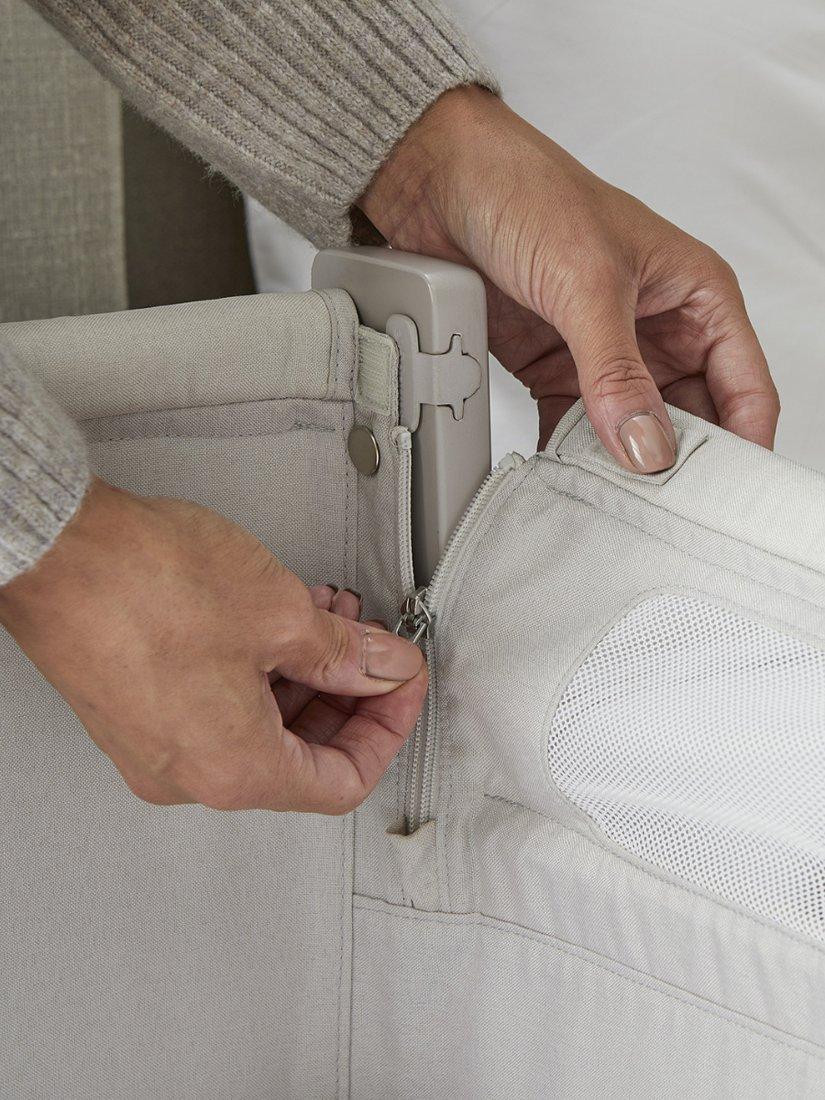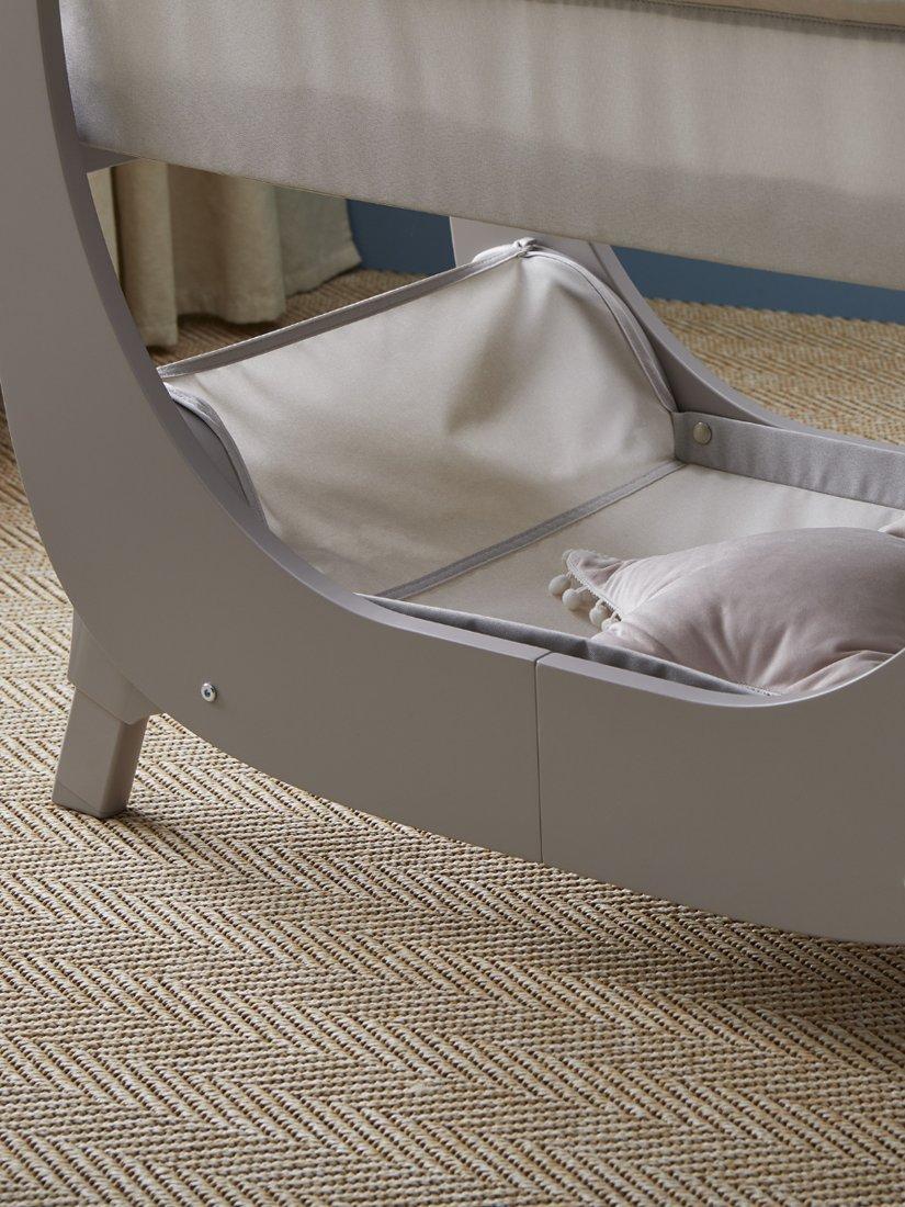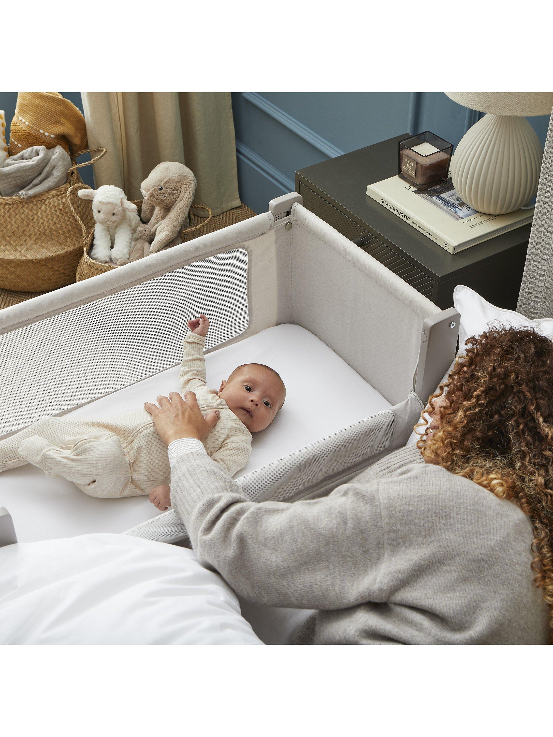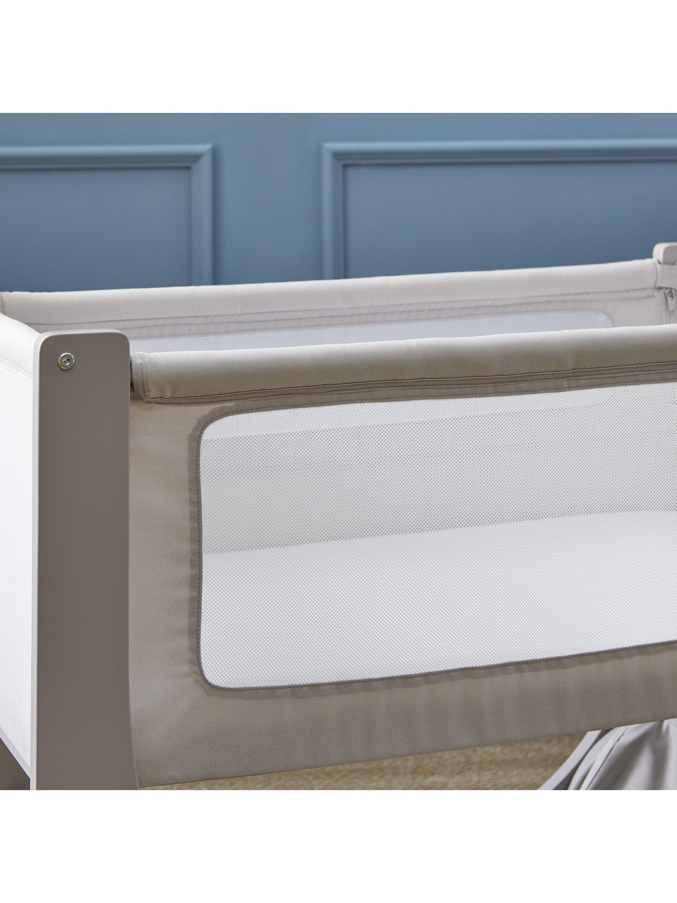 The Shnuggle Air Lite Bedside Crib has dual mesh sides offering maximum airflow and the supportive, breathable mattress helps regulate baby's temperature. The whisper quiet drop-down side is quick and easy to use without disturbing baby and the rigid low-level option has been designed for safe bedside sleeping in line with the latest crib safety standard BS EN 1130:2019. An incline option helps ease colic and reflux and the storage hammock holds all those feeding and changing essentials.
