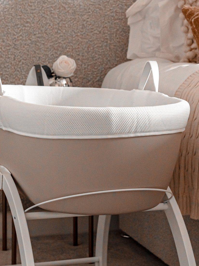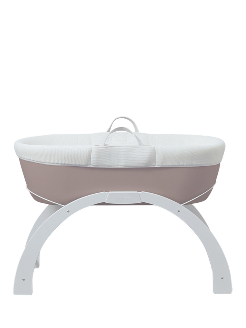 Use this as a bedside crib for night time or move it around the home for day time naps. Offering a larger and modern alternative to the traditional wicker moses basket, it has a ventilated and hypo-allergenic base, breathable mesh dressing set and luxury quilted mattress. It's suitable from 0 – 6 months or until baby can roll over or pull themselves up. The stand can be used in two positions: a fixed bed height or a low-level rocking height.