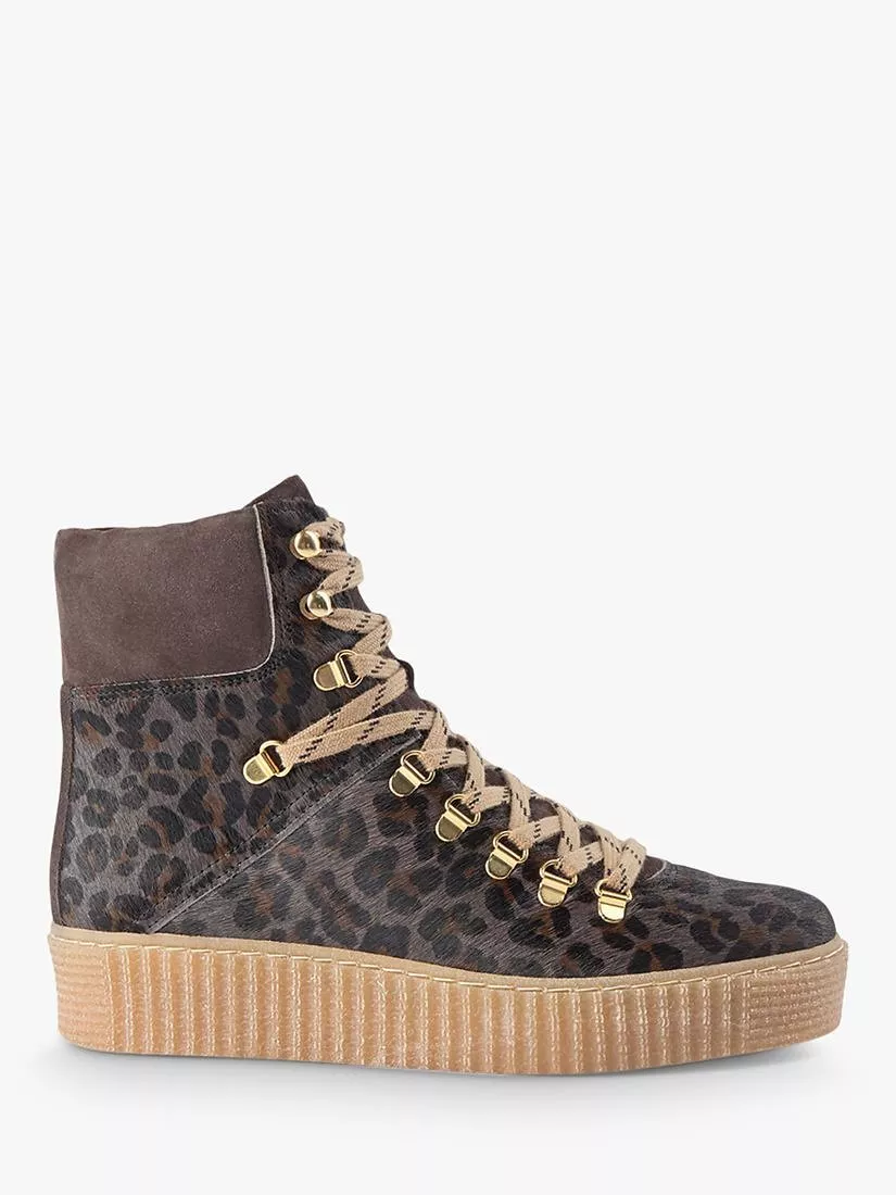 WODEN SHOE THE BEARSHOE THE BEAR Agda Pony Skin Leopard Print Lace Up Hiker Boots
