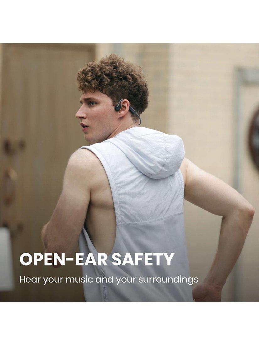 Unlike traditional wireless earphones, bone conduction headphones sit in front of your ears leaving them open. Further, it’s lightweight at only 29 grams, making them hardly noticeable so that you can enjoy balanced audio and still move your body freely.