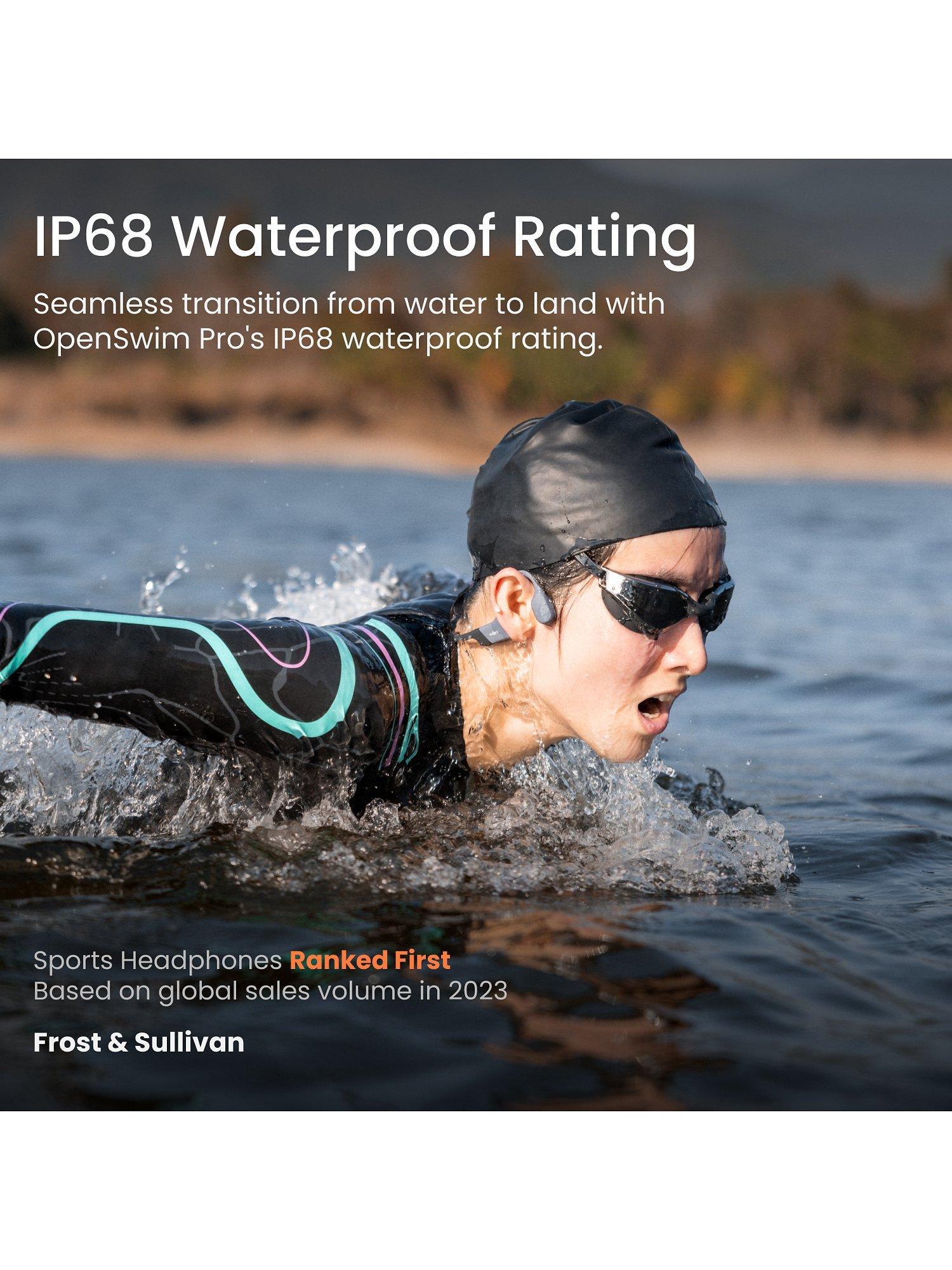 IP68 Waterproof Rating, Adventure-Ready: Transition from water ventures to rugged terrains with OpenSwim Pro's IP68 waterproof rating. Integrated technology and a triple-sealed design ensures worry-free water resistance. The microphones’ breathable membrane, along with the innovative layered design safeguard against sweat and splashes. Confidently take on depths of up to 2 metres for 2 hours, thanks to enhanced durability — keeping you prepared for every adventure.