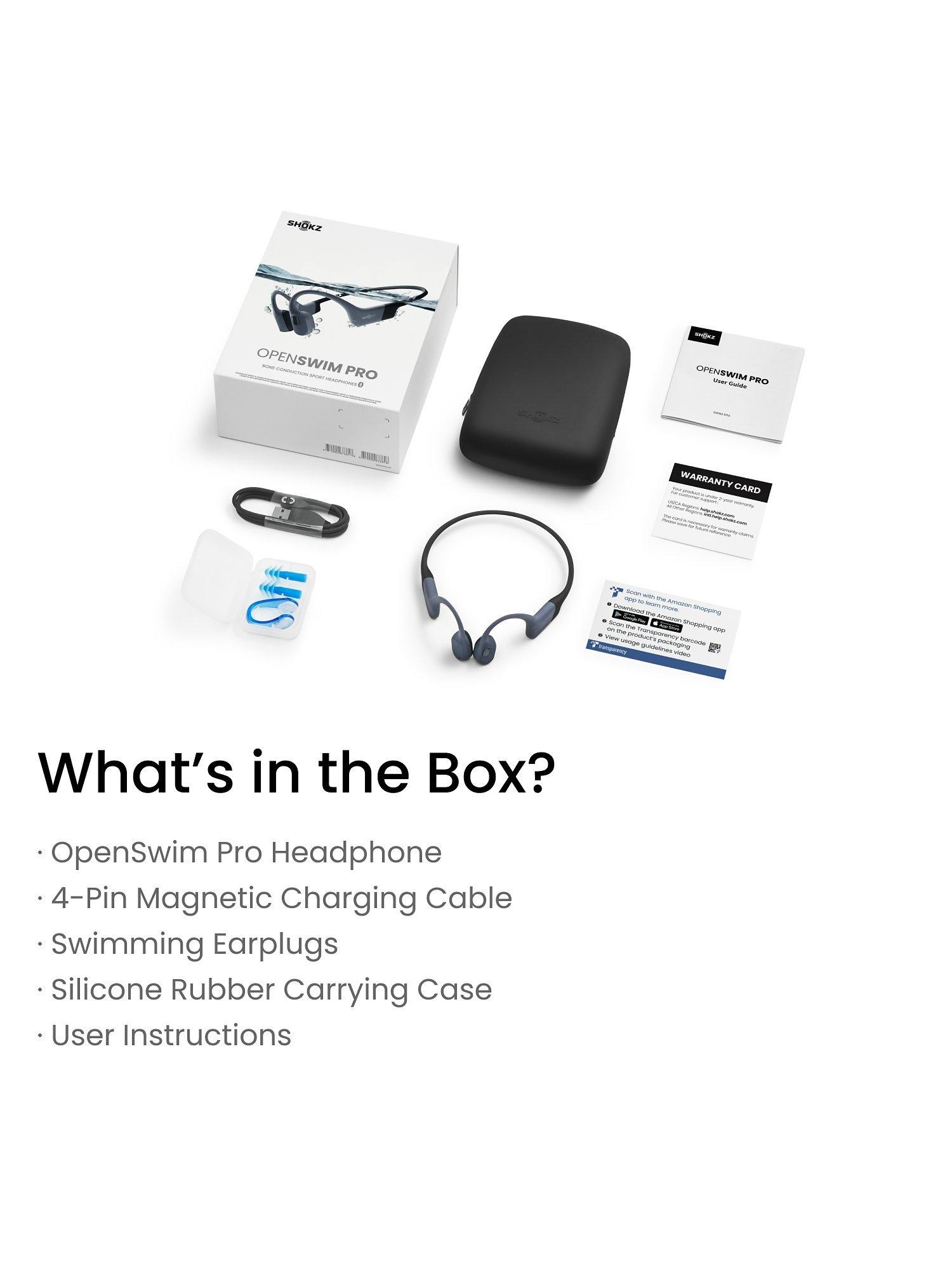 - OpenSwim Pro Headphones*1Silicone Carry Case*1USB-Magnetic Charging Cable*1User Instructions