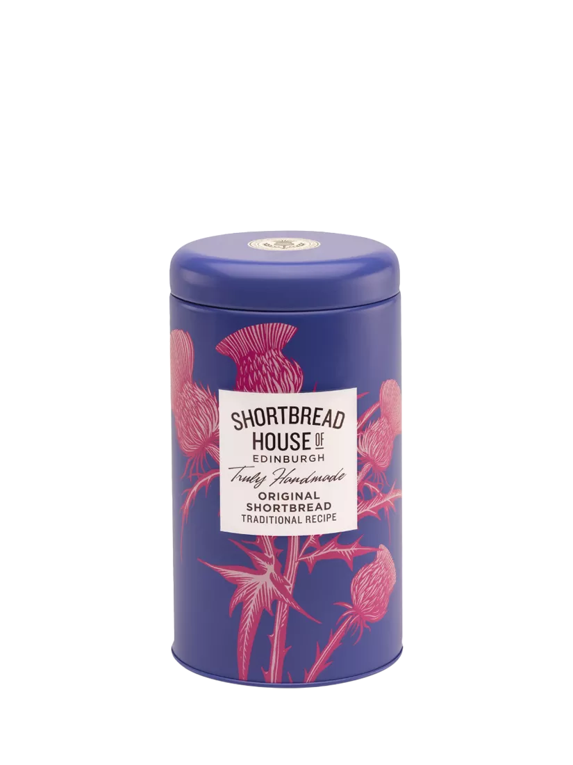 A decorated tin featuring Scotland's national flower, the thistle. Each tin contains approximately 7 individually hand cut shortbread biscuits made using best quality butter and a little ground rice for a delicious flavour and a light crisp texture.