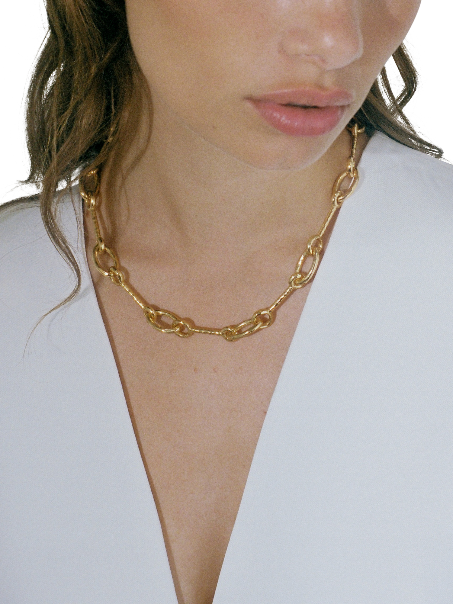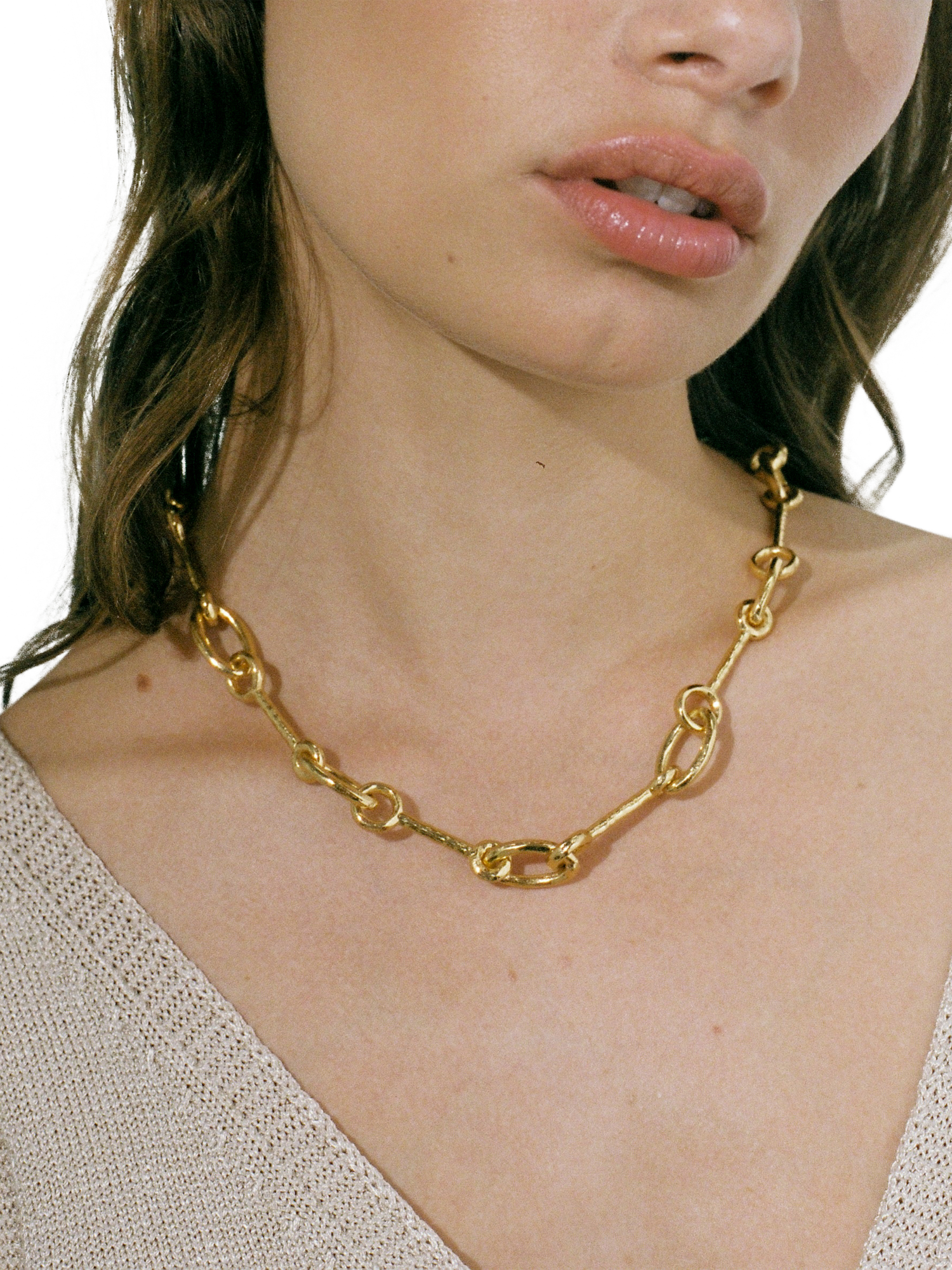 The Matera necklace is formed of interlocking oval and round circles. An elegant and simple necklace with a unique design. Wear this style by itself or stack with other pieces from your collection.