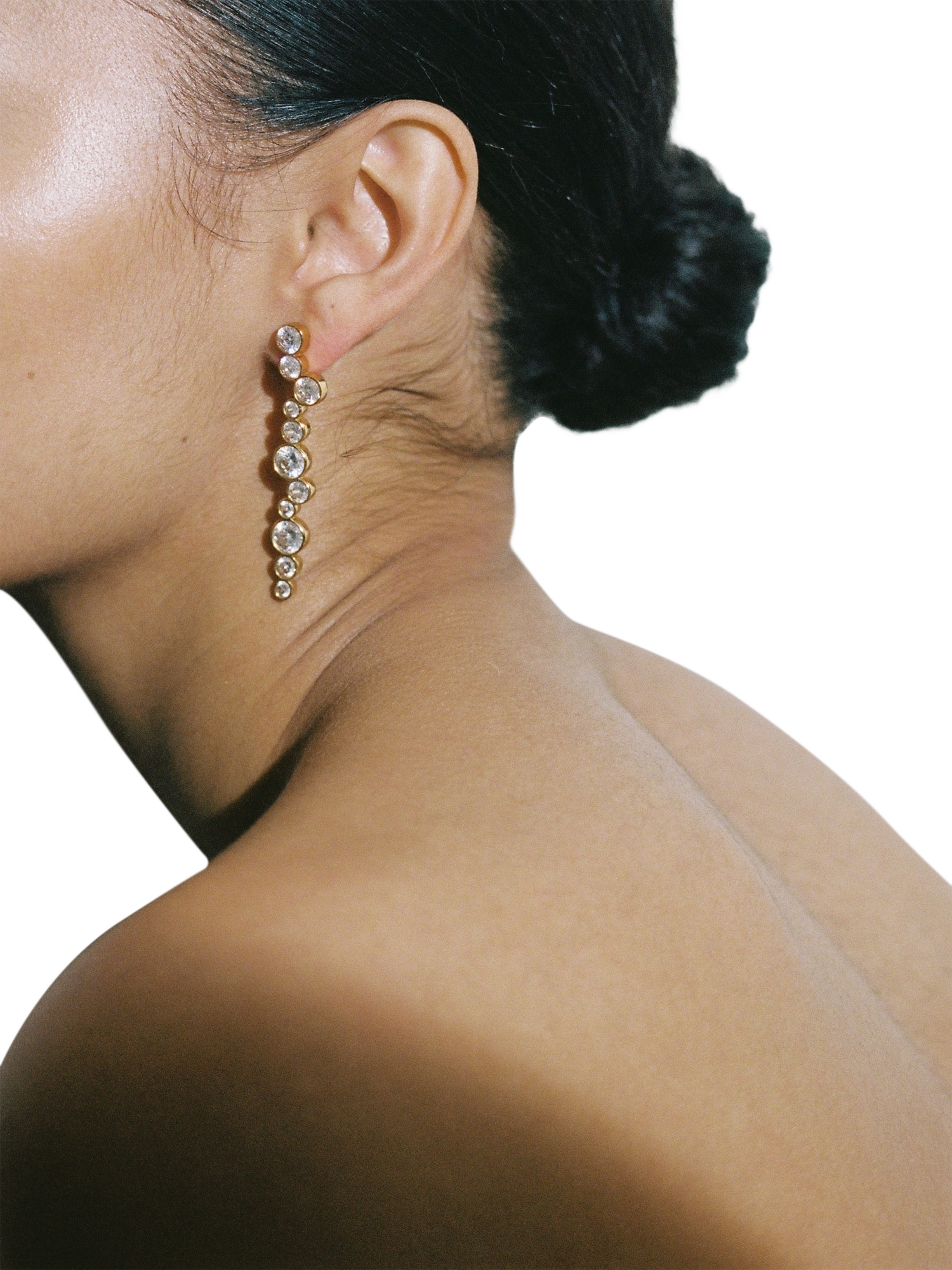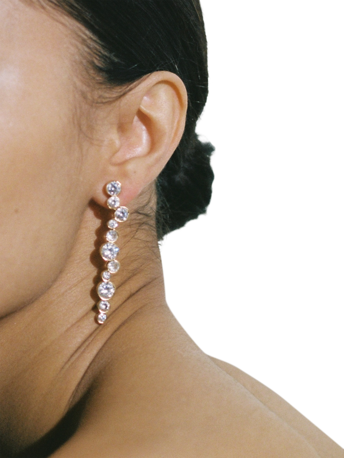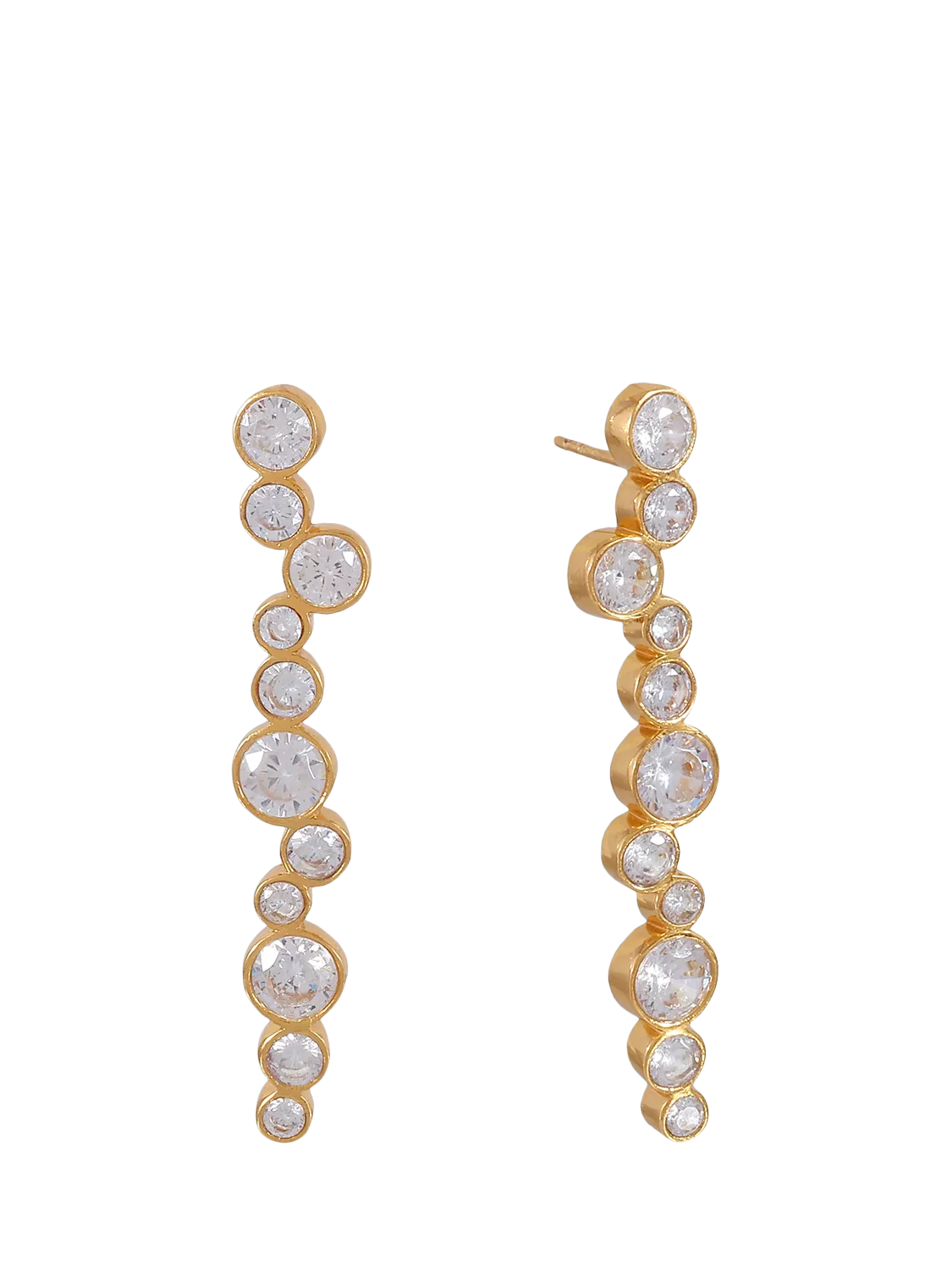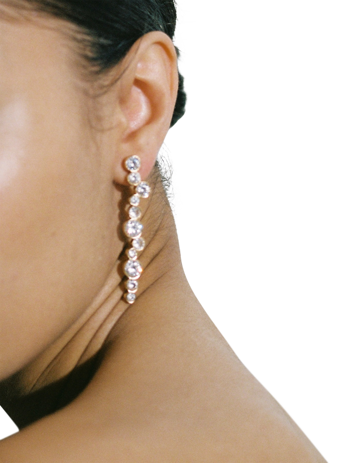 The Tier earrings are formed of circular crystals, layered to form an exquisite waterfall effect. The perfect earring that's feminine and minimal, yet makes a subtle glamorous statement. Suitable for pierced ears only.