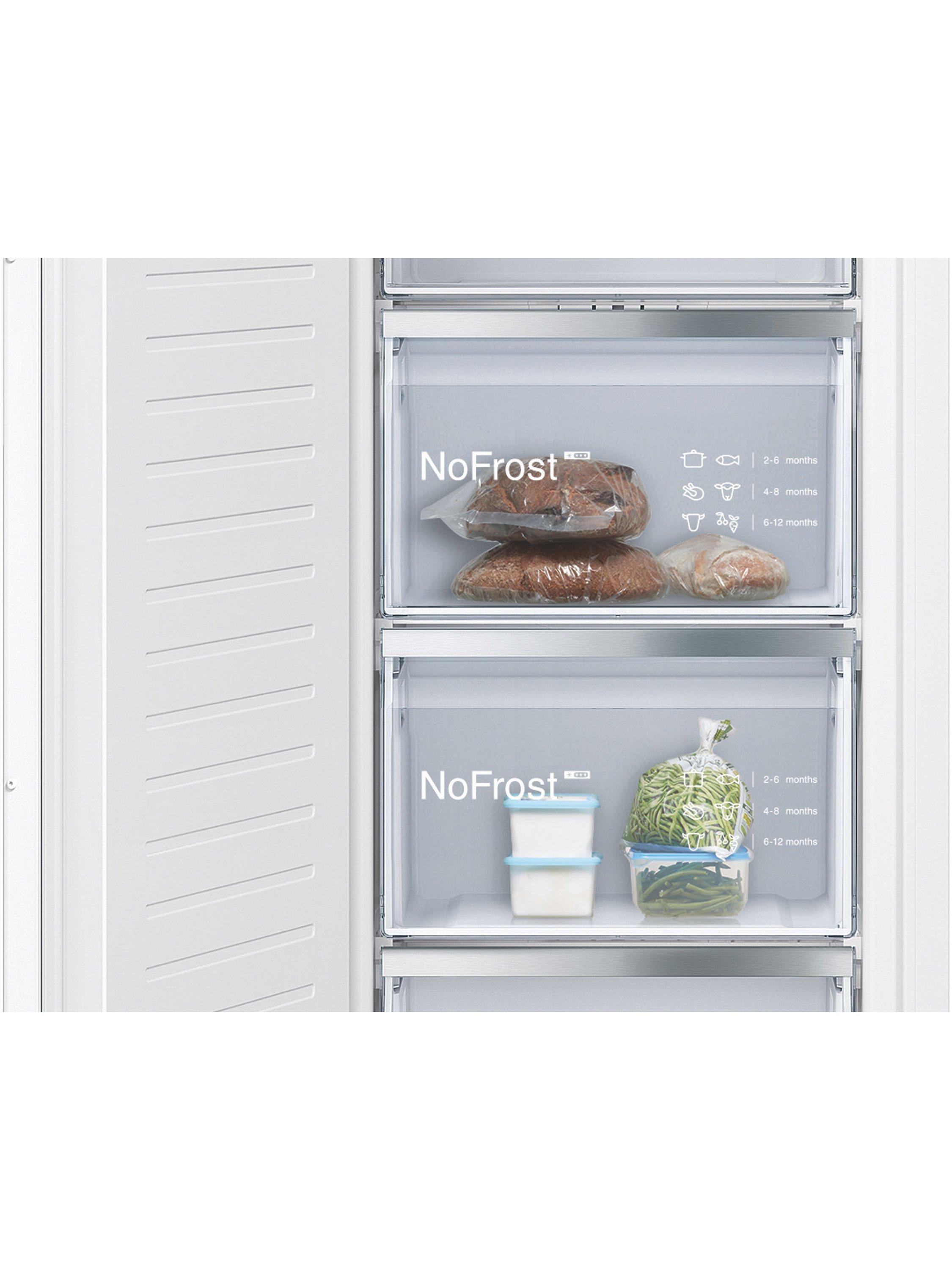 This NoFrost built-in freezer needs no defrosting and features a malfunction warning signal in case of increasing temperature.