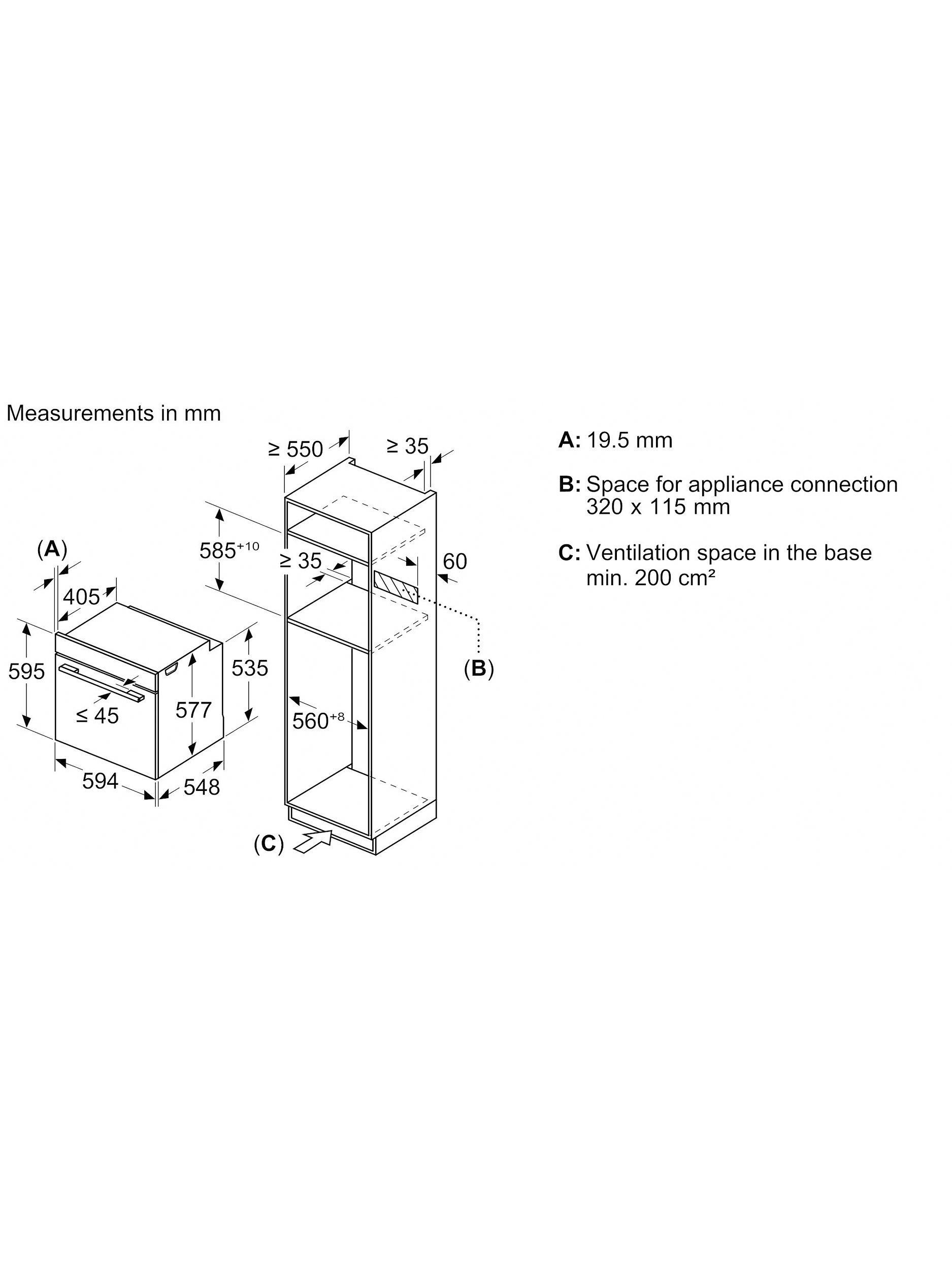 The size of the space needed for the oven to fit