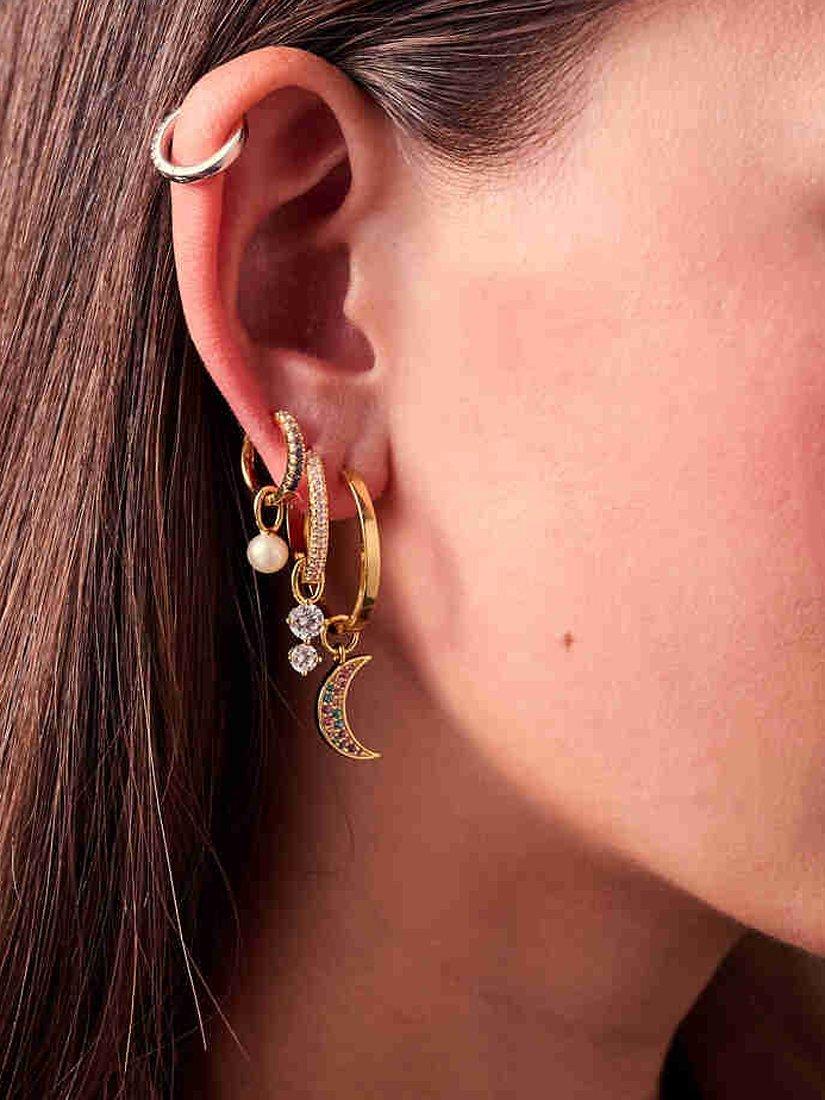 This hoop charm is made from 18-carat gold plated 925 sterling silver with a polished surface and freshwater pearl.