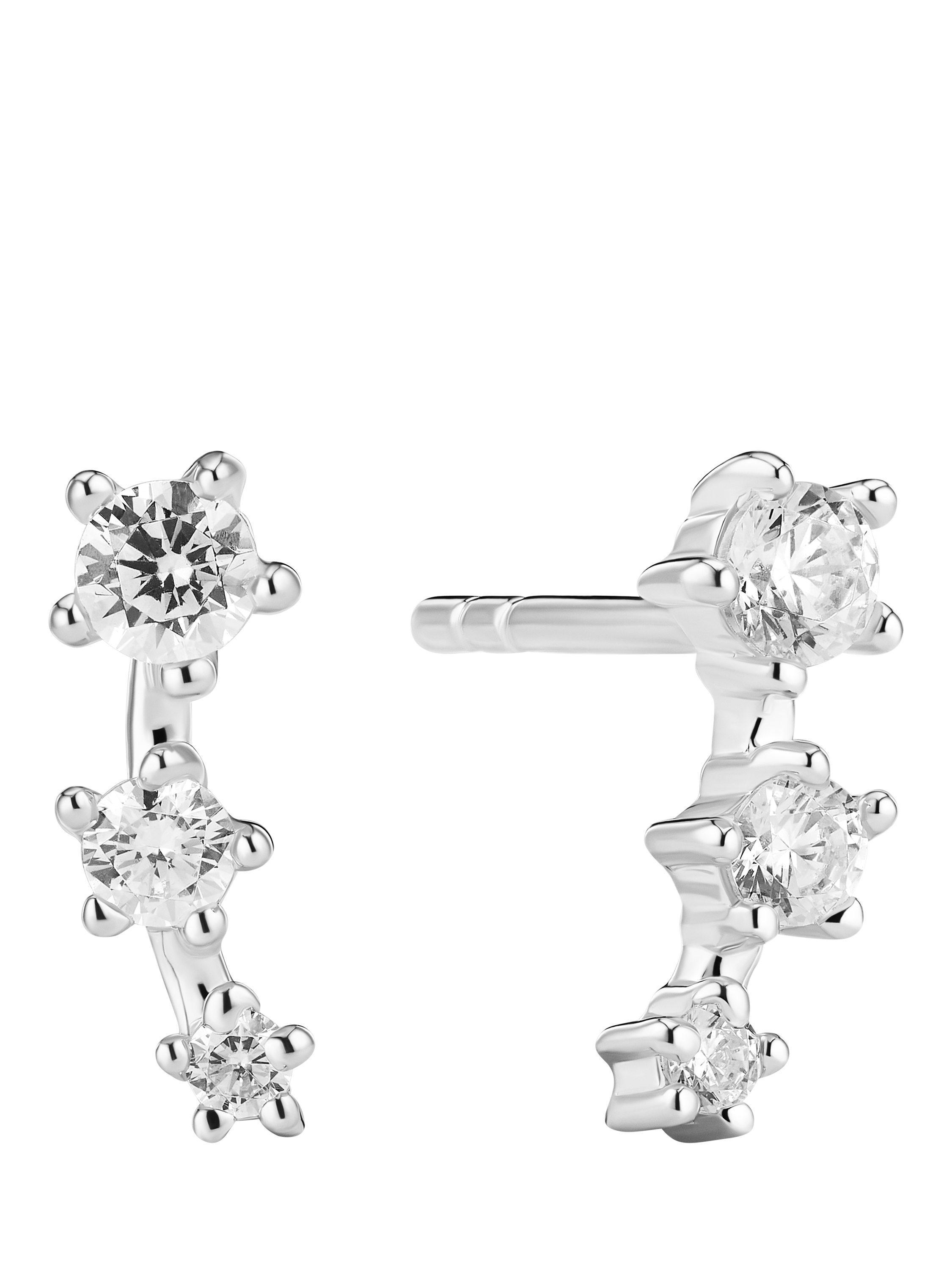 Showcasing an eye-catching climber style, the Lucente Tre earrings feature triple row of sparkling white zirconia crystals. Suitable for pierced ears only.