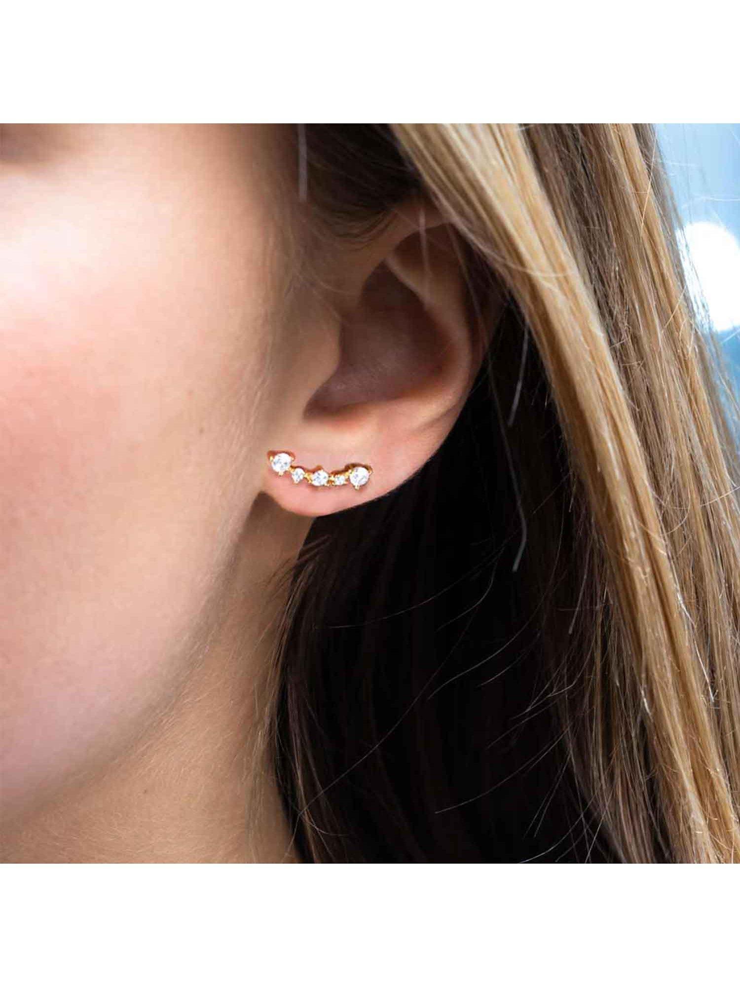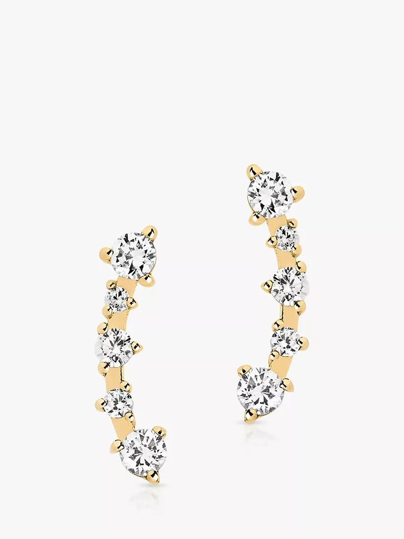 Following the natural curve of your earlobe, these pretty stud earrings are made from gold plated sterling silver and studded with sparkling cubic zirconia stones.