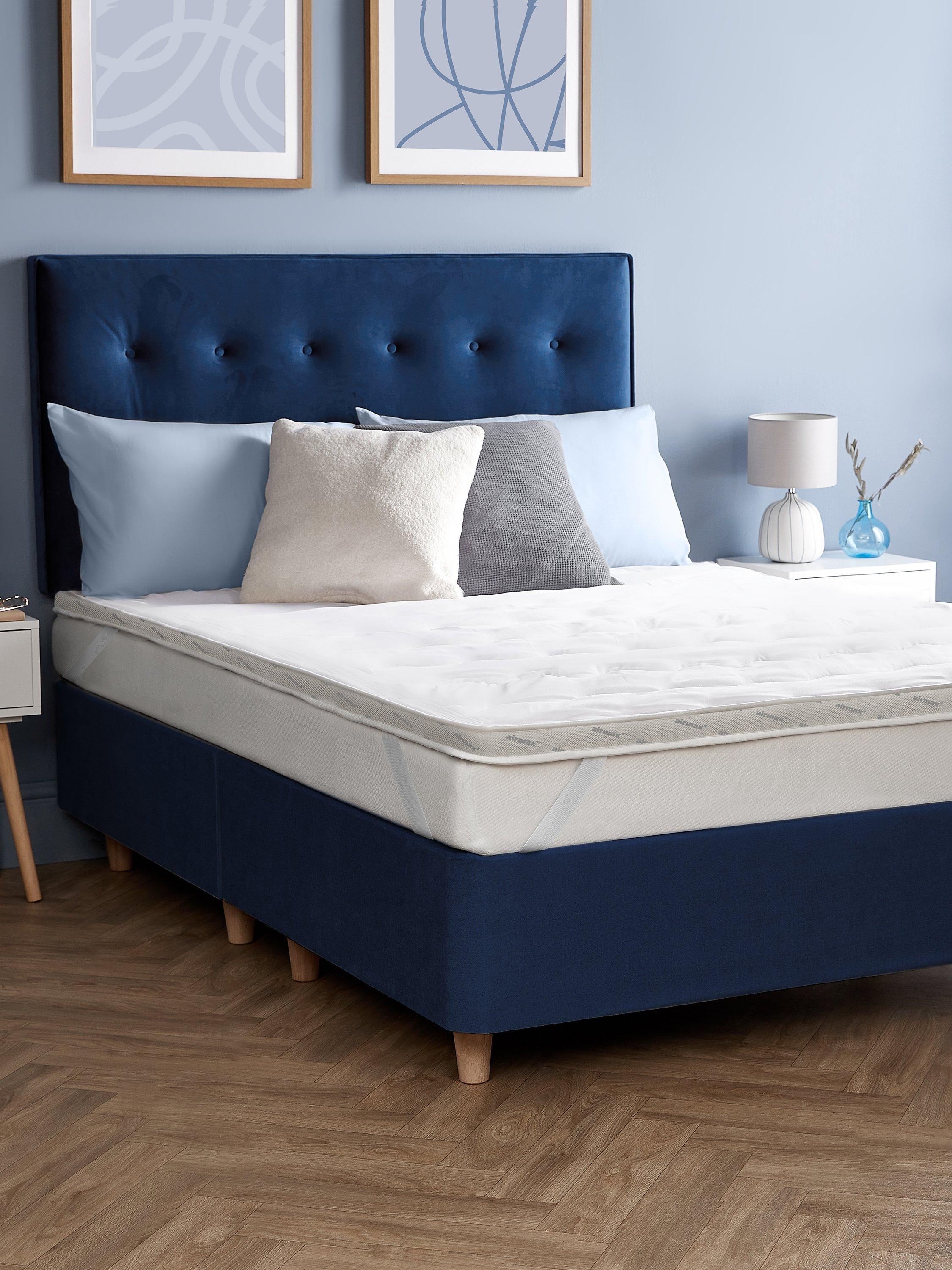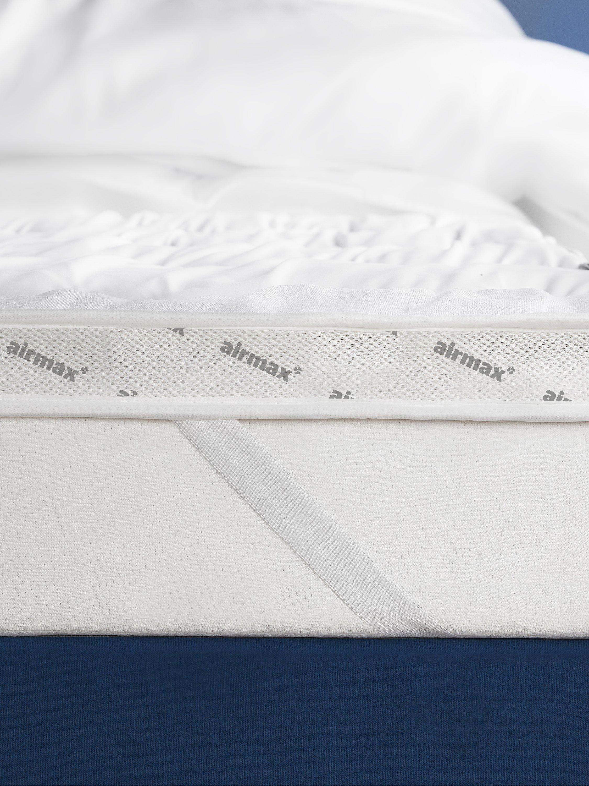 The Silentnight Airmax 500 mattress topper will transform your mattress, helping to keep you comfortable in any season. It is designed to be kind to skin as it does not include any materials likely to cause allergies. The Airmax 5cm topper features dual construction which allows air to move freely in-between the layers providing breath-ability for a comfortably refreshing night’s sleep. Elasticated straps help to keep the topper securely in place.