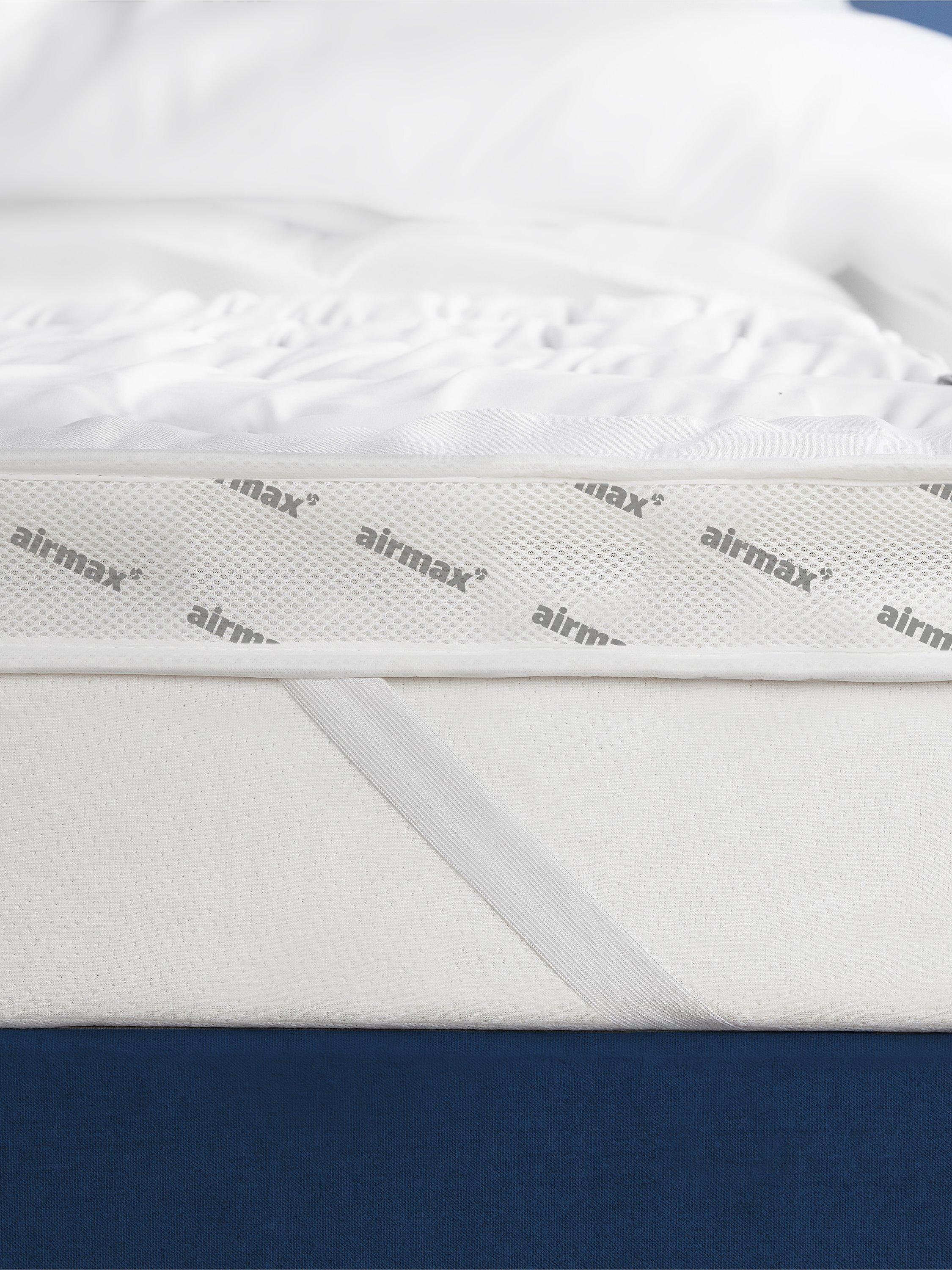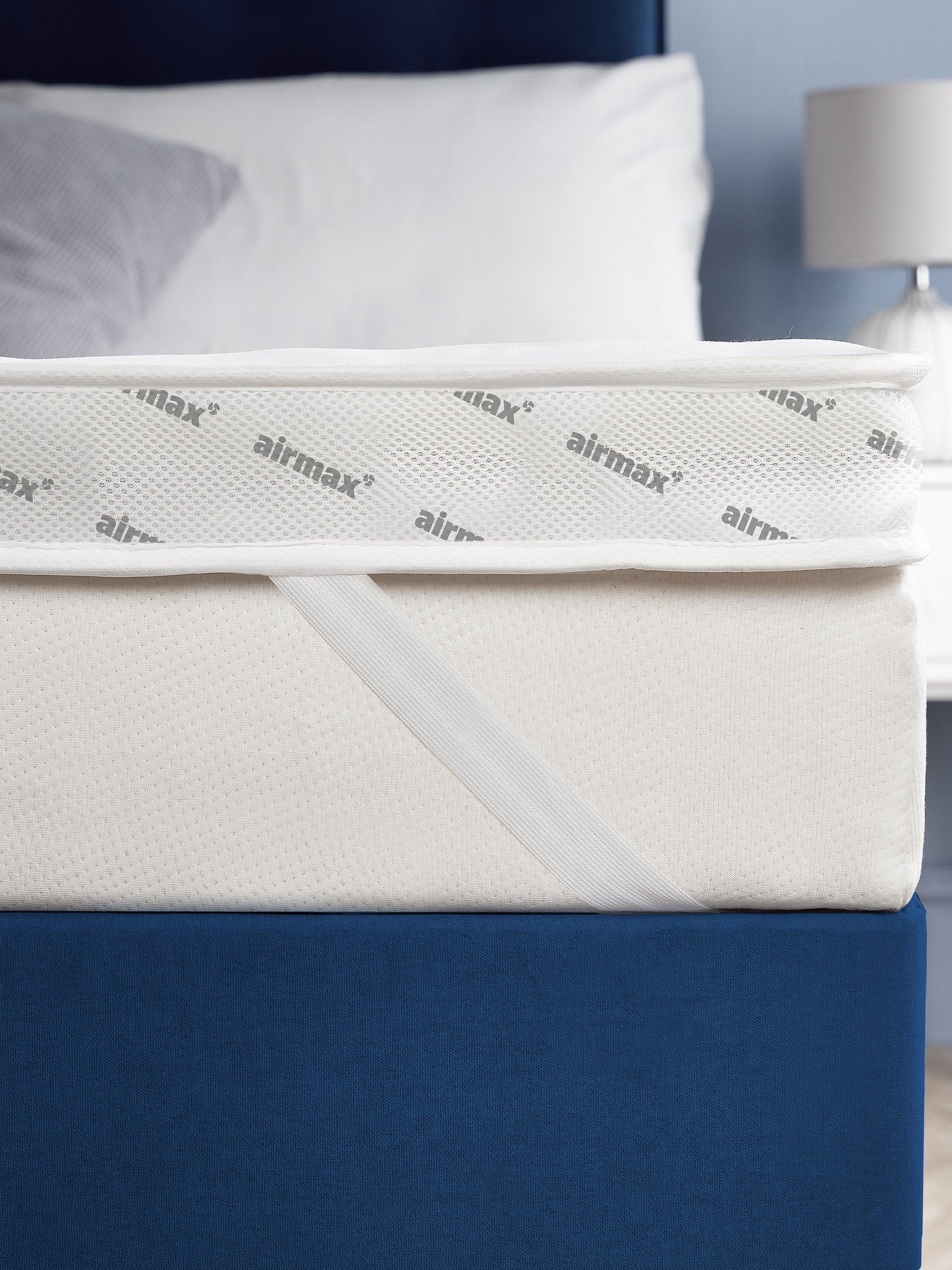 The Silentnight Airmax deeply filled, dual layered mattress topper provides ultimate comfort and will transform any mattress. It is designed to be kind to skin as it does not include any materials likely to cause allergies. The Airmax 8cm topper features dual construction which allows air to move freely in-between the layers providing breath-ability for a comfortably refreshing night’s sleep. Elasticated straps help to keep the topper securely in place, keeping you comfortable in any season