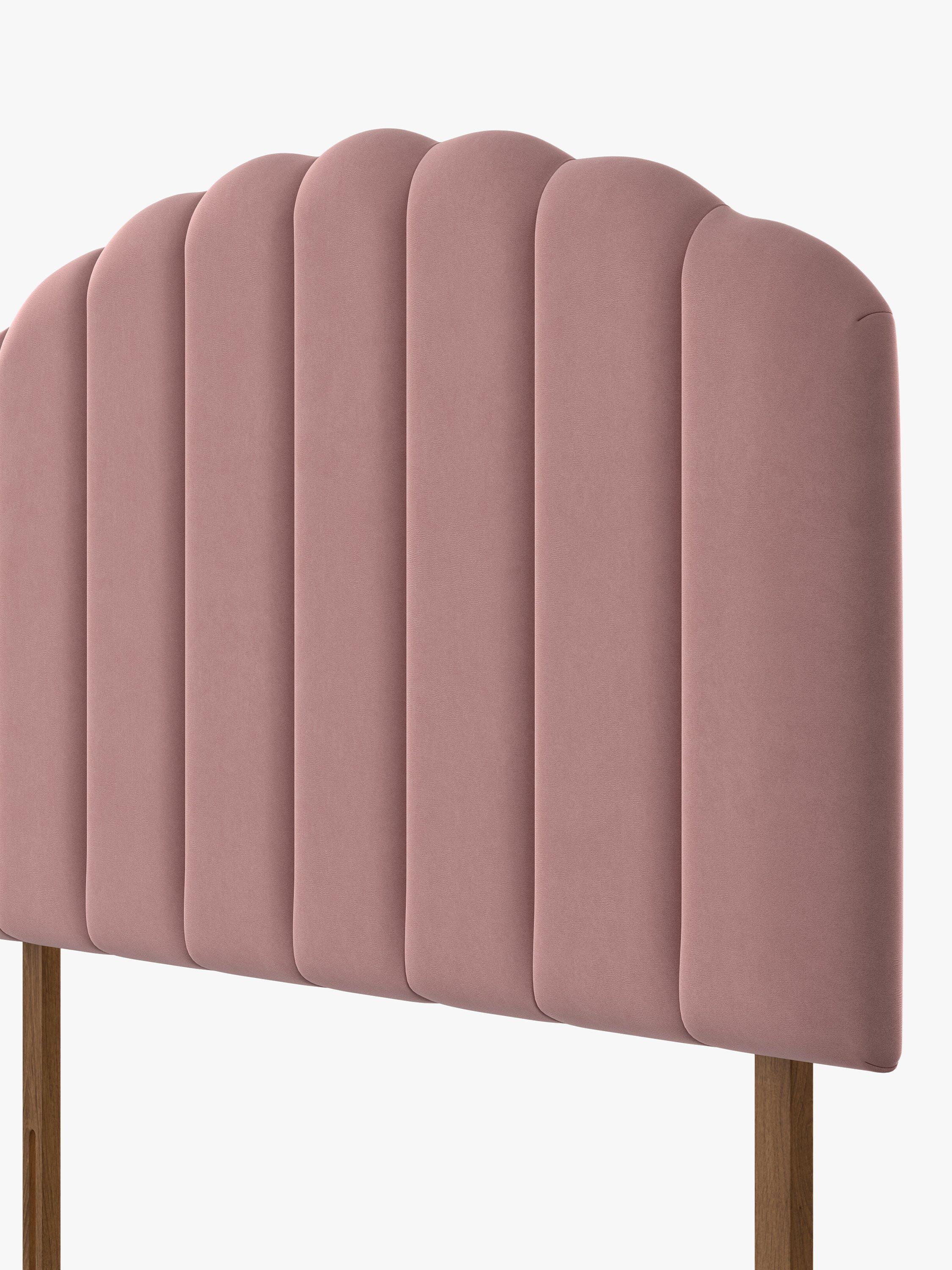 The Merlin is a luxurious seashell shape upholstered fabric headboard, decoratively detailed with deep vertical lines and a for a contemporary twist on a classic design. The padded headboard offers added comfort when sitting up in bed and is available in a number of colours to suit all manner of bedroom schemes. High quality struts allow the headboard to be fixed to any standard divan base bringing great comfort and style to your sleep space.