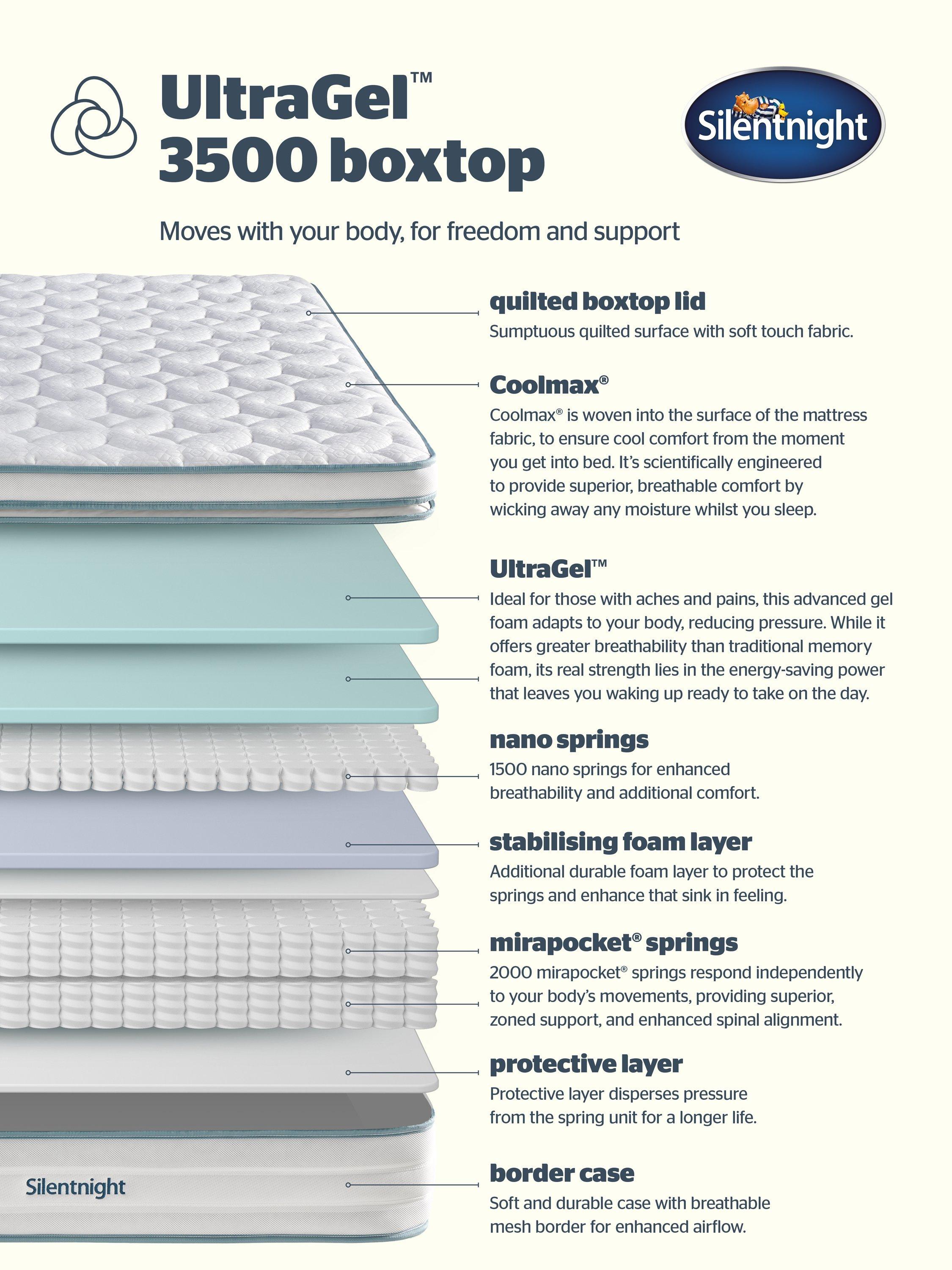 SilentnightSleep Retreat UltraGel™ 3500 Mirapocket® Spring Mattress, Medium Tension, King Size