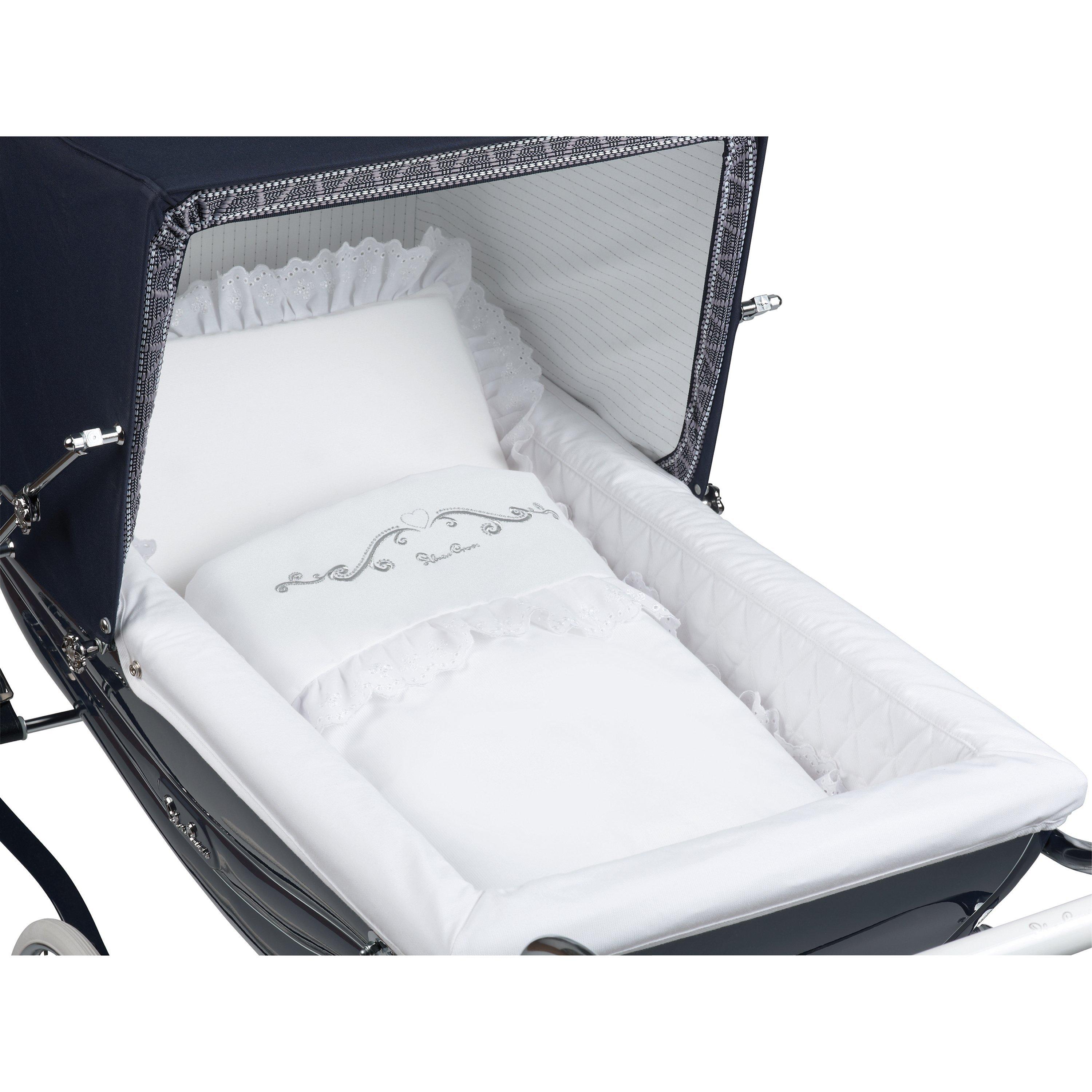 Expertly handmade in Yorkshire, the Balmoral is the ultimate classic pram with hand painted body, hand stitched fabrics, and includes a reclining hood, matching protective apron and a chrome shopping basket.