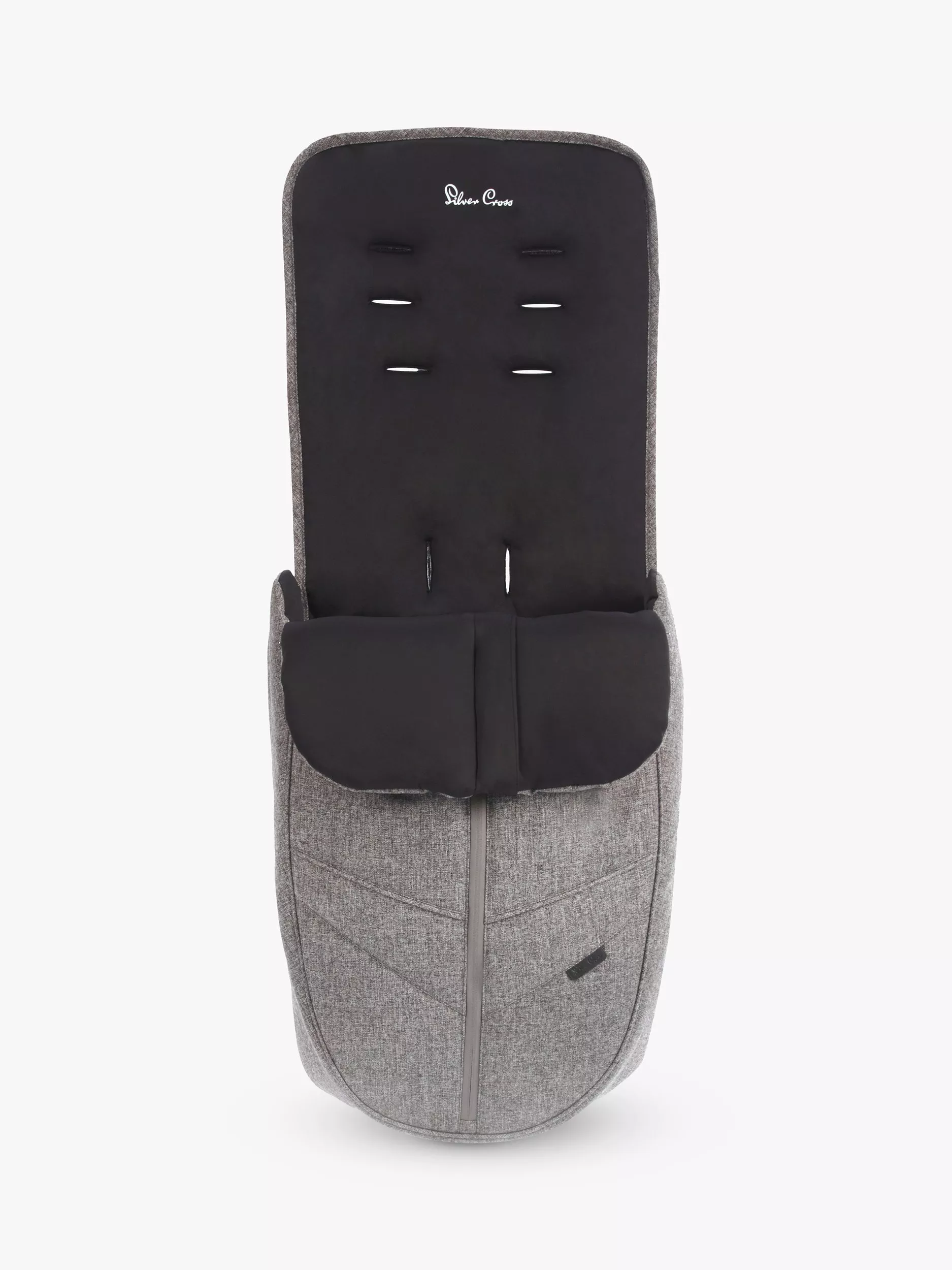 Lined with the softest jersey, this stylish seat liner and footmuff from Silver Cross is finished in premium brushed mélange fabrics to match the Silver Cross Reflex Brompton stroller, fitting easily over the pushchair seat to keep your little one warm and cosy.