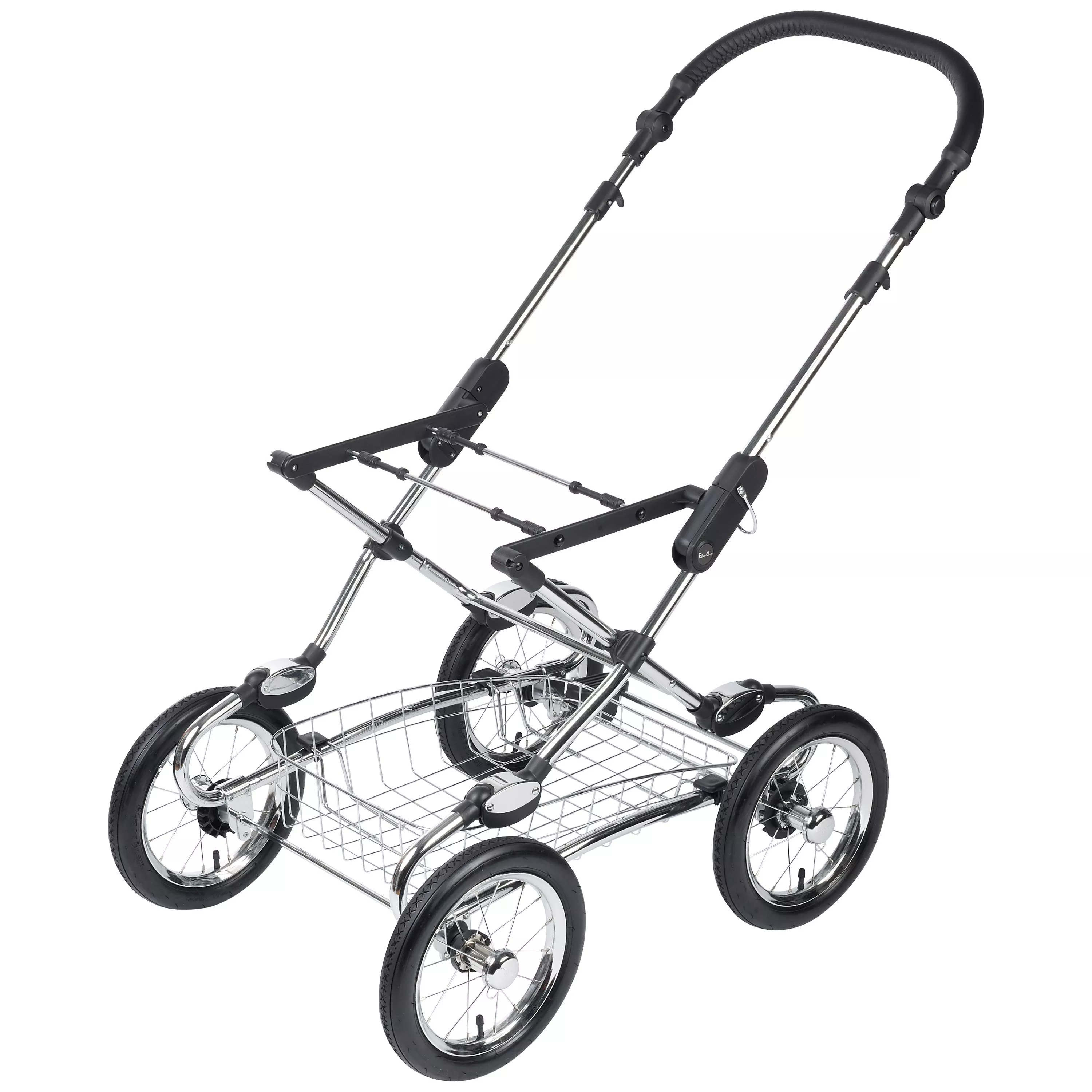 The Elegance Chrome Chassis from Silver Cross provides a soft and smooth ride for your baby. Crafted in a beautiful chrome finish with a stitched leatherette handle, it also includes a large shopping basket providing you with handy extra storage.